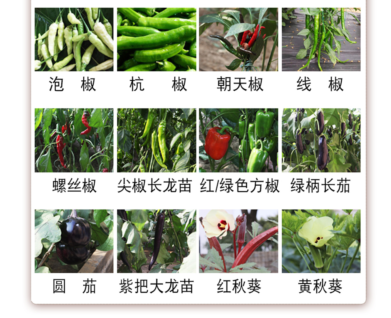 6 штампов карликовых красных томатов; 6 штампов карликовых желтых томатов; 6 тысячелетние саженцы красных томатов; 6 маленьких черных томатных растений; 6 саженцев томатов водопад; 6 крупных розовых томатов.; 6 растений клубничного томата; 6 растений перца; 6 розеток зеленого перца; 6 растений перца; 6 розеток зеленого перца; 6 саженцев хаотского перца; 6 длинных растений баклажана; 6 круглых саженцев баклажана; 6 ростков сельдерея; 6 саженцев цветной капусты; 12 редколуковых красных томатов; 12 штампов карликовых желтых томатов; 12 черных томатных саженцев тысячелетия; 12 маленьких черных томатных растений; 12 саженцев томатов водопад; 12 крупных розовых томатных растений; 12 саженцев клубничных томатов; 12 рассады перца; 12 розеток зеленого перца; 12 рассады перца; 12 саженцев зеленого перца; 12 саженцев хаотского перца; 12 длинных растений баклажана; 12 круглых саженцев баклажана; 12 ростков сельдерея; 12 саженцев цветной капусты; 18 редколуковых красных томатов; 18 штамповок карликовых желтых томатов; 18 саженцев красных томатов тысячелетия; 18 маленьких черных томатных растений; 18 саженцев томатов водопад; 18 крупных розовых рассадных томатов; 18 саженцев клубничного томата; 18 растений перца; 18 растений зеленого перца; 18 растений перца; 18 растений зеленого перца; 18 саженцев хаотского перца; 18 длинных рассадных растений баклажана; 18 круглых саженцев баклажана; 18 ростков сельдерея; 18 саженцев цветной капусты
