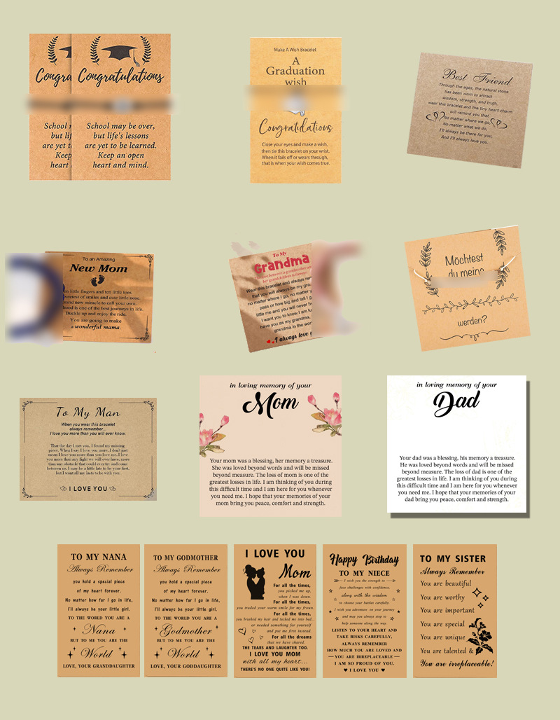 Трансграничные рукоятки ожерелье благословение карты алфавит браслет украшения украшения подарок картон ювелирные изделия прокладок оптовая печать