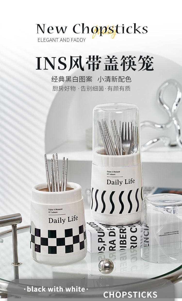 Держатель для палочек для еды для домашнего использования, креативная клетка для слива палочек для еды в стиле ins, стеллаж для хранения кухонной утвари с крышкой, корзина для хранения палочек для еды, держатель для палочек для еды.