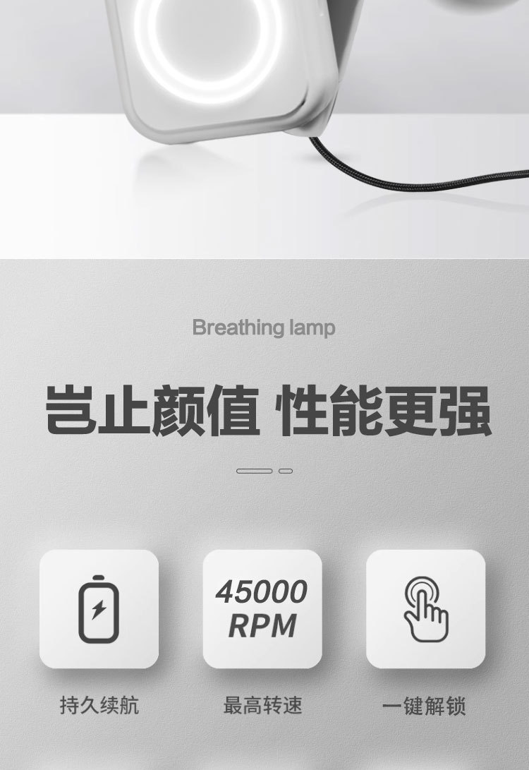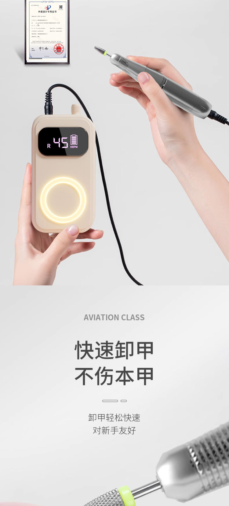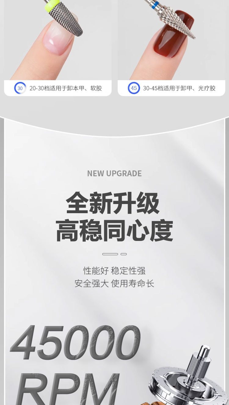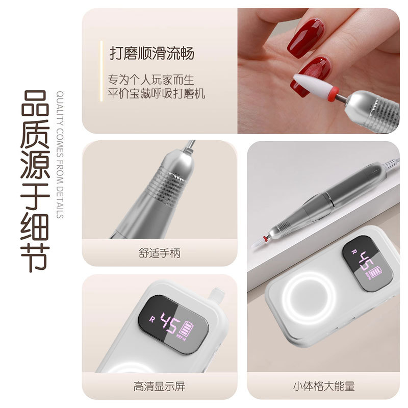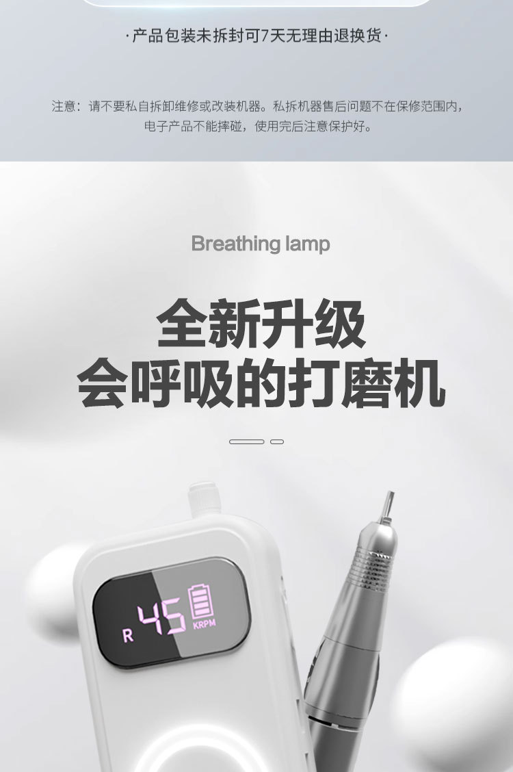 Профессиональная дыхательная лампа для полировки ногтей, бесшумная амортизация, 45000 об/мин, обязательный эргономичный Type-C для маникюра