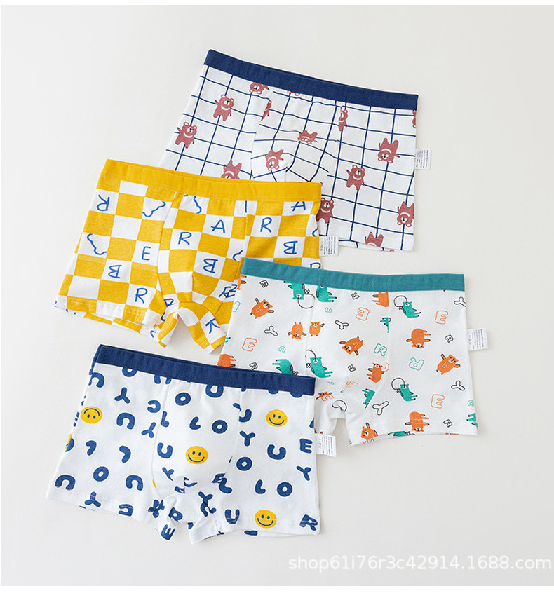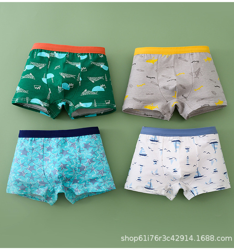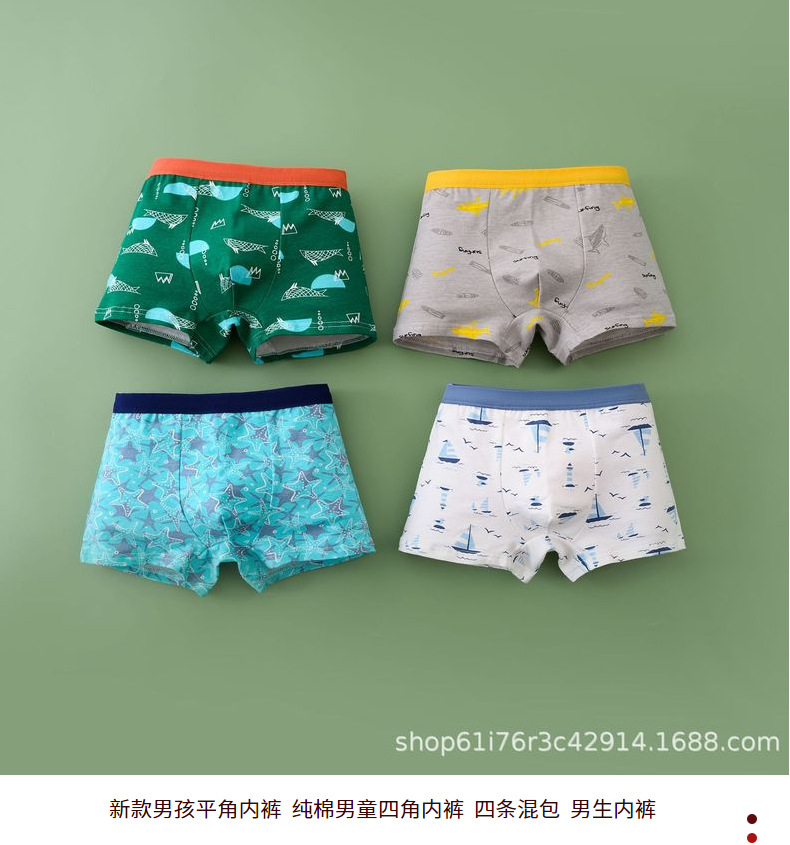 Оптовая продажа трусики хлопчатобумажный мальчик мультяшный принт антибактериальный хлопок четыре угла детские трусики для мальчиков начальной и средней школы трусики