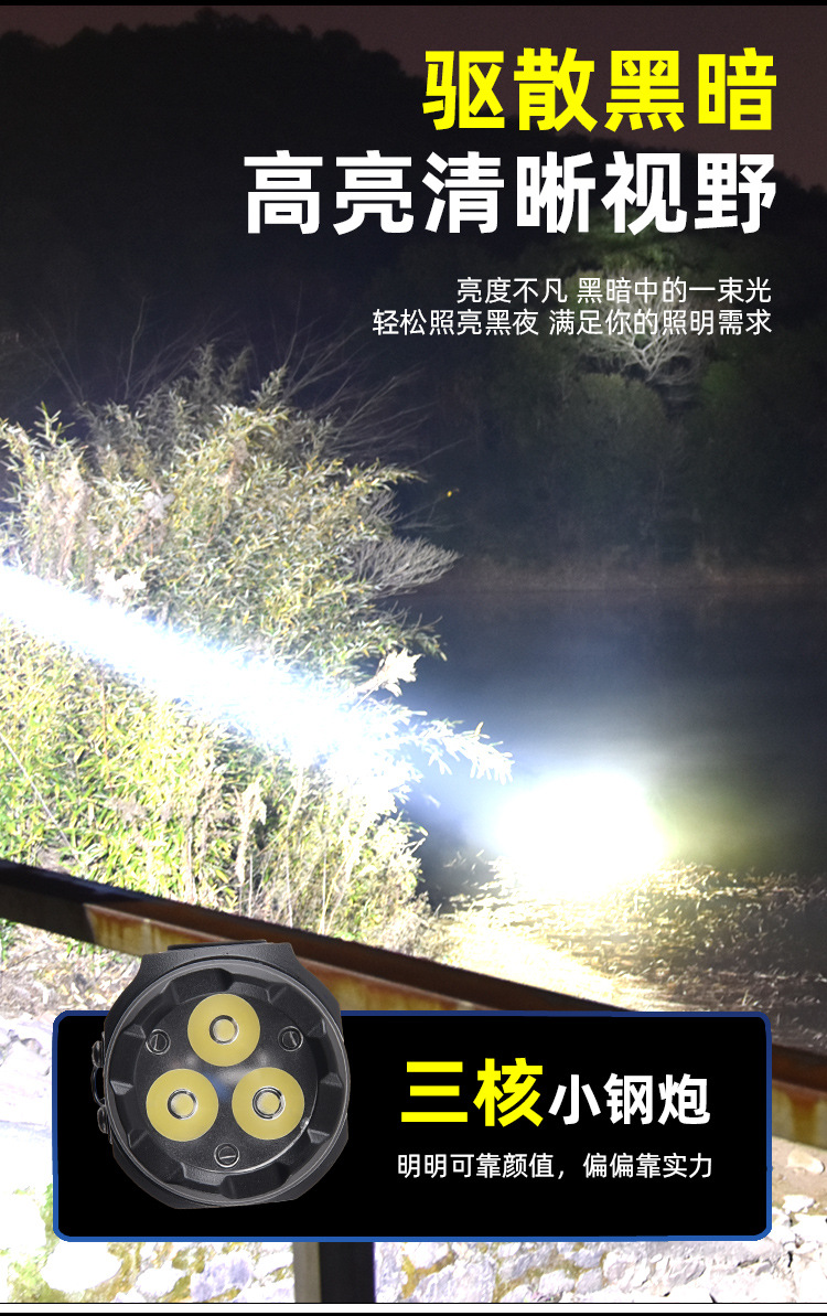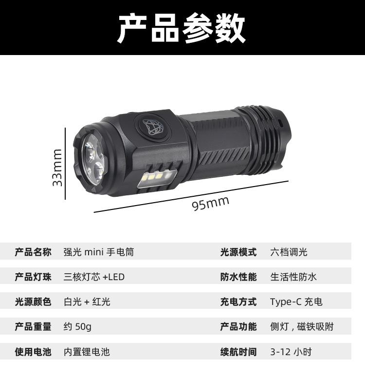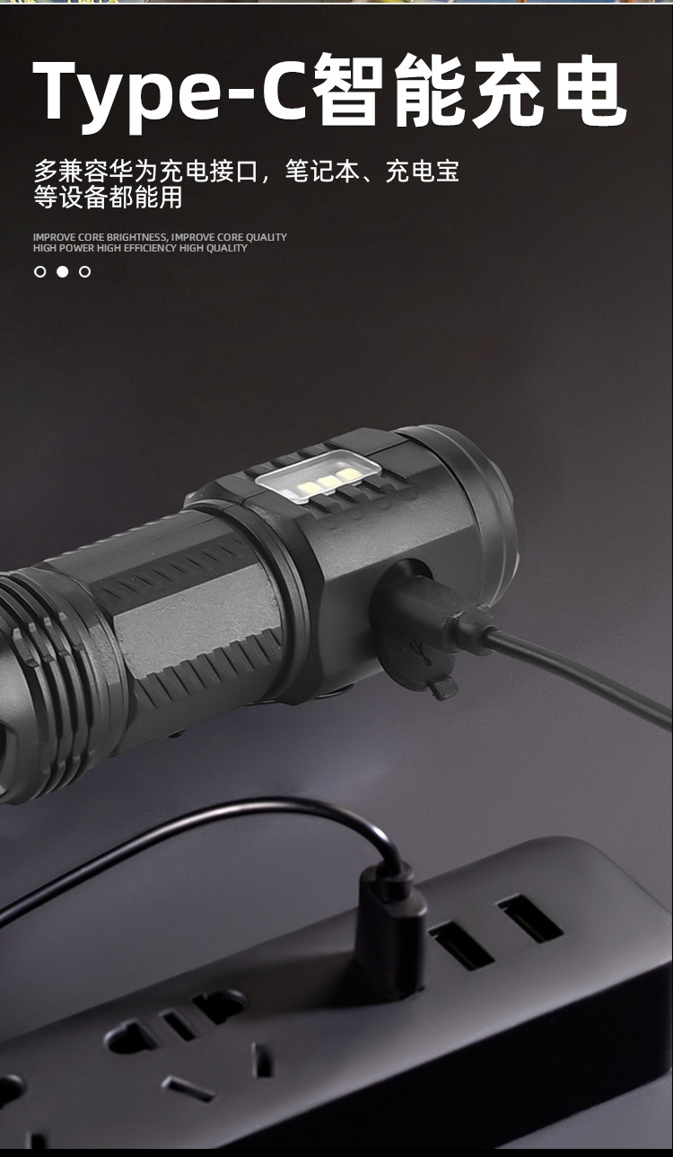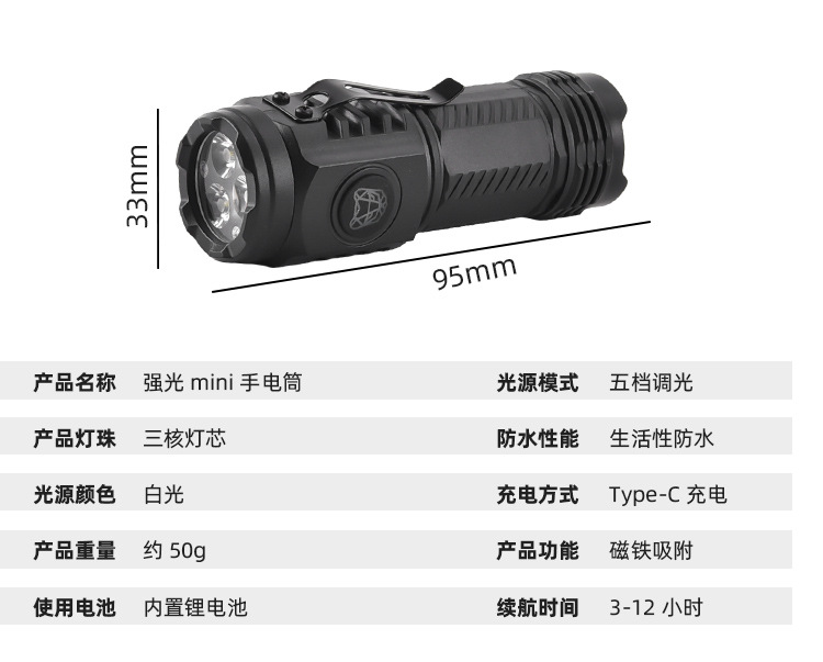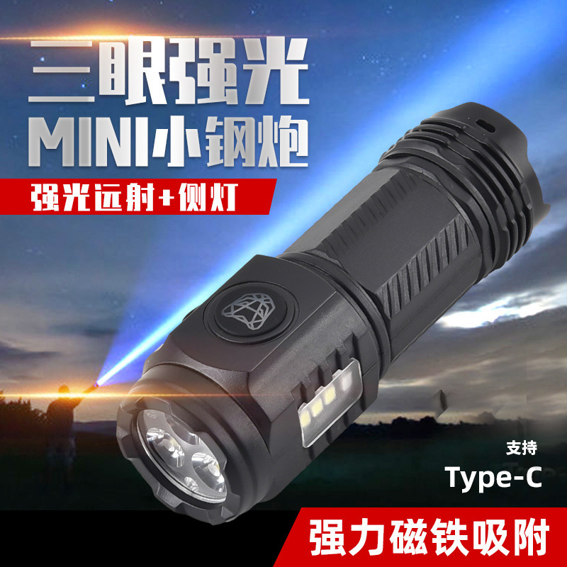 Трансграничный новый трехглазый маленький стальной пистолет мини-открытый светодиодный подсветка супер сильный держатель для ручек магнит для TYPE-C зарядки фонарики