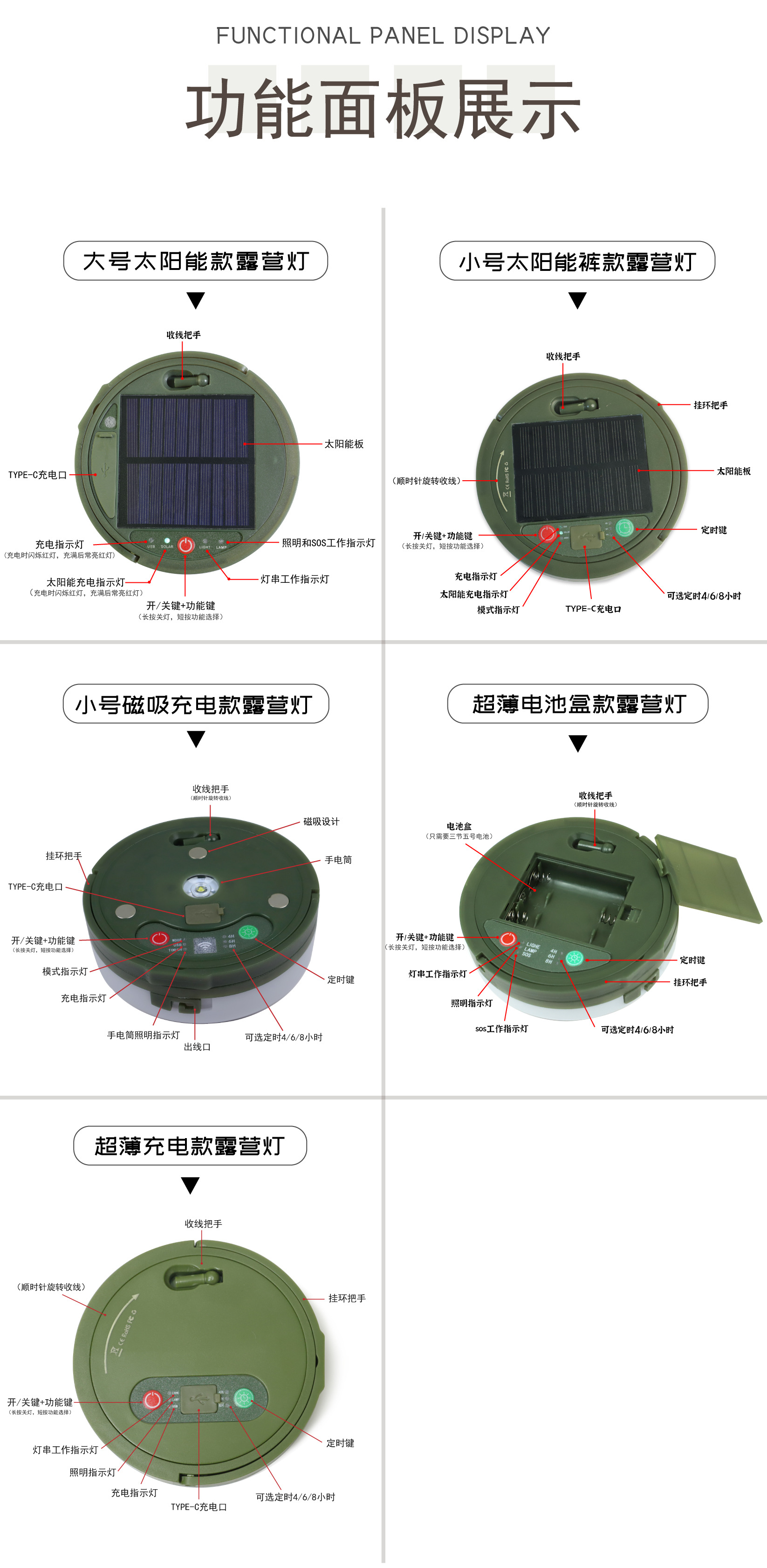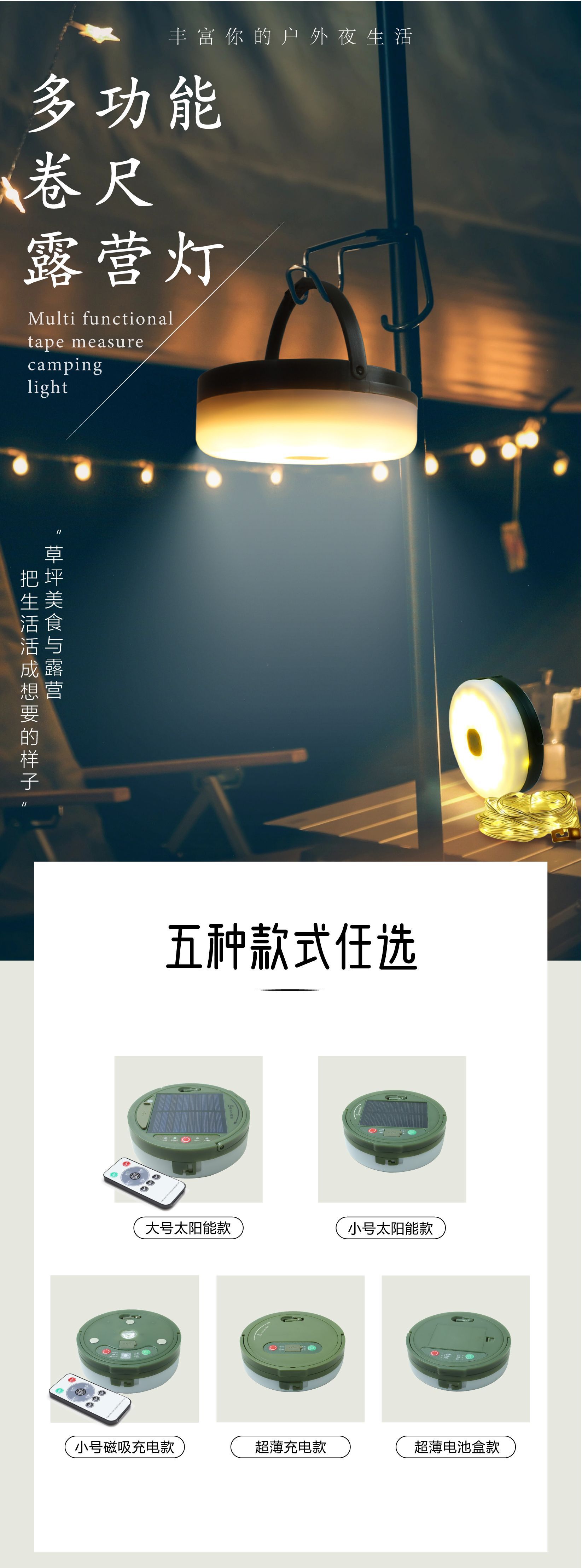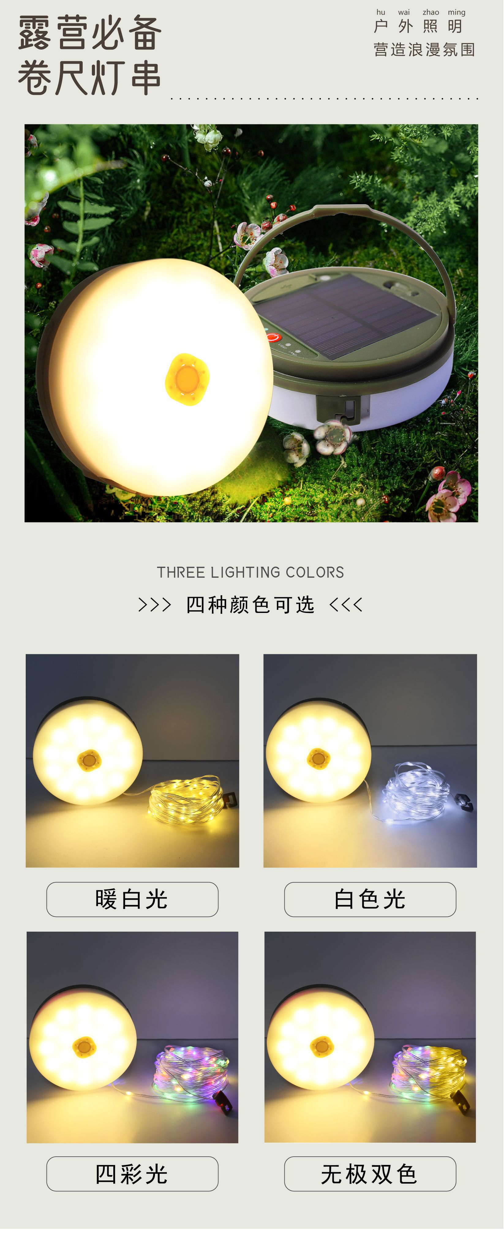 Солнечный фонарь Wanchang для кемпинга, уличный, аварийный, для освещения палатки, с функцией измерения длины, для хранения, световая гирлянда для кемпинга