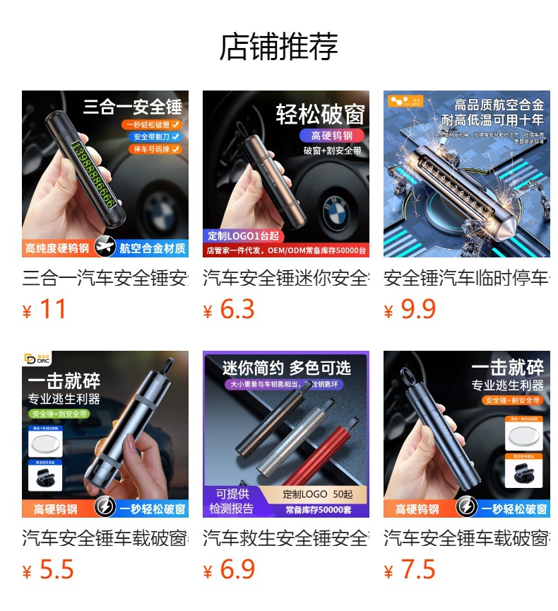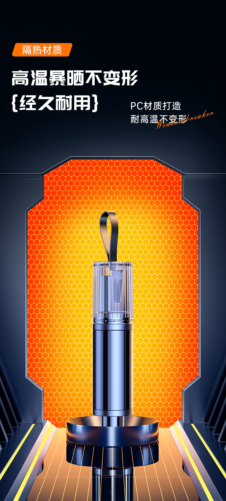 安全锤材质:外壳ABS+工程熟料,锤头钢针为钨钢材质。