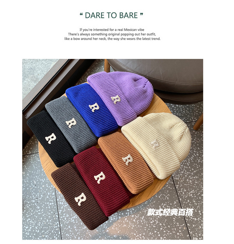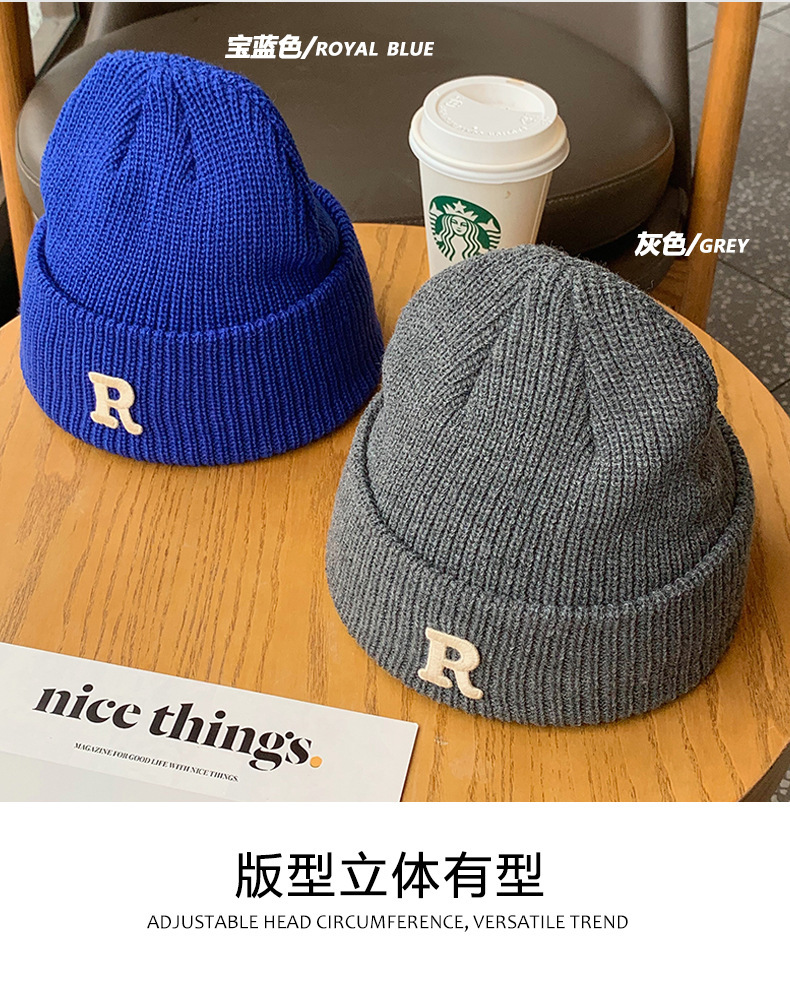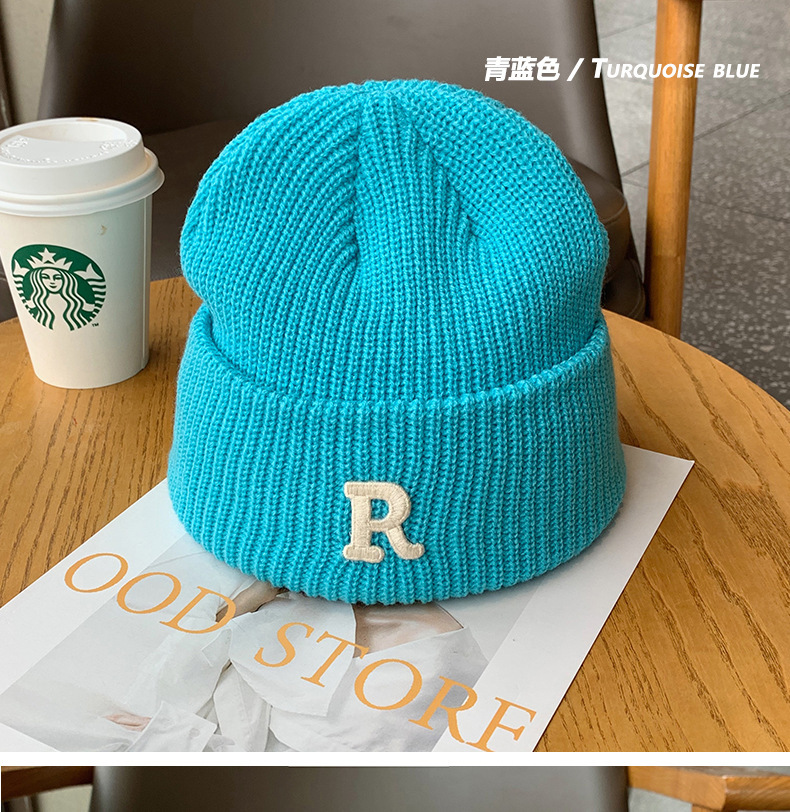 Осенняя и зимняя корейская буква R стандартная шерстяная шапка для мужчин и женщин