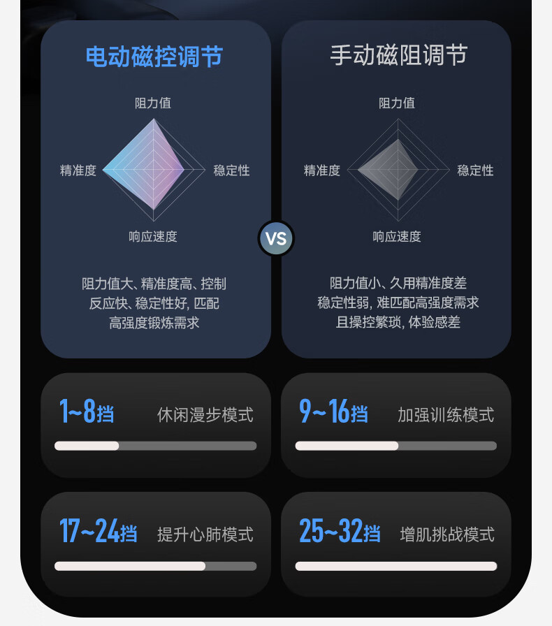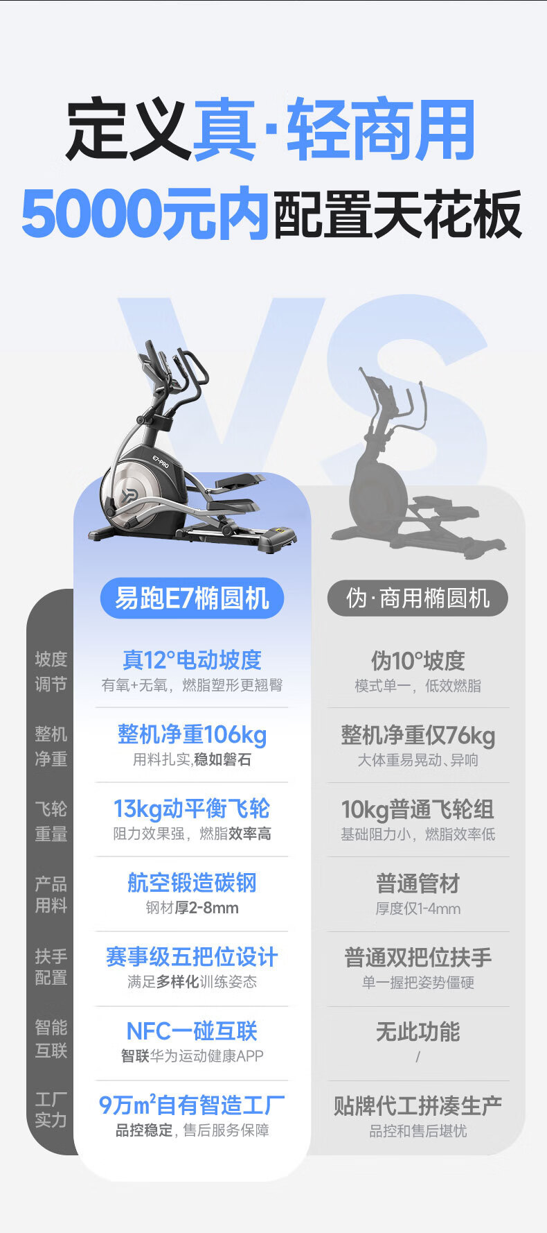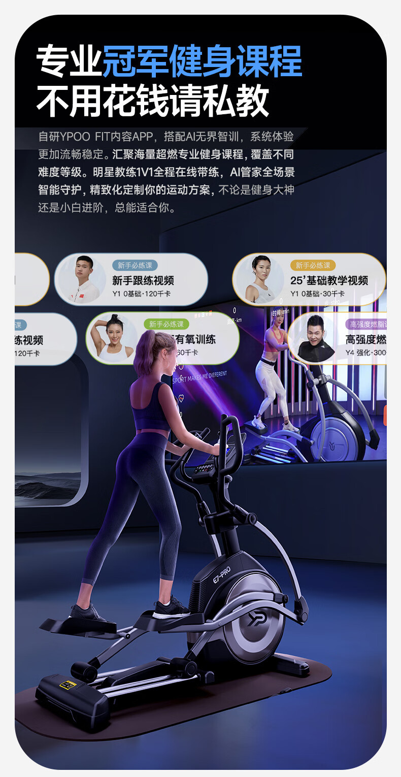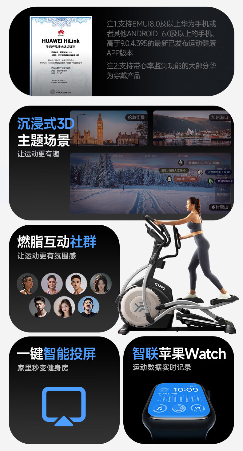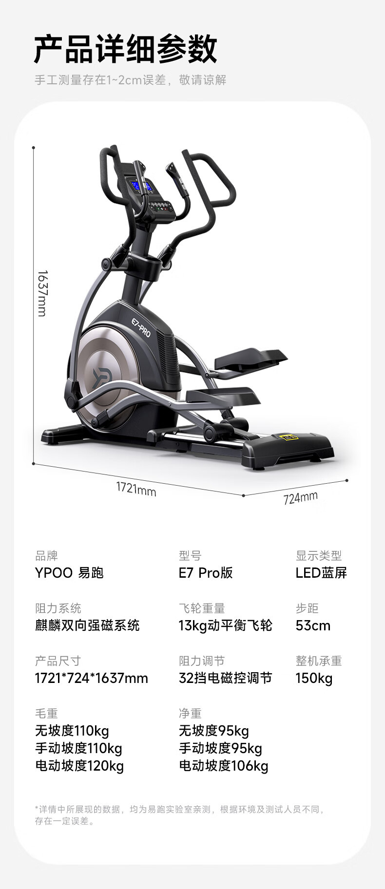 Модель с ручным наклоном — 3 уровня наклона, коммерческая большая длина шага; Классическая модель — инерционный маховик 15 кг, 32-скоростной магнитный контроль; Электрическая модель с наклоном — 24 уровня наклона, коммерческая, с увеличенной длиной шага