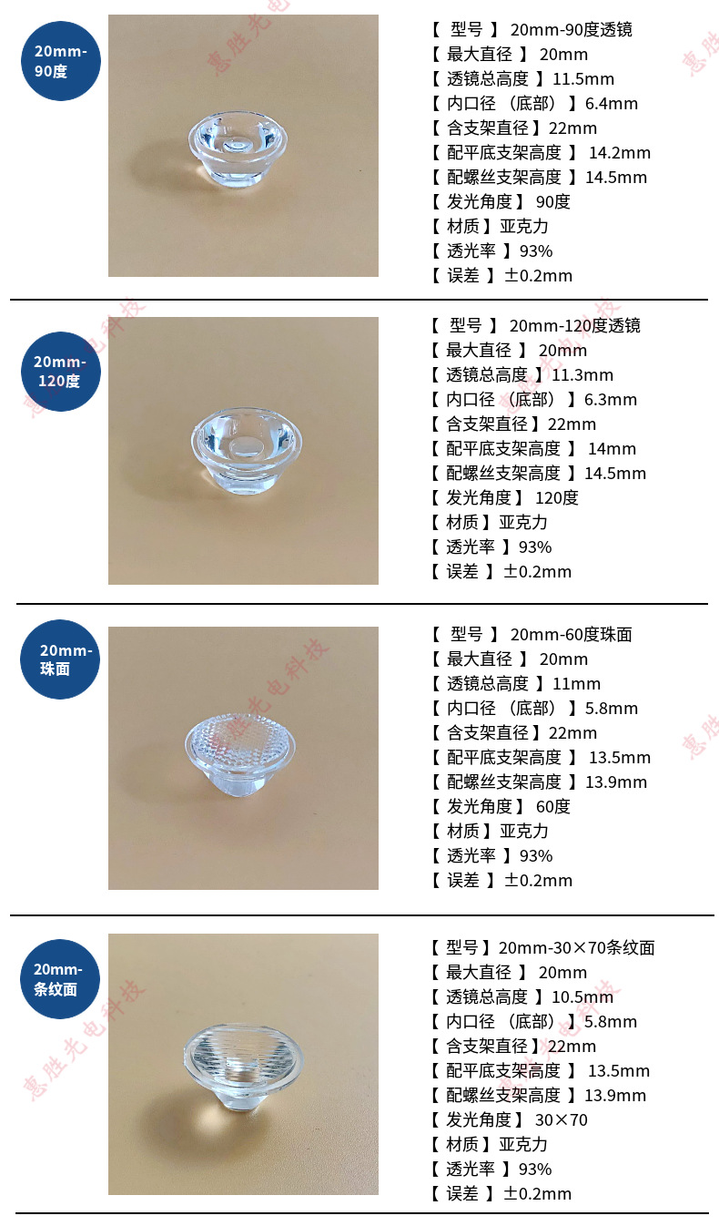 Объектив 20–5 градусов; Объектив 20 мм-8 градусов; Объектив 20–15 градусов; Объектив 20 мм-20 градусов; Объектив 20–25 градусов; Объектив 20–30 градусов; Объектив 20–45 градусов; Вогнутая матовая линза 20–45 градусов.; Объектив 20–60 градусов; Объектив 20–90 градусов; Объектив 20–120 градусов; 20 мм-бесерная линза; Линза в полоску 20 мм.; Белый плоский нижний кронштейн; Черный плоский нижний кронштейн; Белый винтовой кронштейн; черный винтовой кронштейн