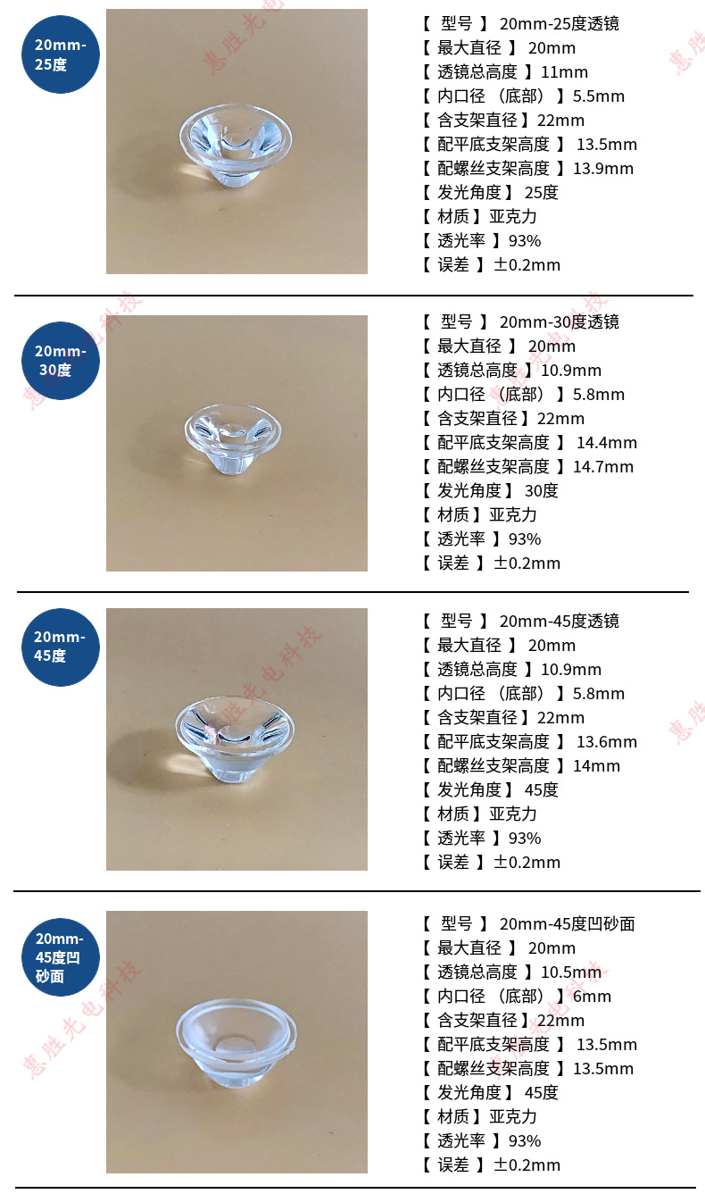 20 мм1W3W акриловая светодиодная линза 5 градусов-120 градусов имитация люменов с одной предметой линзы прожектор потолочный светильник настенная шайба