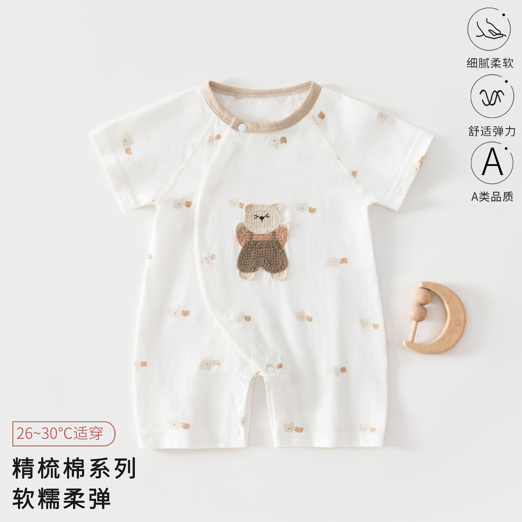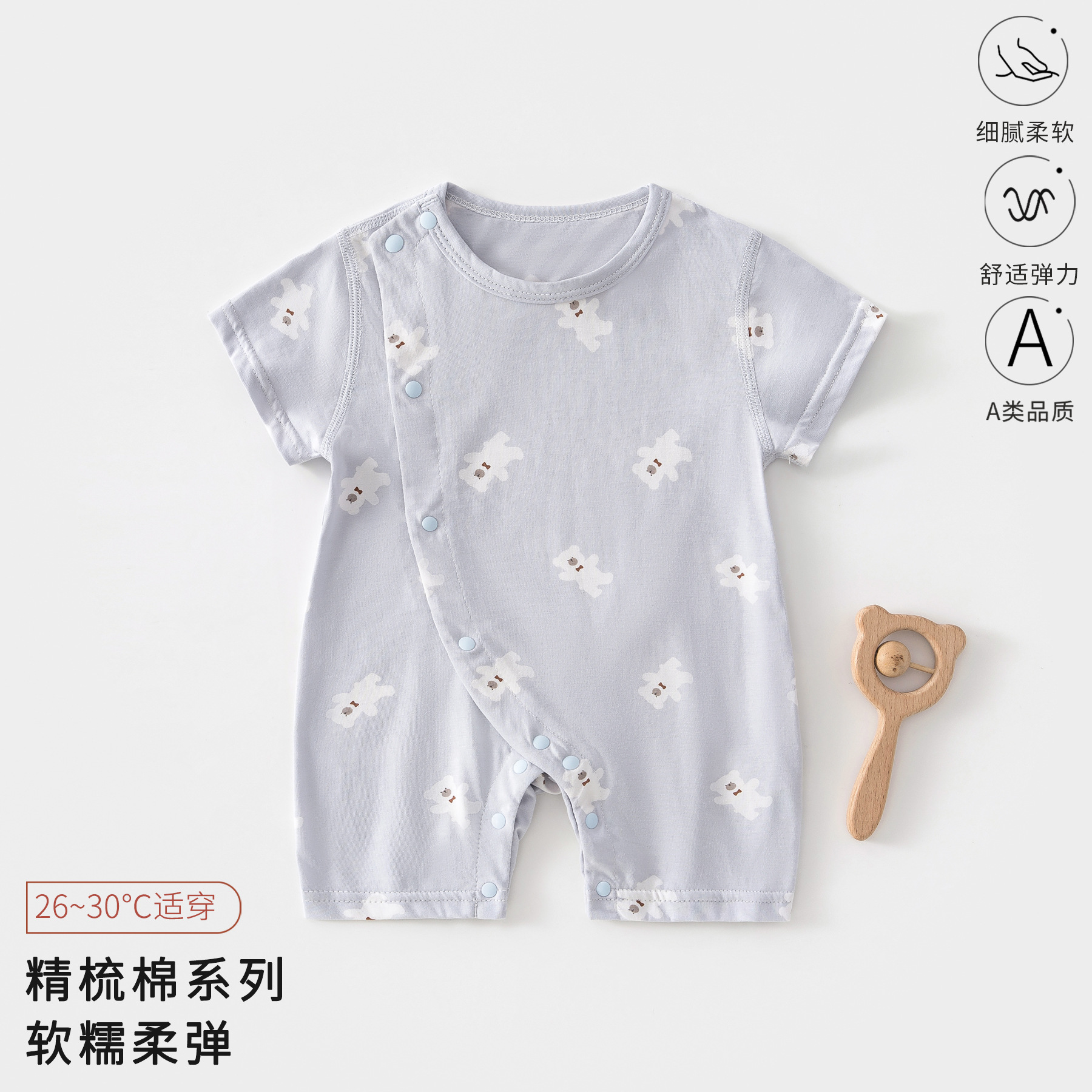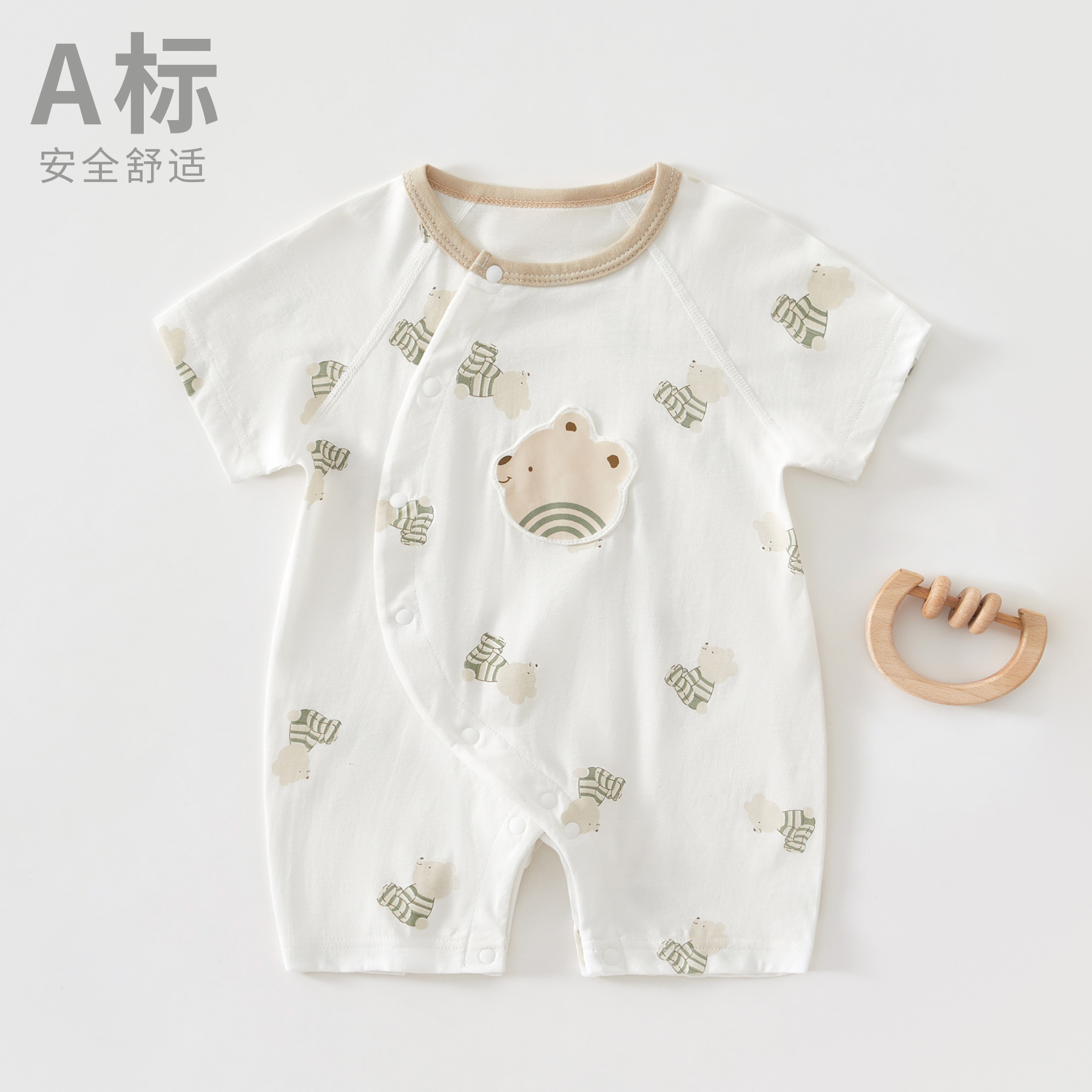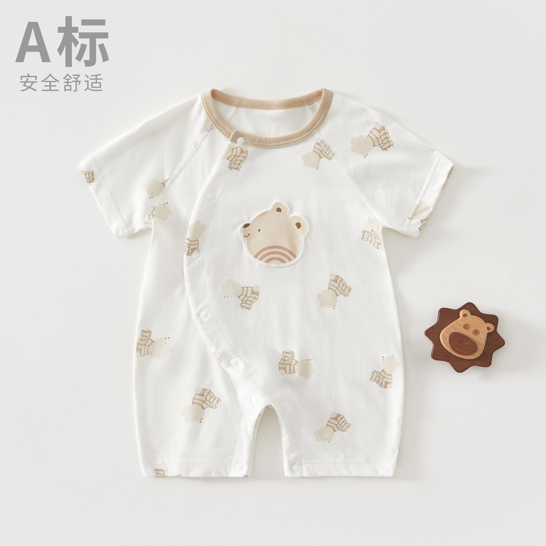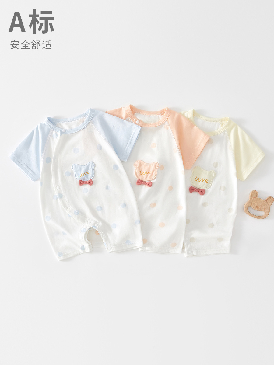 Детский летний комбинезон из тонкого чистого хлопка с короткими рукавами, одежда для новорожденных (мальчиков и девочек), категория: короткий рукав, ползунки.