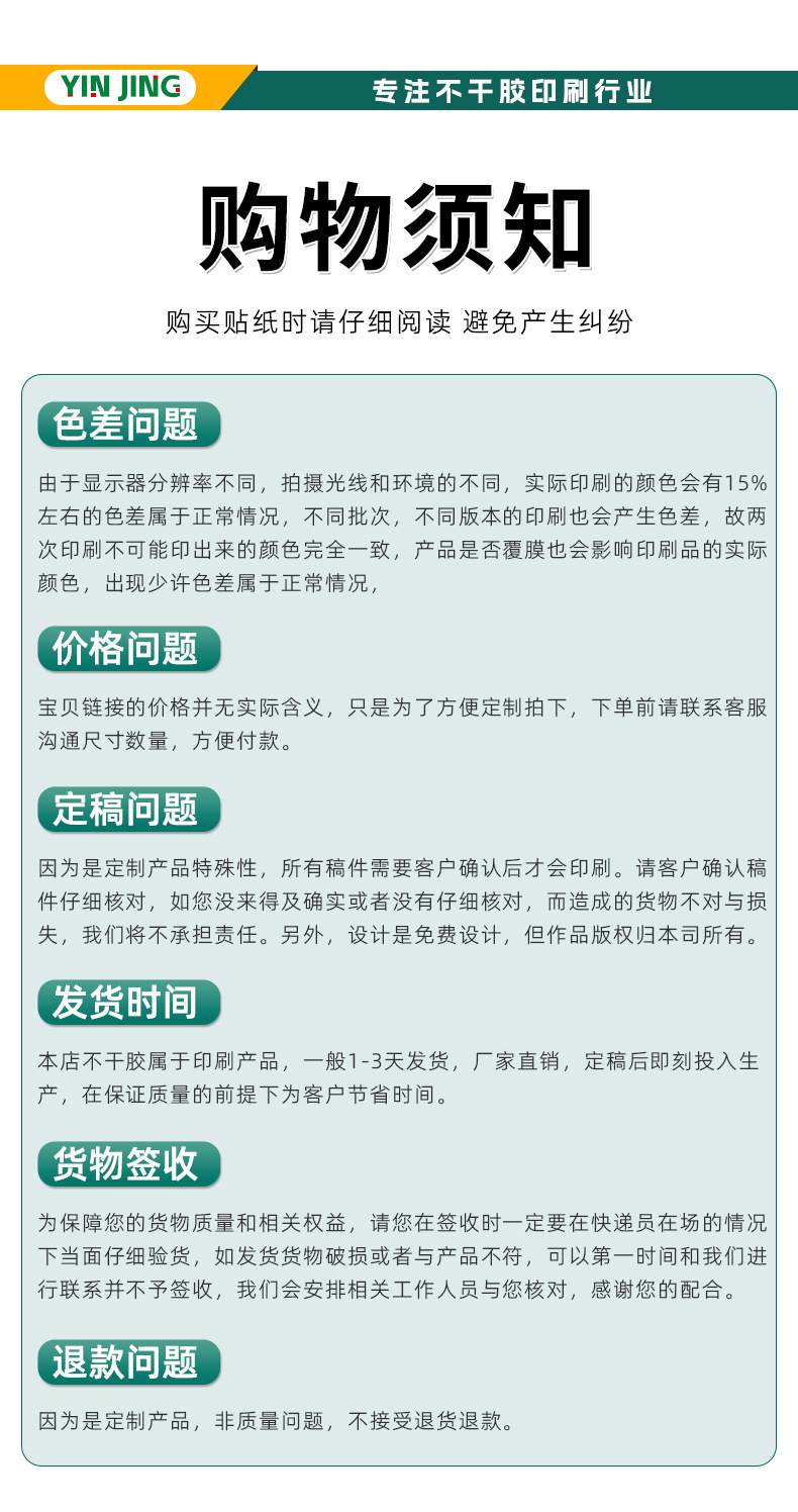 Самоклеящиеся этикетки [Получите мгновенную скидку 5 юаней на дополнительные покупки]; Персонализация прозрачных наклеек [высокая прозрачность и четкость]| Очень липкий с клеем]; Наклейки из ПВХ по индивидуальному заказу [прочные и износостойкие]| Водонепроницаемое охлаждение】; Индивидуальная матовая серебряная наклейка [водонепроницаемая и маслостойкая]| Печать высокой четкости]; Наклейки на рулонных этикетках по индивидуальному заказу [Приоритет для сбора]; Наклейка для переноса этикетки с кристаллами [оторвите пленку и оставьте сообщение]| Наклейте прочно】; Лазерные наклейки по индивидуальному заказу [ослепительные цвета]| Прозрачная текстура]; Самоклеящиеся этикетки из синтетической бумаги [водостойкие и маслостойкие]| Устойчивость к разрыву и износу】; Самоклеящиеся этикетки для письменной бумаги [можно писать густо]| Свежая текстура]; Наклейка с золотой этикеткой [посыпанная золотом и утолщенная| Четкая печать]; Наклейка на бумажную этикетку с рисунком дерева [простое искусство| Грубая текстура]; Проконсультируйтесь со службой поддержки клиентов| По индивидуальному заказу