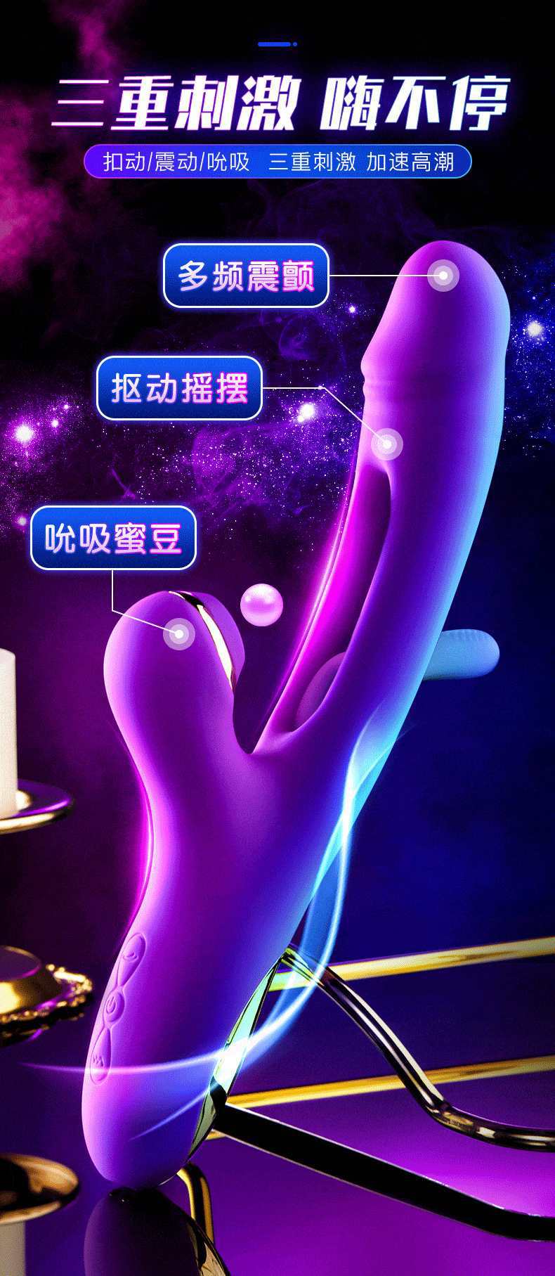 跨境新款双头震动棒女用情趣用品阴蒂吸舔自慰器按摩强震成人用品