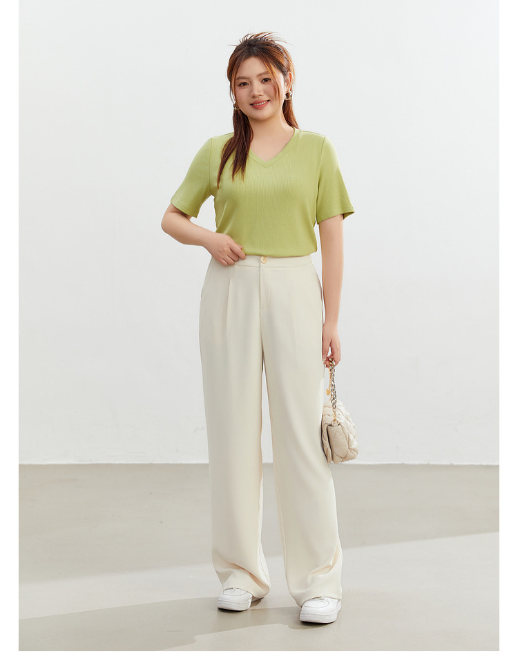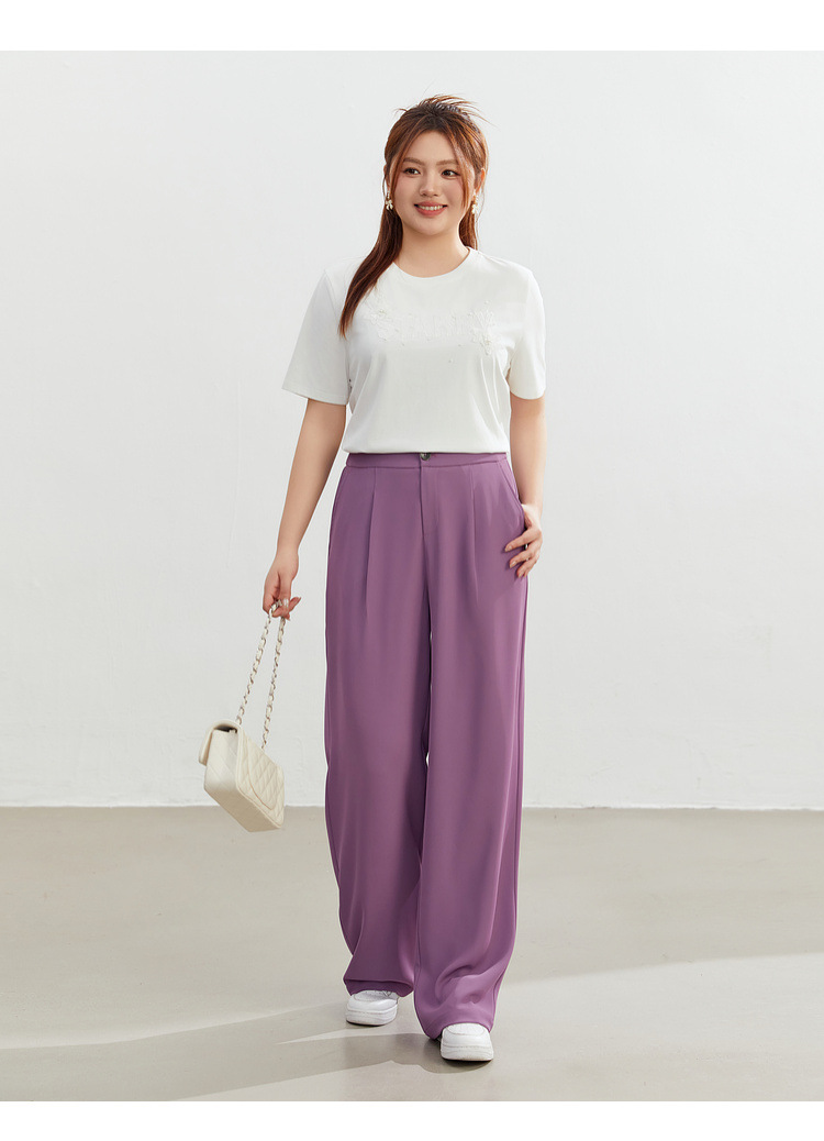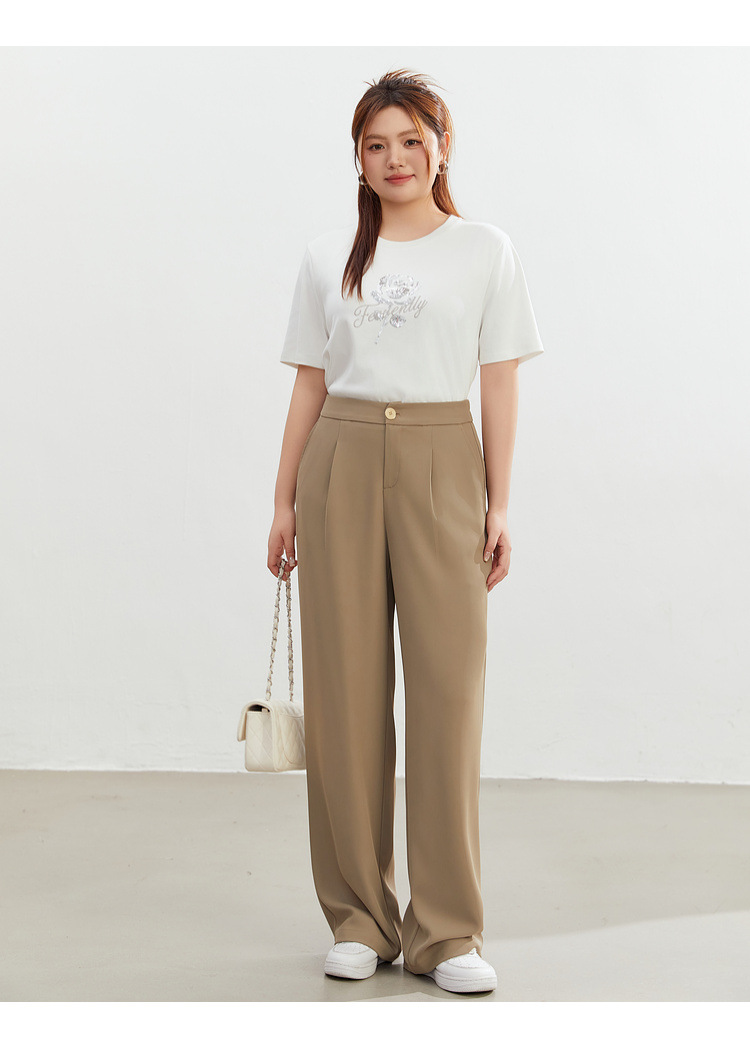 Xianlixiu женские простые свободные драпированные брюки больших размеров, закрывающие телесный цвет и широкие брюки для похудения, весна 2024, новый стиль