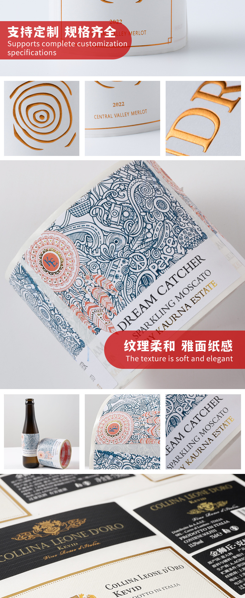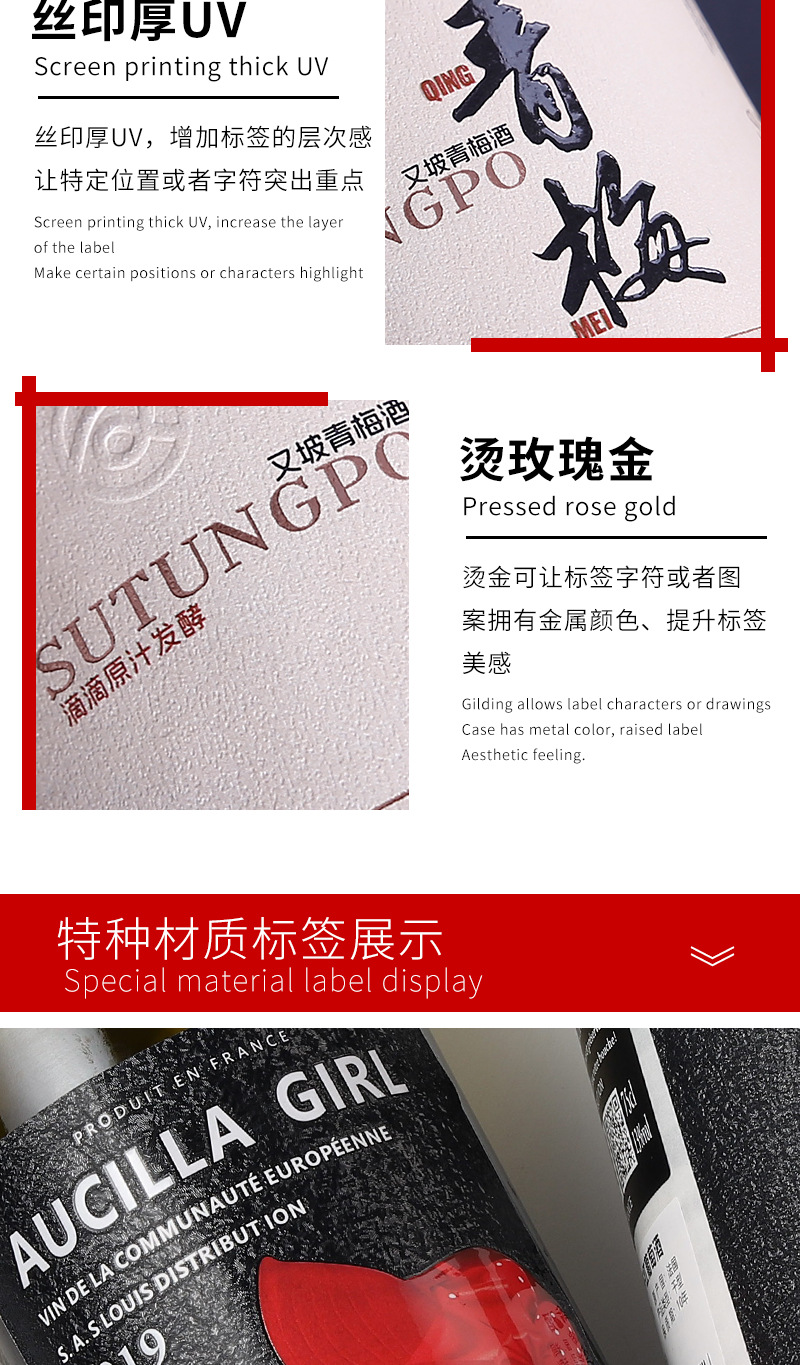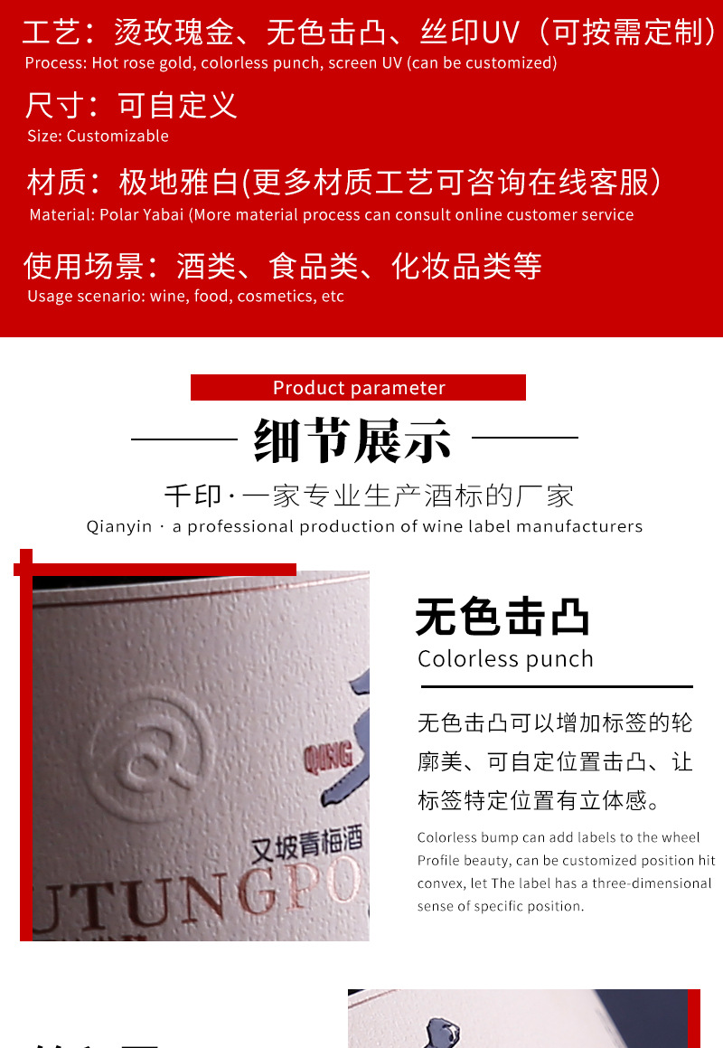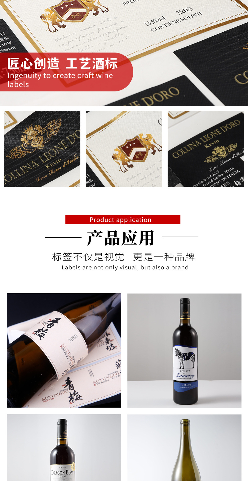 Индивидуальные этикетки для вина, этикетки из белой тканевой бумаги, наклейки с трафаретной печатью и УФ-тиснением, маркировка пищевых продуктов, индивидуальные клейкие этикетки