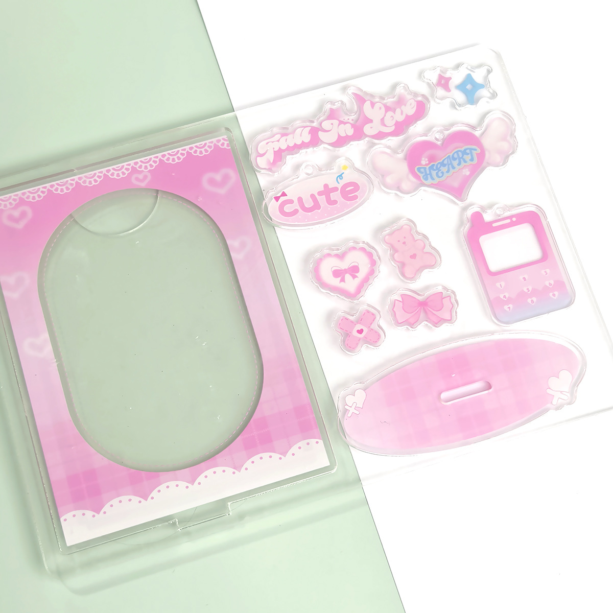 Прозрачный акриловый брелок на заказ, двухслойный аниме, подставка для 3inch карт, сделай сам, подвеска с героями мультфильмов, распаковка, оптовая продажа