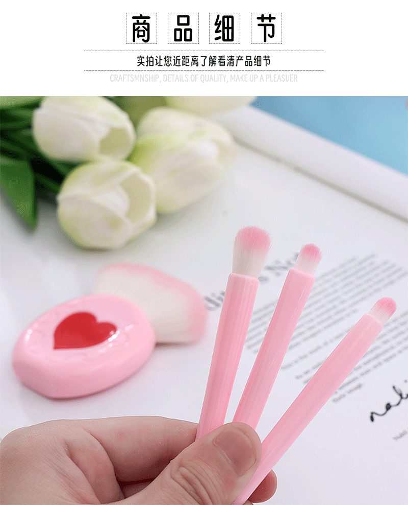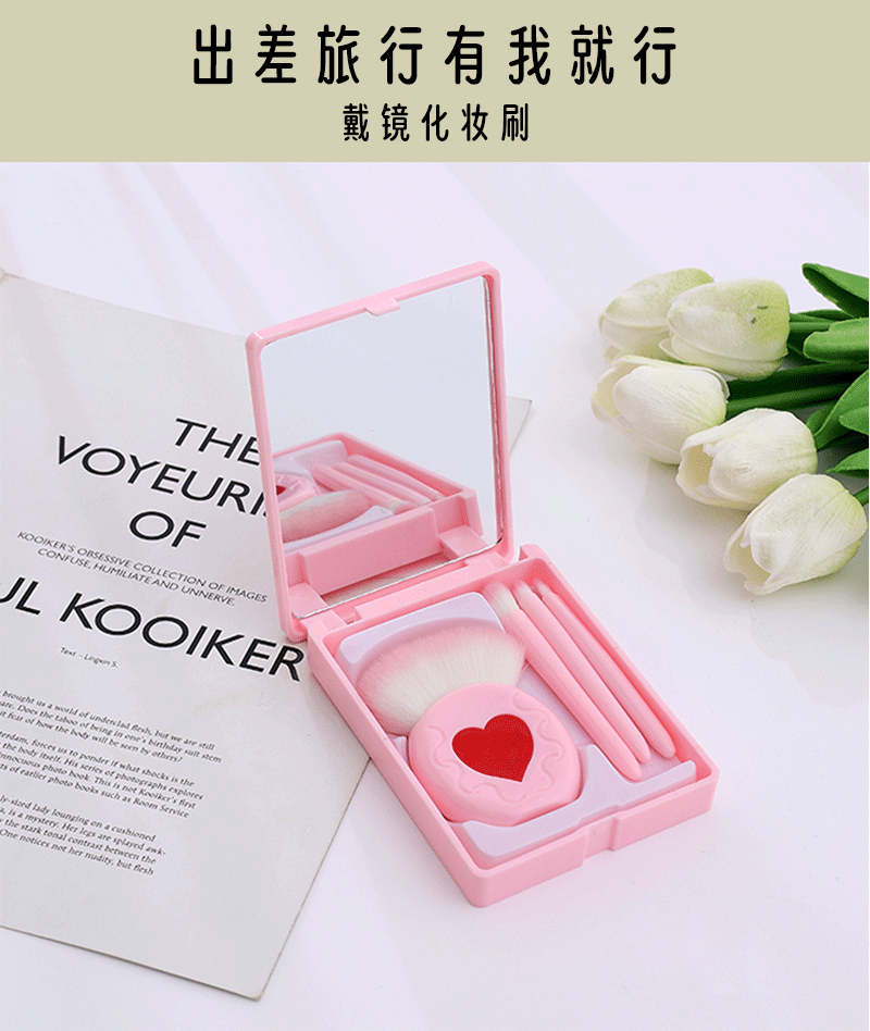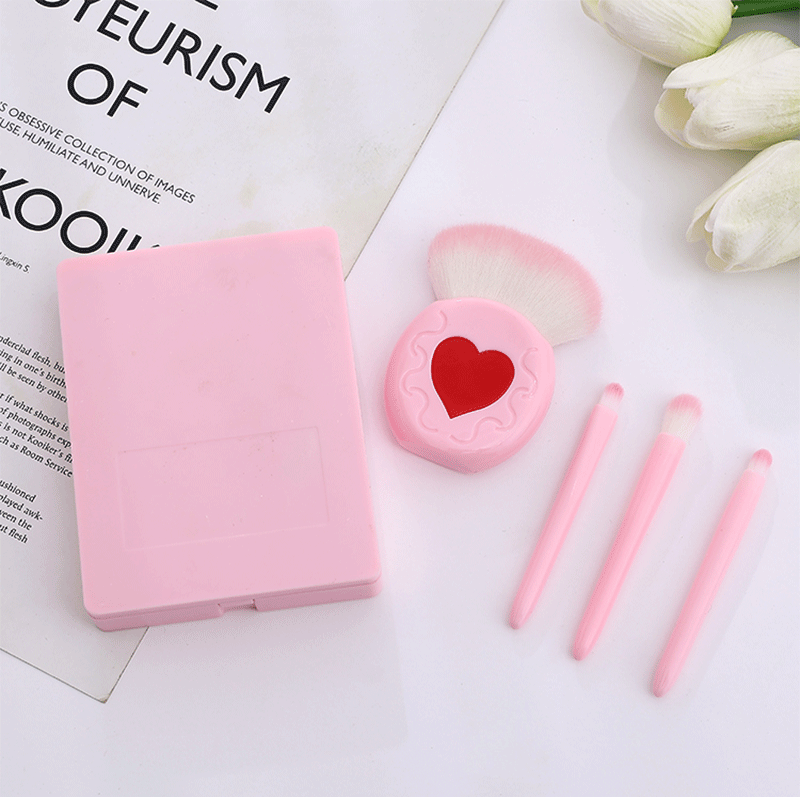 Портативный набор кистей для макияжа из 4 предметов с розовым зеркалом, набор кистей для макияжа, кисть для румян, кисть для теней, розовая портативная коробка
