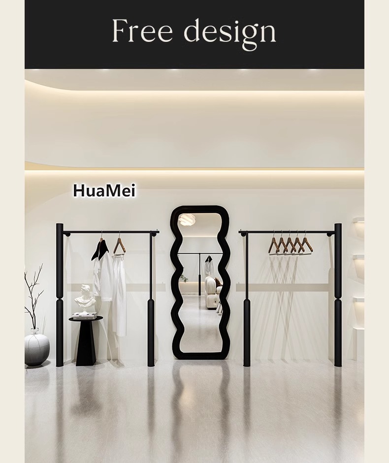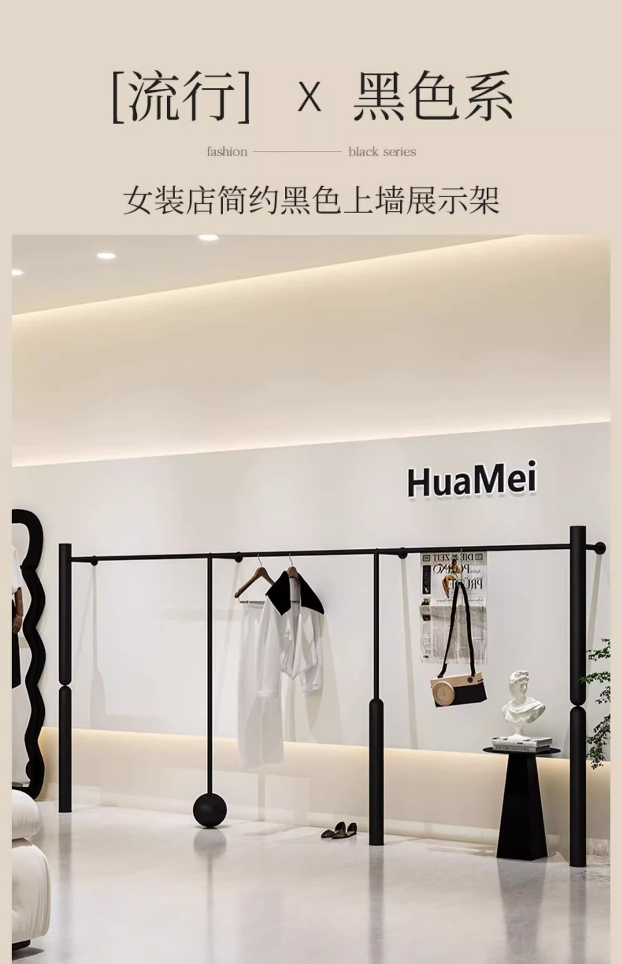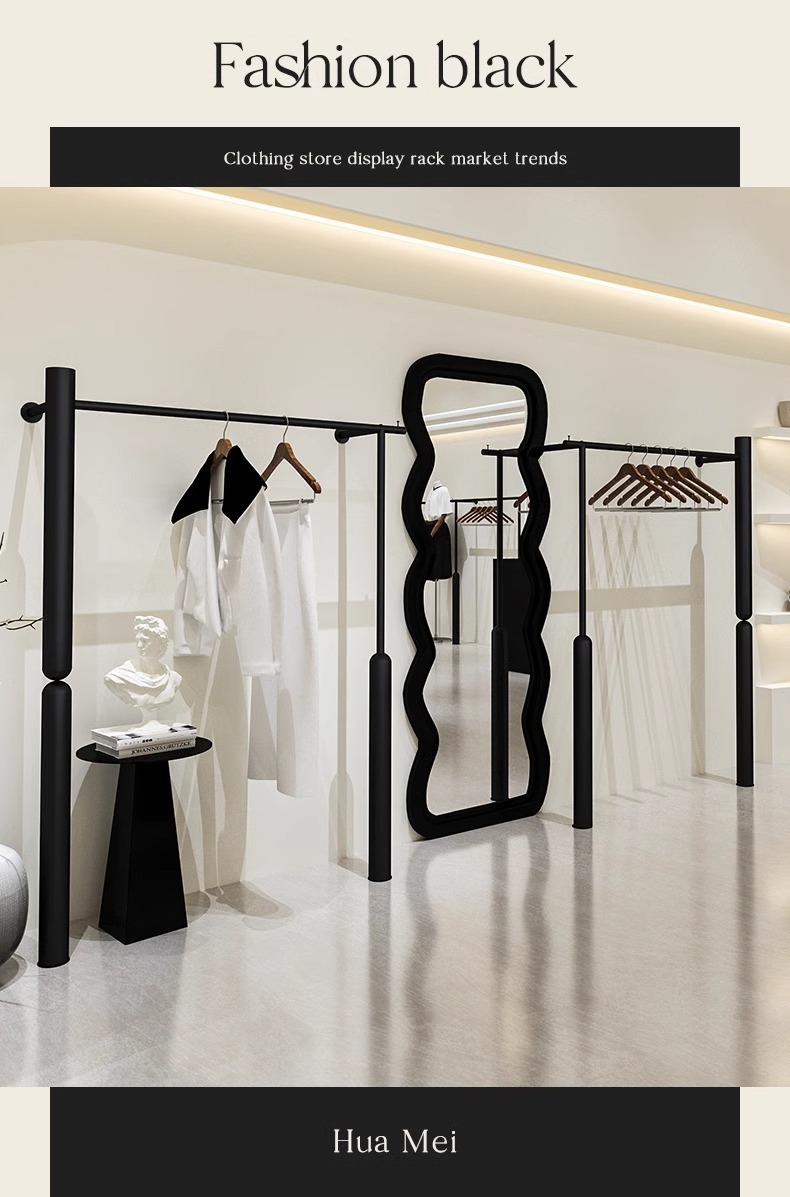 Стеллаж для магазина одежды, настенный черный железный магазин мужской и женской одежды, специальная полка, витрина, вешалка для одежды