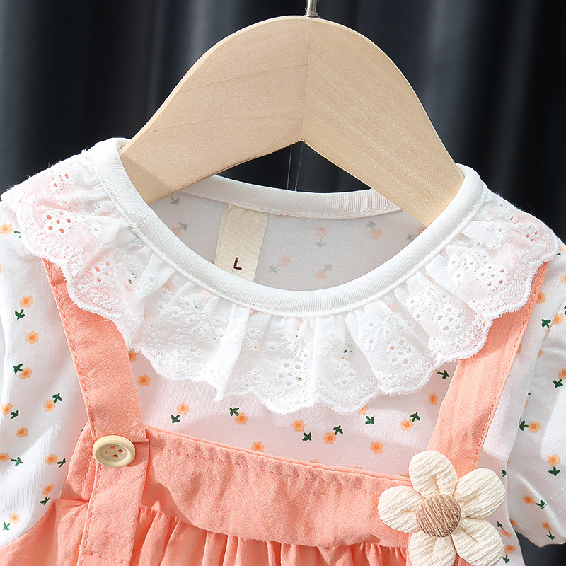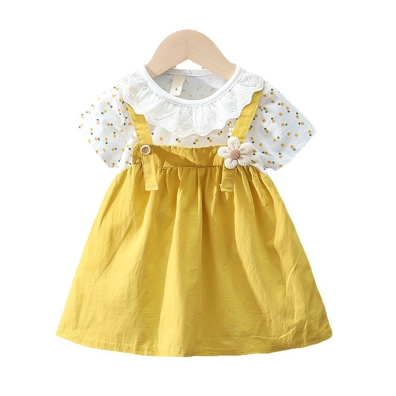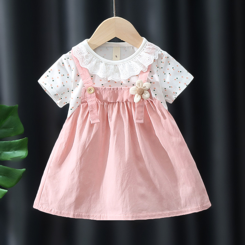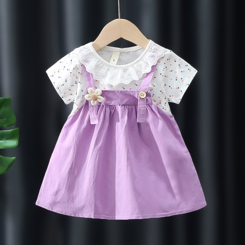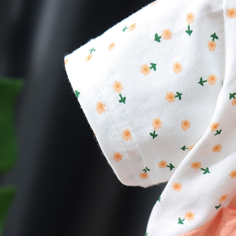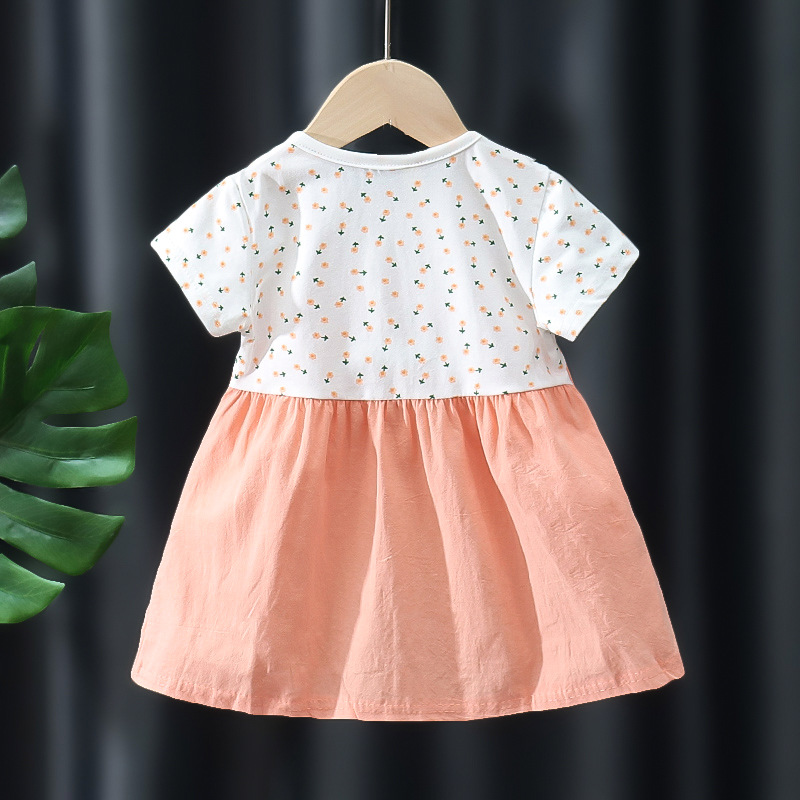 Платье для девочек, лето 2025, новая модель, милое, с цветочным принтом, юбка А-силуэта для маленьких и средних детей, из чистого хлопка, с коротким рукавом.