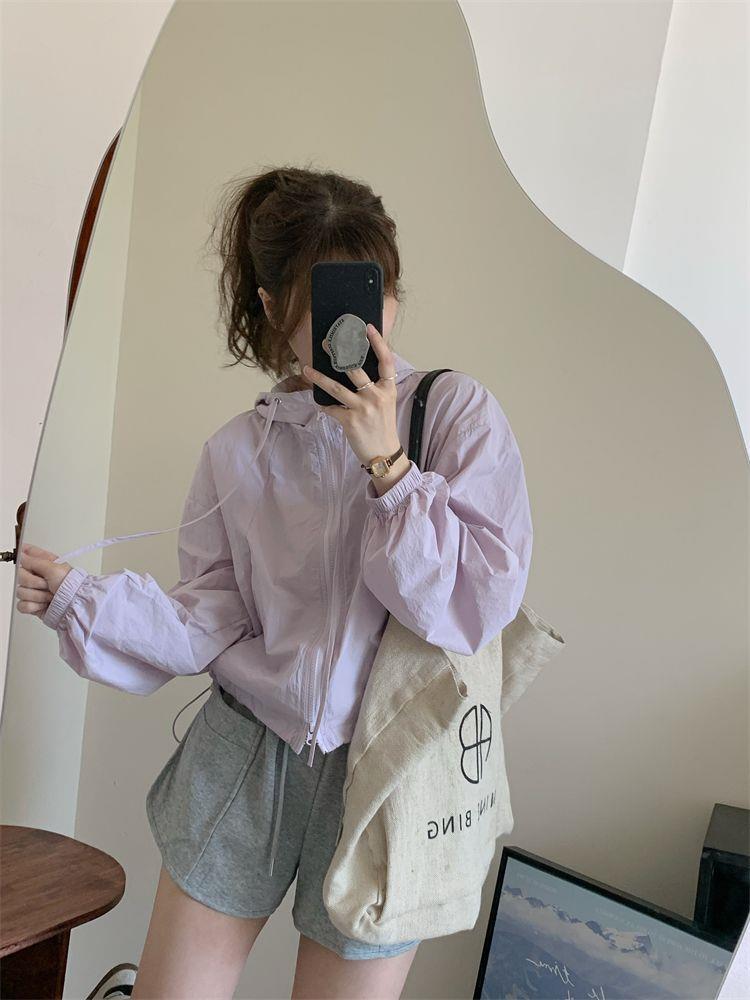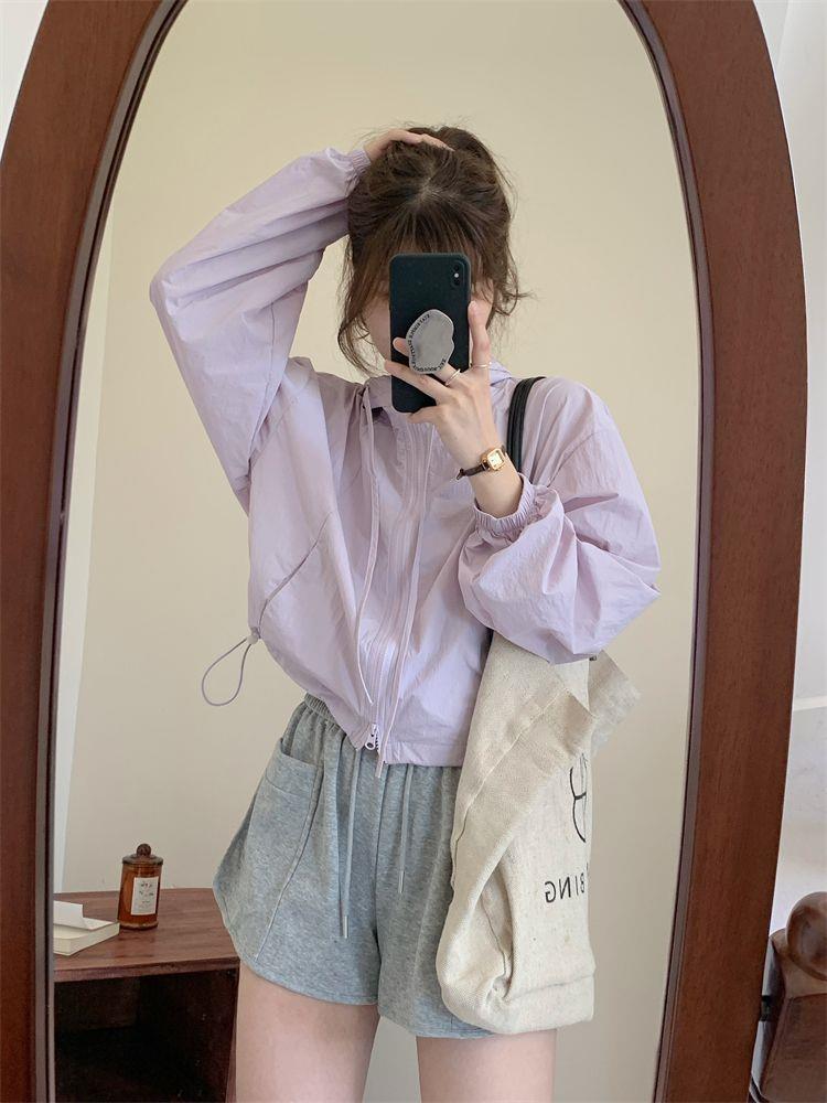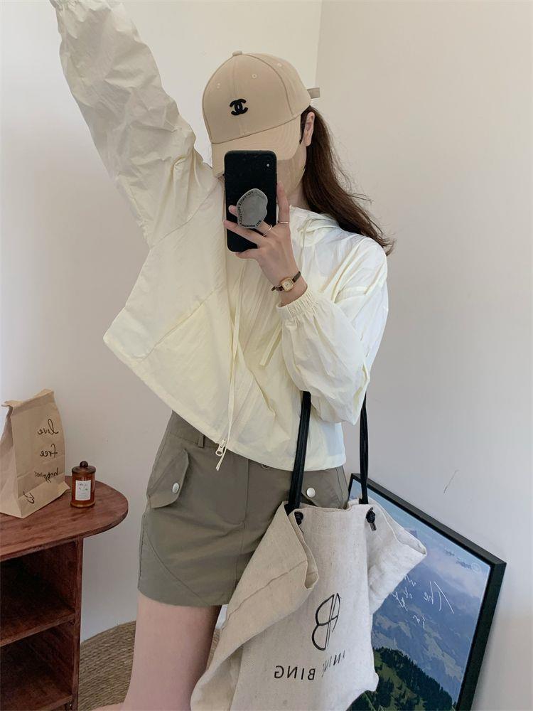 Короткий солнцезащитный крем с капюшоном женская летняя маленькая спортивная куртка 2025 летняя повседневная солнцезащитная одежда