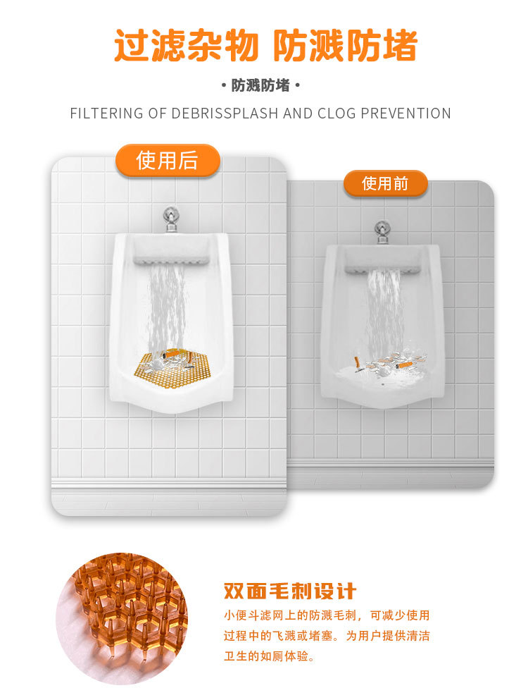 Шестиугольная сетка для защиты от брызг, двусторонняя подкладка для писсуара Amazon для мужских туалетов, дезодорирующая ароматизированная таблетка, предотвращающая засорение