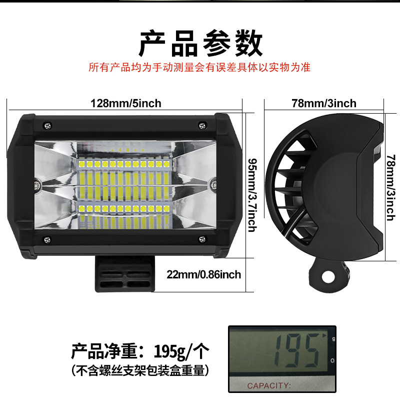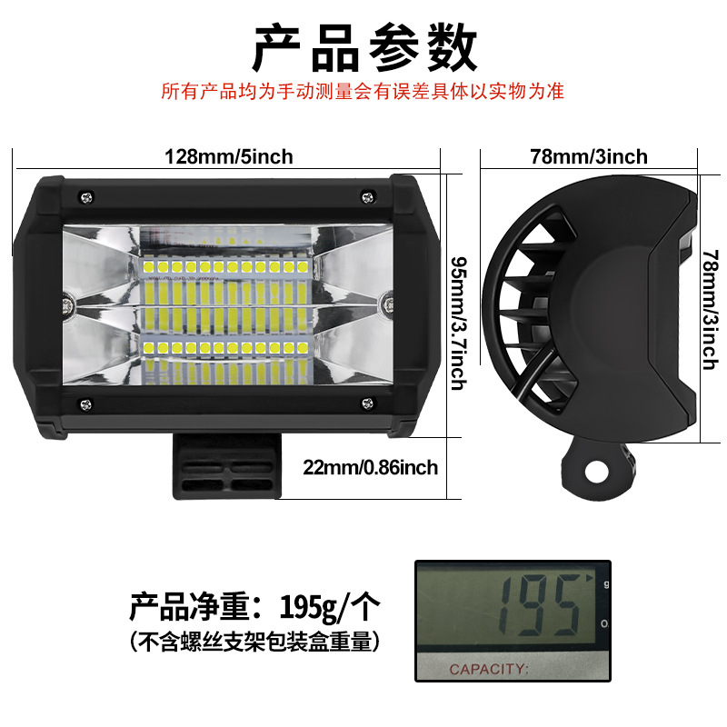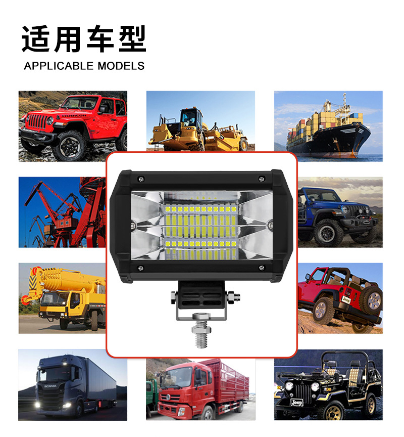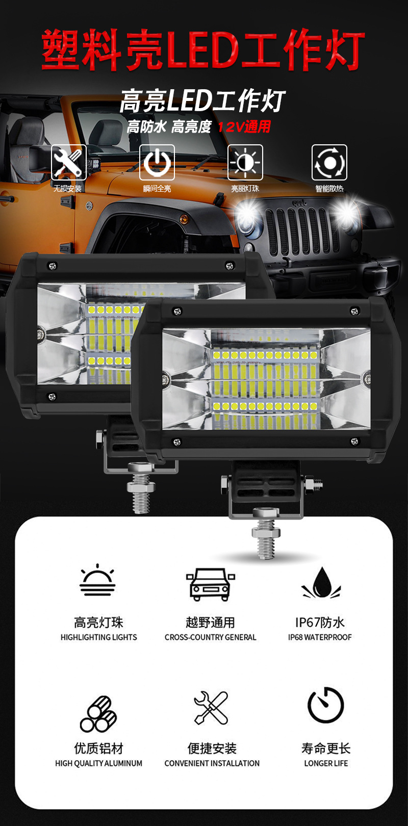 Боковой свет двухрядный 72W автомобильный светодиодный рабочий свет пластиковый 24 бусин трехкулярный водонепроницаемый двухрядный светодиодный свет