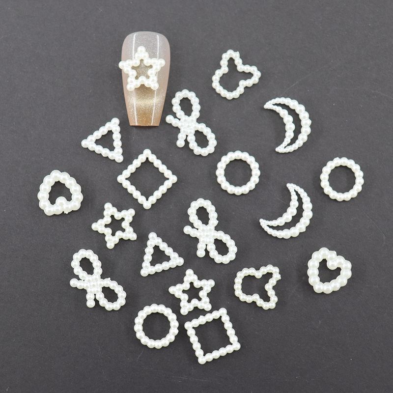 Новый маникюр ювелирная смола имитация жемчуга рисового белого любовного лука пятиконечная звезда луна дикая трехмерная декоративная партия