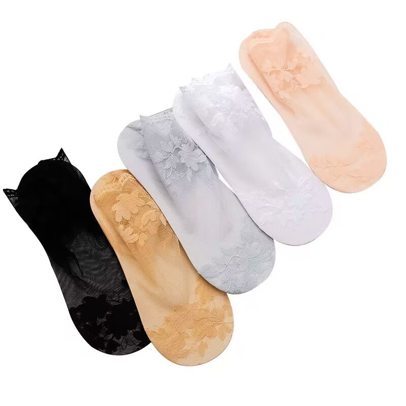 Носки женские летние тонкие кружевные носки хлопчатобумажные носки короткие средние носочные носки полые и нескользящие листья сетчатая пряжа
