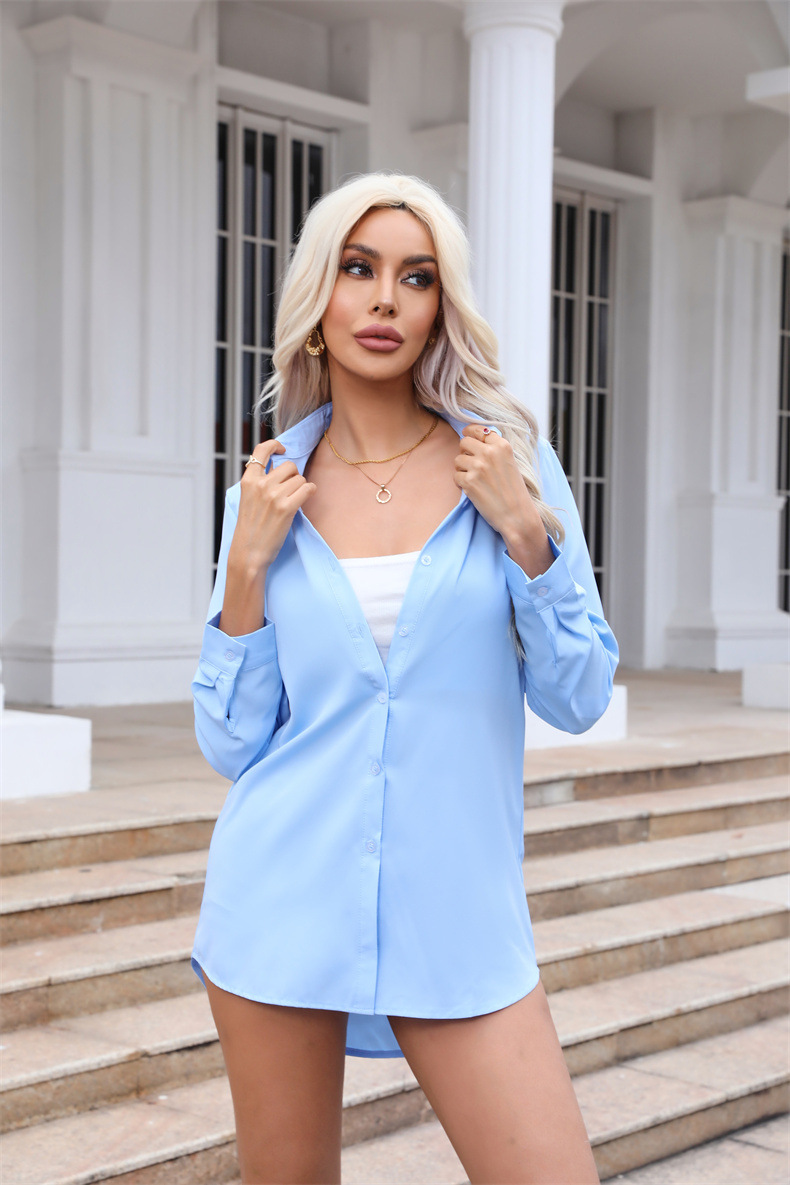 Европейская и американская женская рубашка для внешней торговли Amazon 2026, белая, средней длины, в стиле BF, свободная, сексуальная ночная рубашка, шифоновая рубашка с длинным рукавом