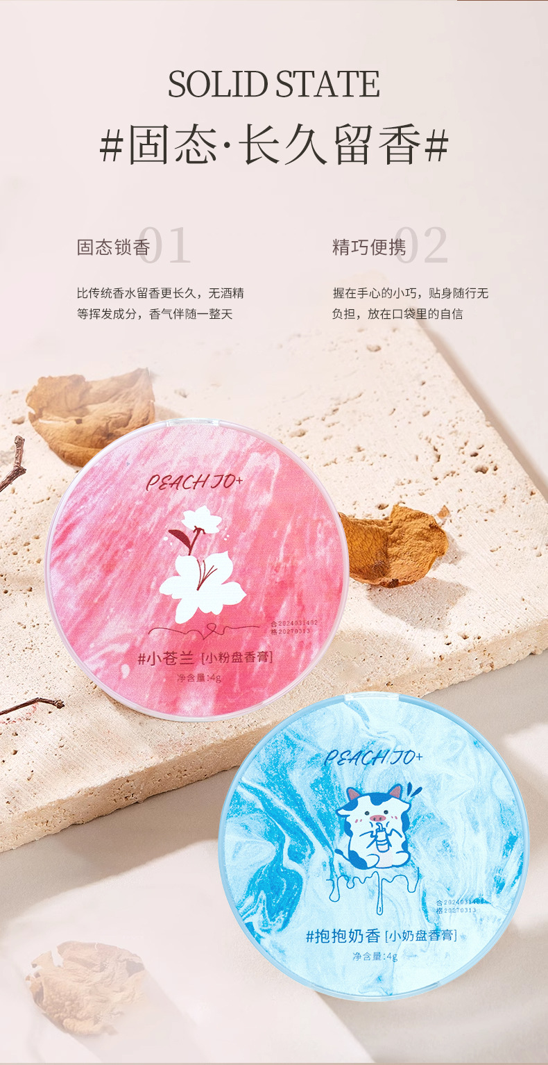 PEACH JO персик как диск, держащий молочный твердый бальзам, парфюмерный бальзам, длительный аромат