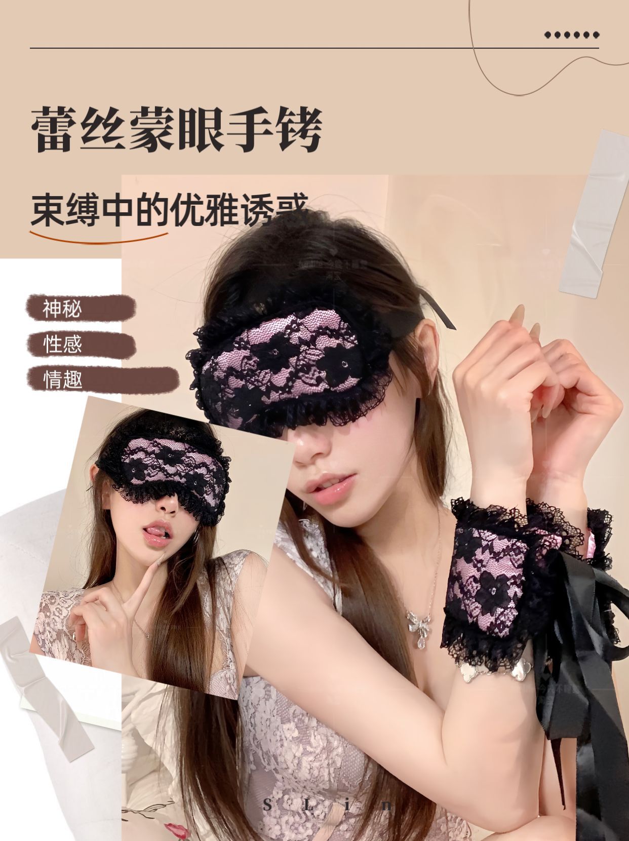 禁欲系性感黑色蕾丝边情趣眼罩女情侣蒙面蕾丝手铐黑色捆绑饰品