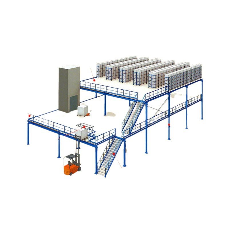 Стеллажи, перегородки и платформы для склада, второго этажа, лофта, выполненные на заказ из стальной конструкции для цеха на заводе.