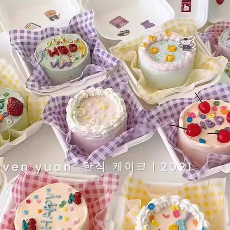 Торт для выпечки украшения корейские ins ветер цветной масляной бумаги фрукты клубничный клетчатый масляной бумаги коробка для бенто прокладок