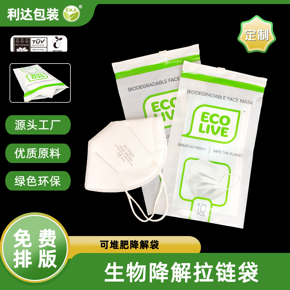 Индивидуальные биоразлагаемые пакеты с застежкой-молнией для масок, специальная упаковка, PLA+PBAT, разлагаемые пакеты.