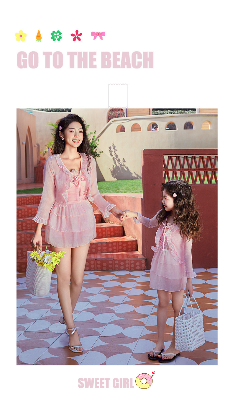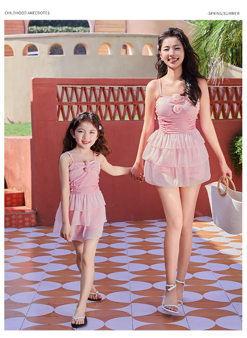 Новый купальник родитель-ребенок цельный купальник мама девочка большая, средняя и маленькая девочка принцесса купальник горячий источник милый пляжный купальник
