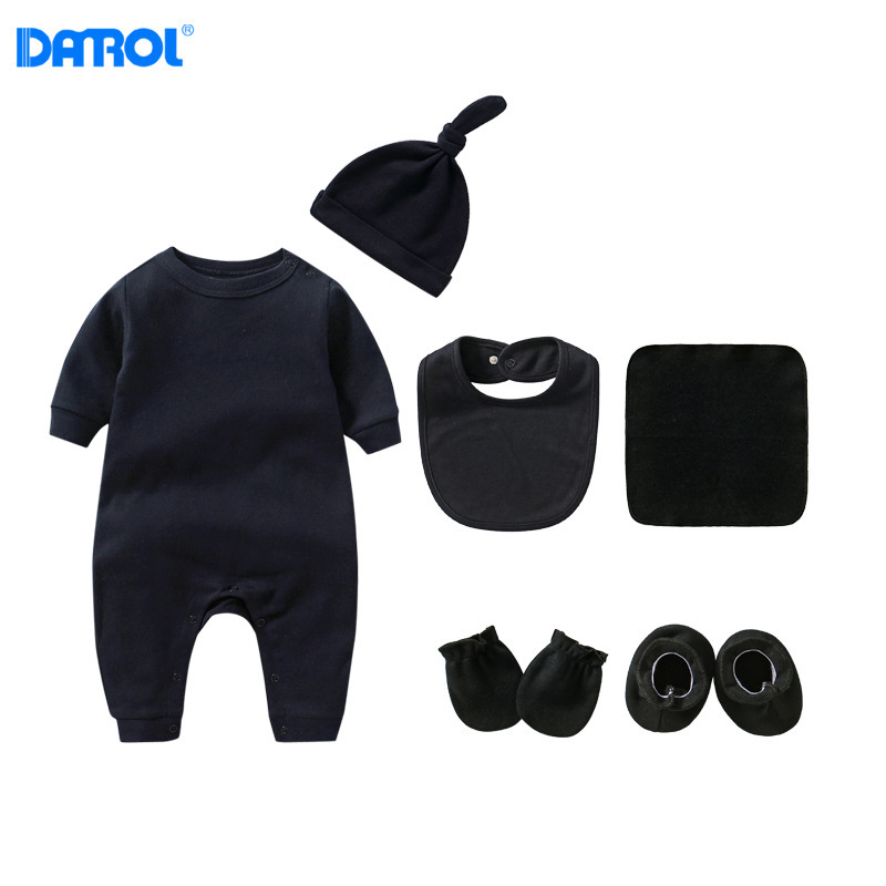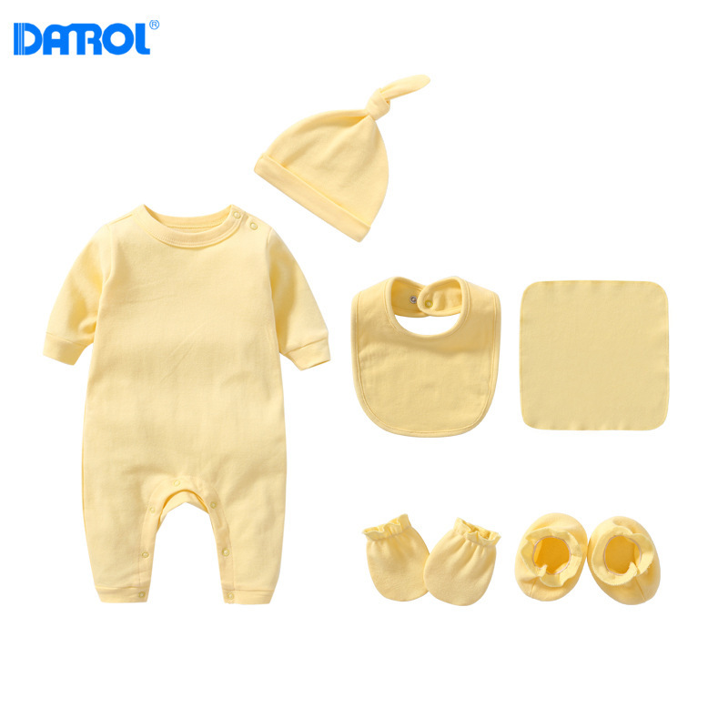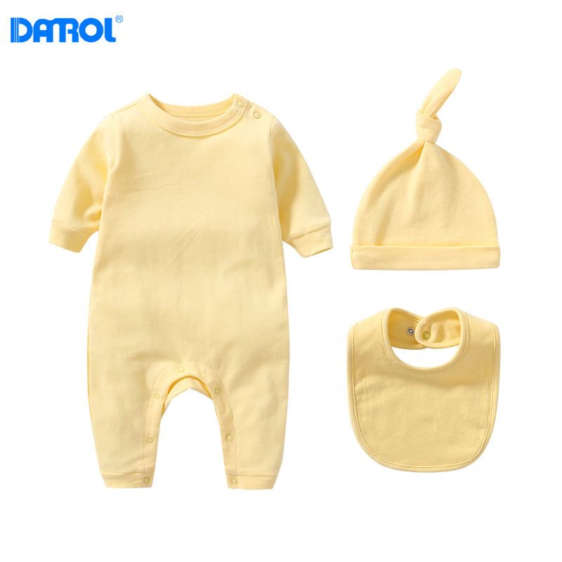 Новорожденный ребенок сплошной цвет хлопчатобумажная плечевая пряжка с длинными рукавами костюма комбинированного костюма аксессуаров для новорожденных