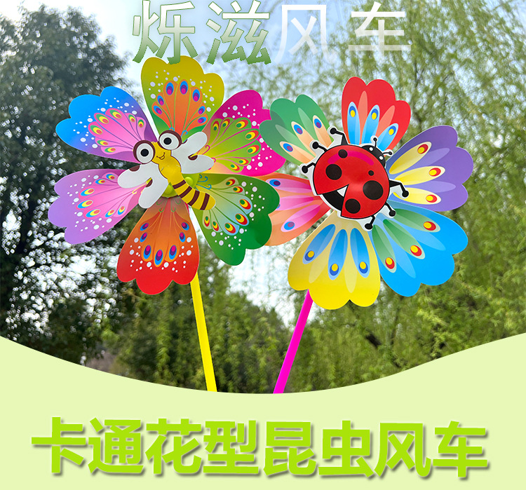 Мультяшная ветряная мельница в форме насекомых, производитель, оптовая продажа, детские игрушки для детского сада, ручной уличный киоск, подарочная ветряная мельница