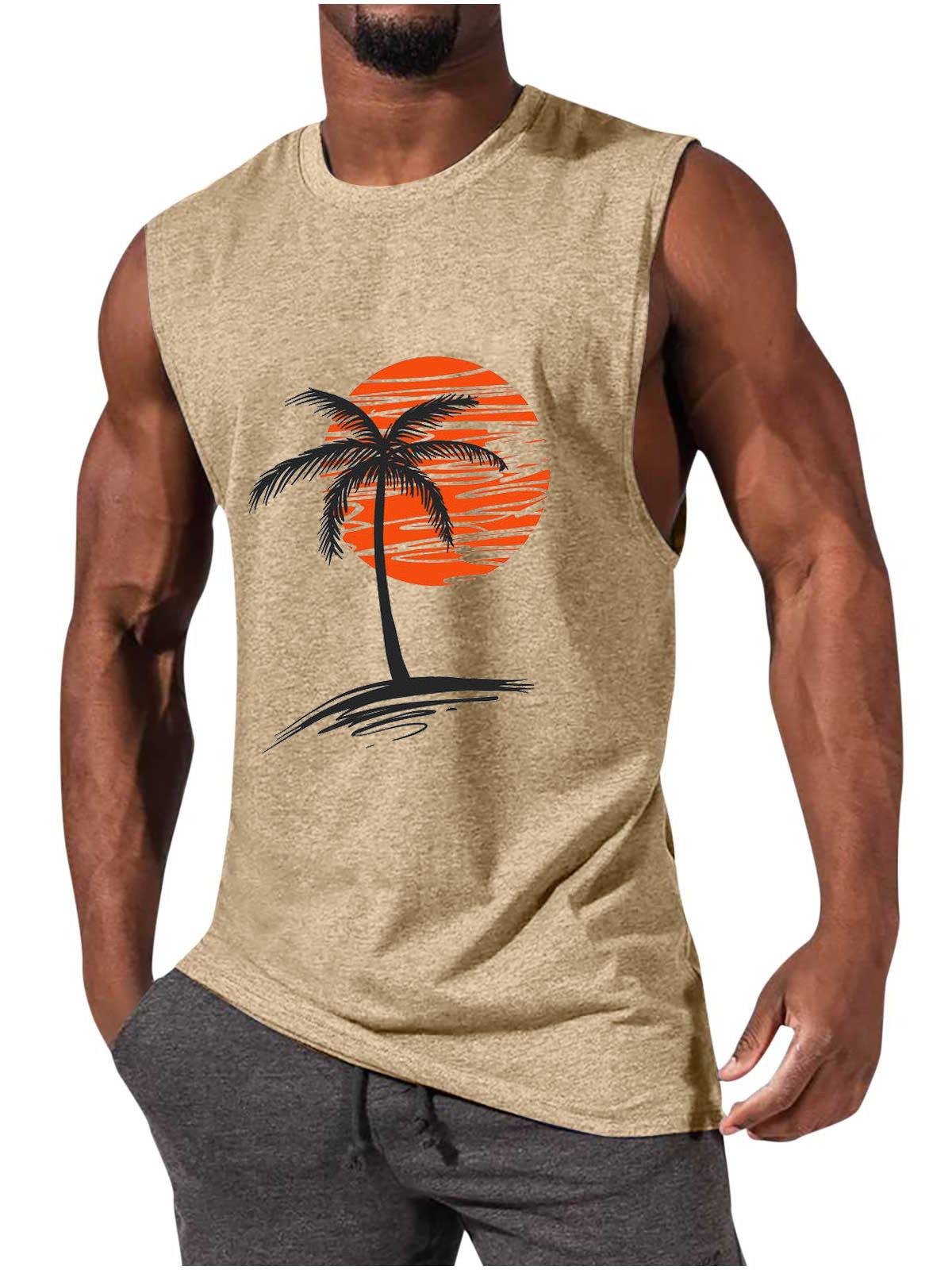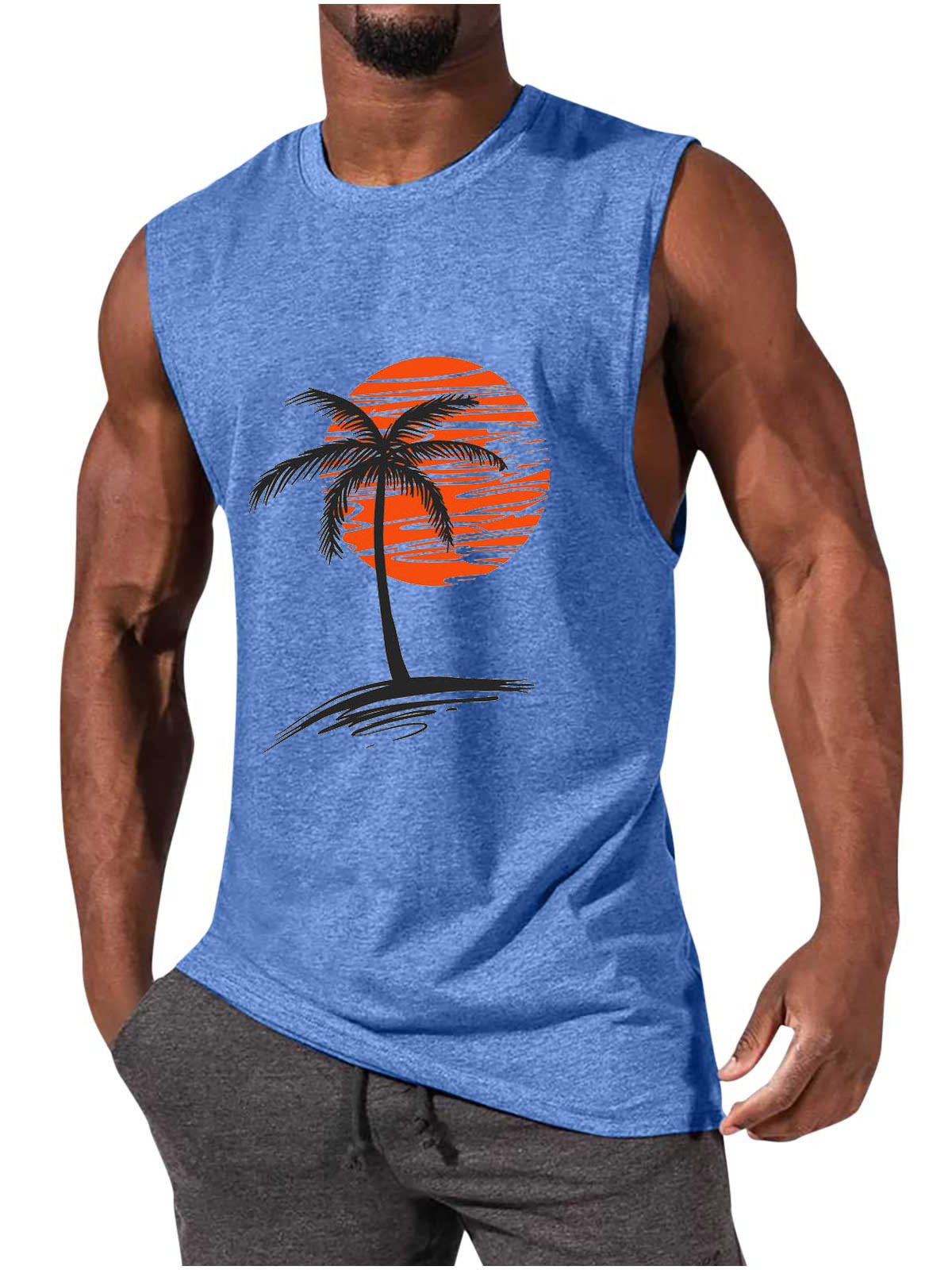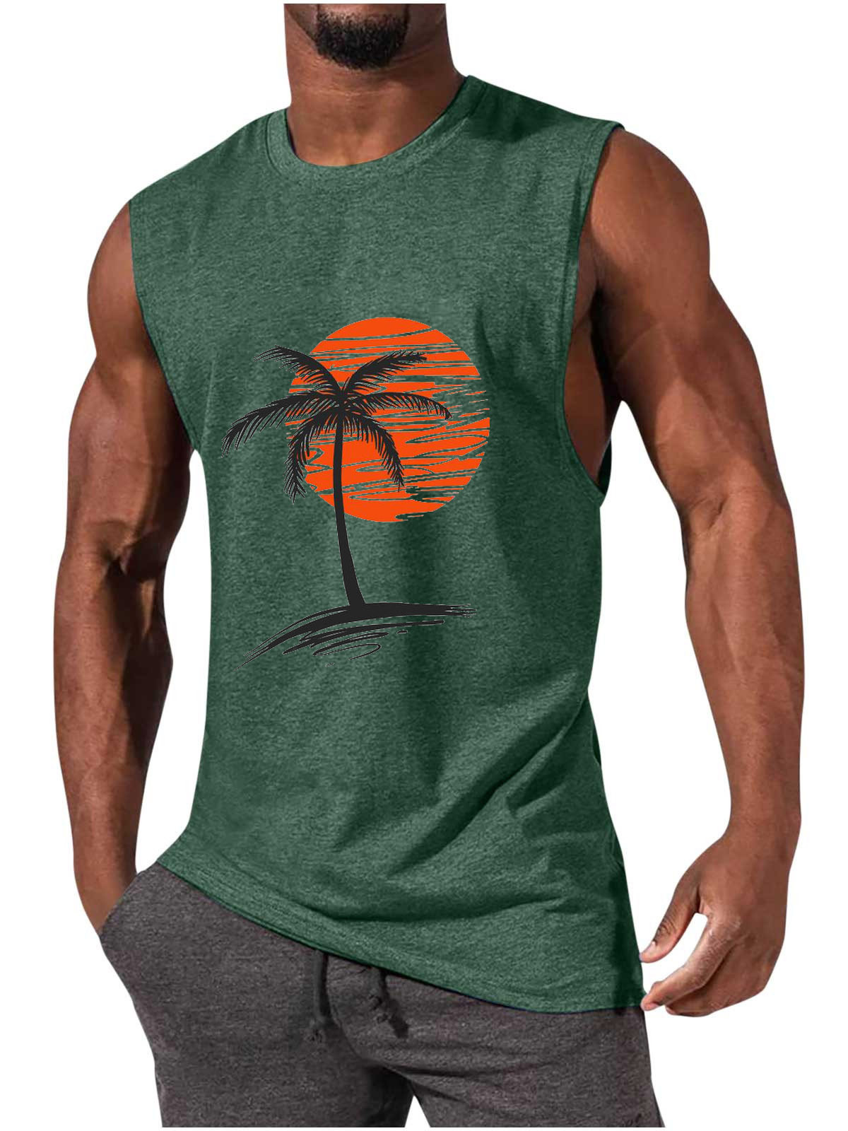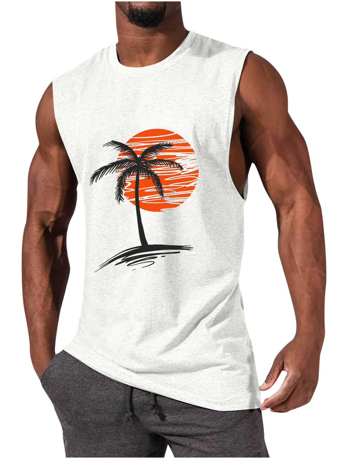2024 Amazon новый мужской жилет мускулистый мужской спортивный повседневный жилет с горячей кокосовой пальмы мужской топ футболка