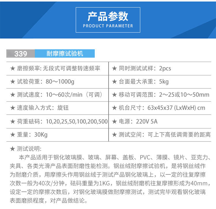 综合运用于金属、玻璃、眼镜镜片、亚克力、家具油漆层、清洁过滤材料、防护材料、消音材料、摩擦材料等众多工业产品测试使用。