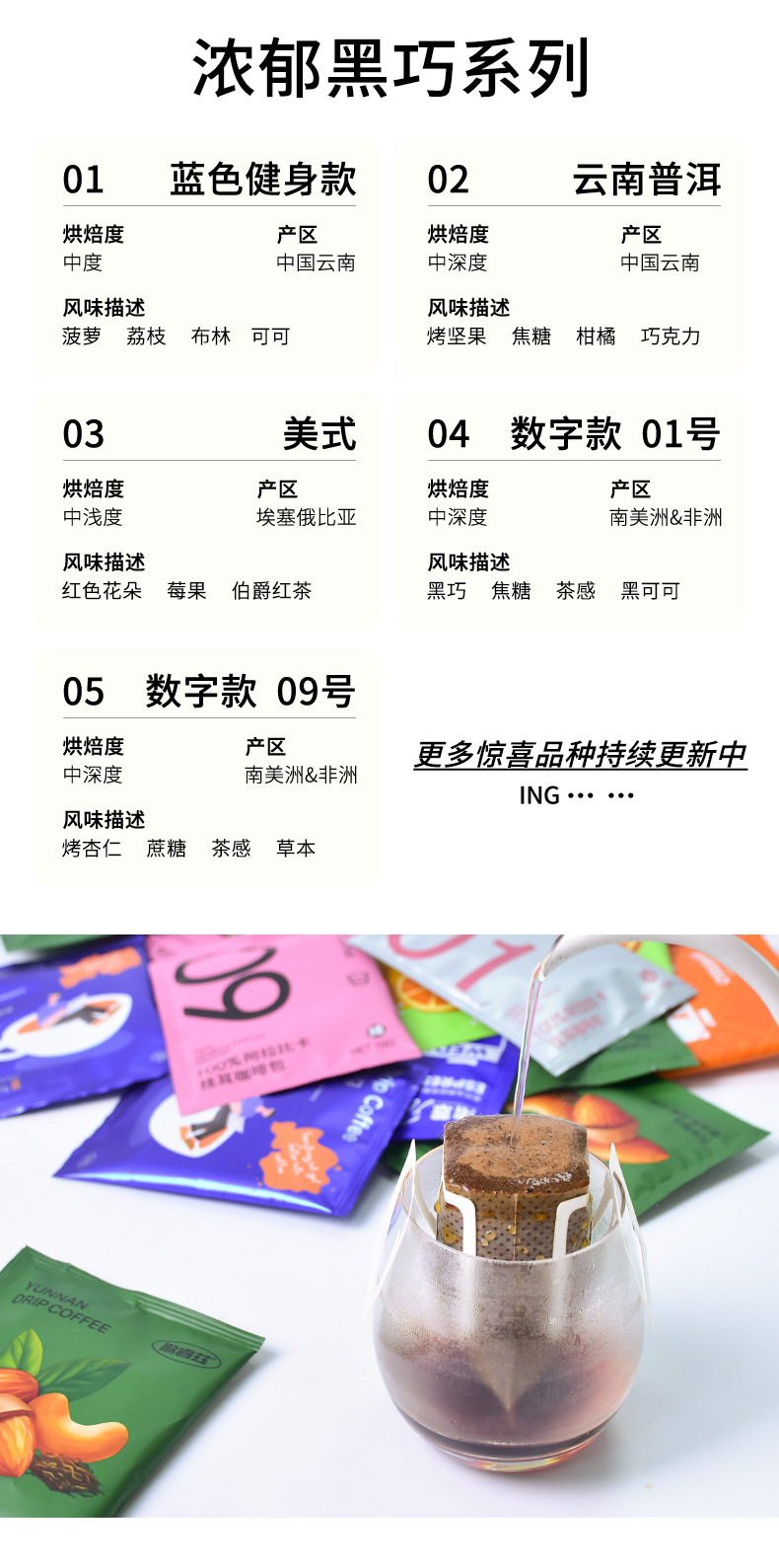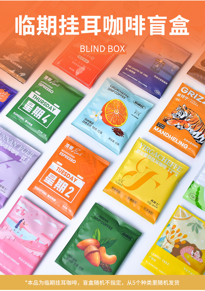 Кофе в пакетиках-сюрпризах (срок годности подходит к концу), растворимый черный кофе Huakui Guisha Konga для ручного заваривания, 10 г * 30 пакетов, оптом.
