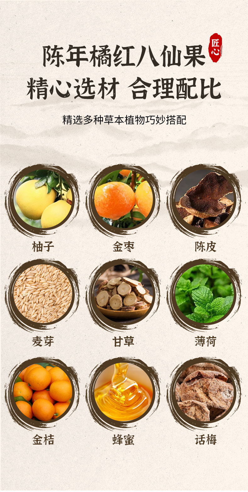 Консервированные фрукты Ченпи «Восемь бессмертных» 250 г Хуачжоу Апельсиново-красные кантонские консервированные фрукты Хуанцзяо Бажун Фрукты Офисные повседневные закуски