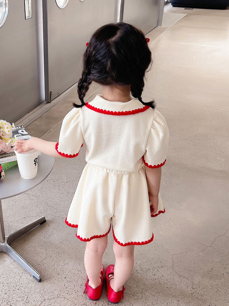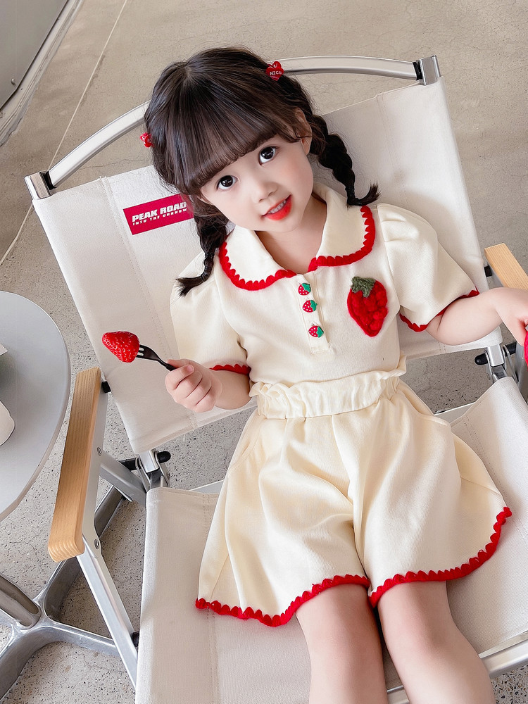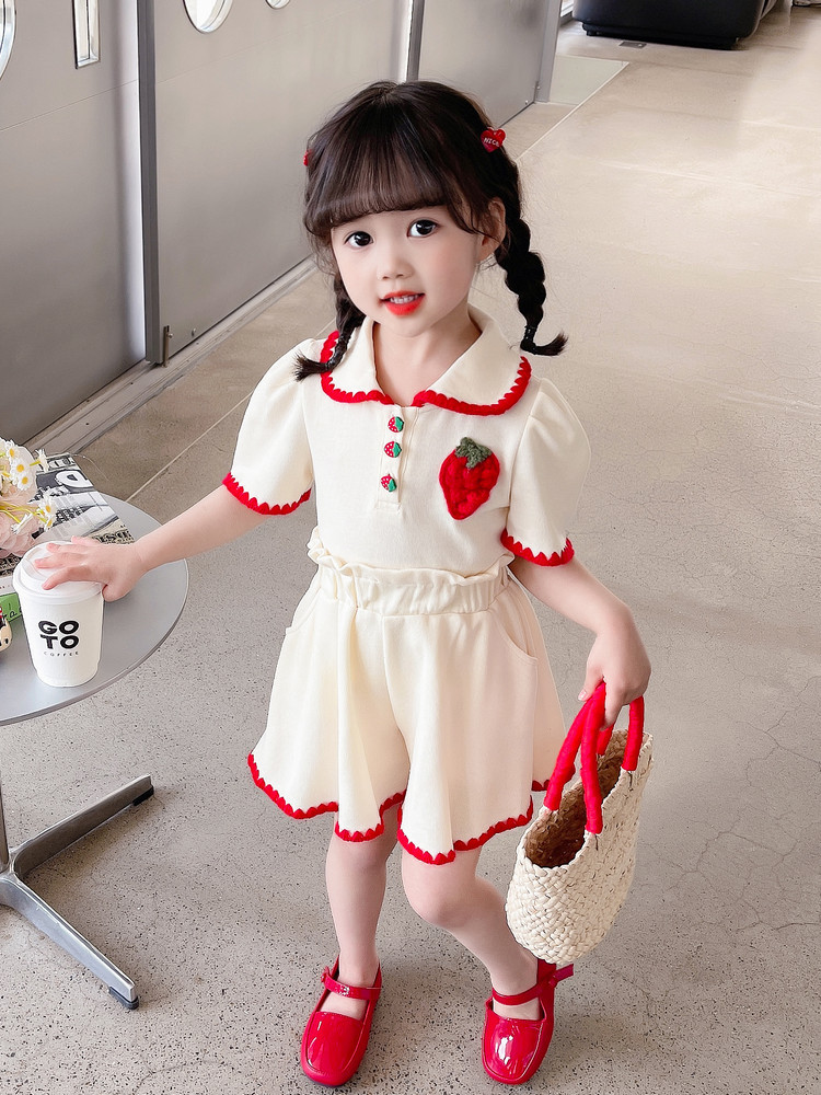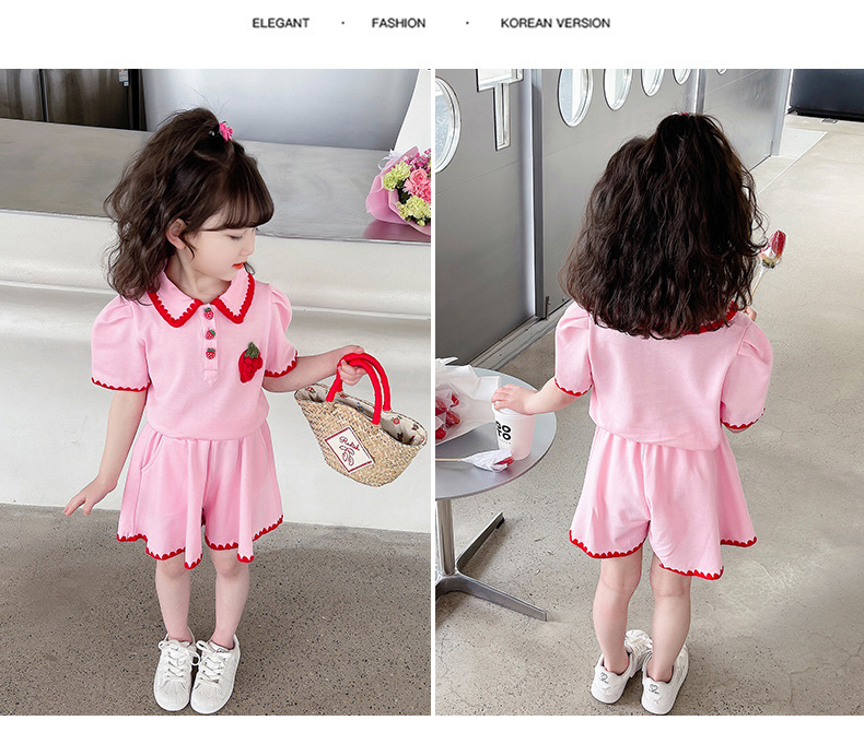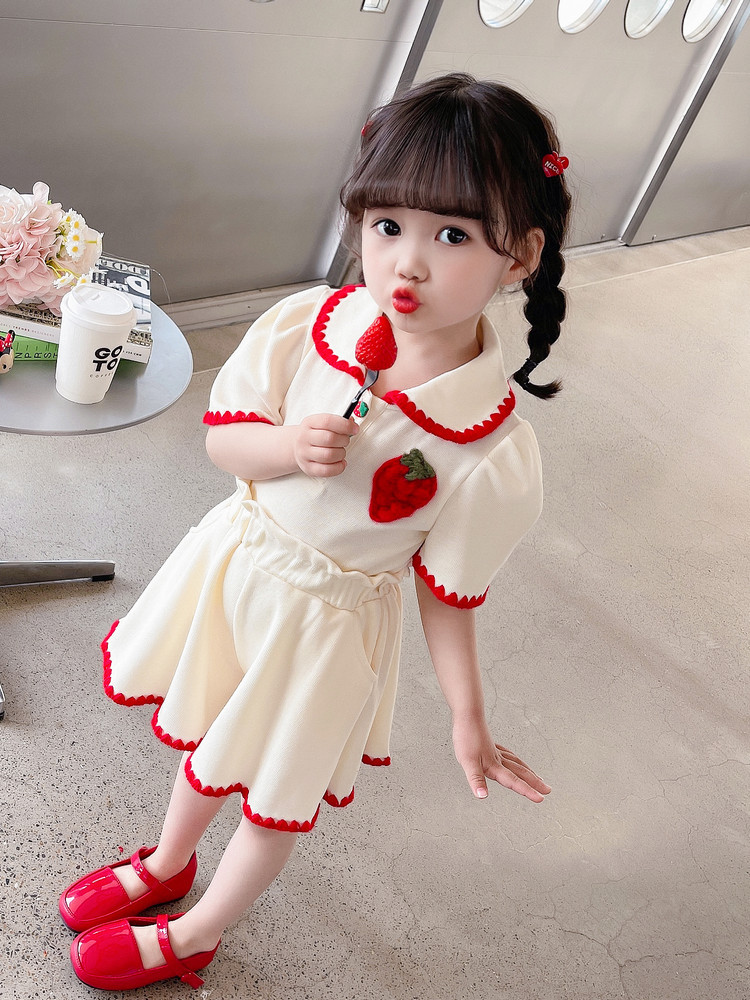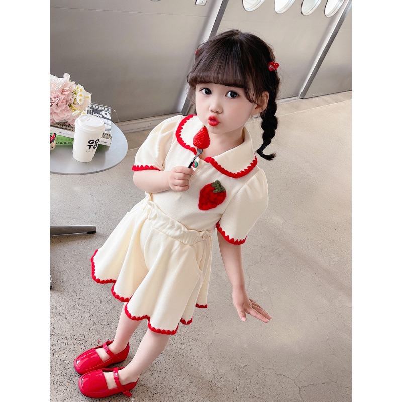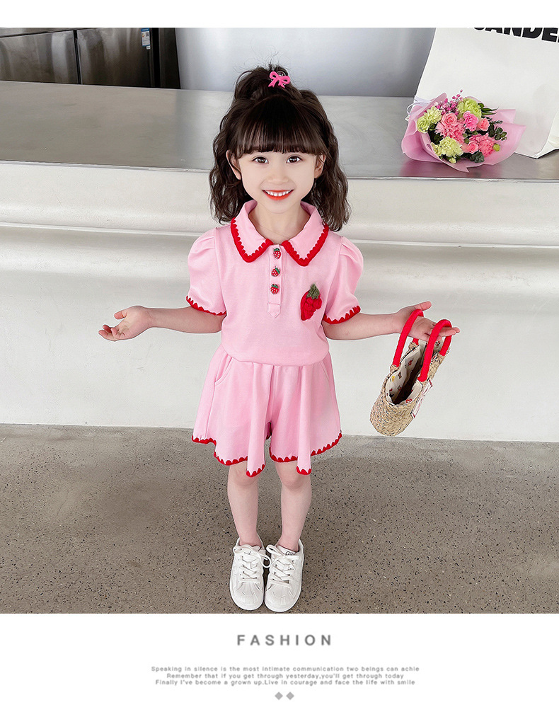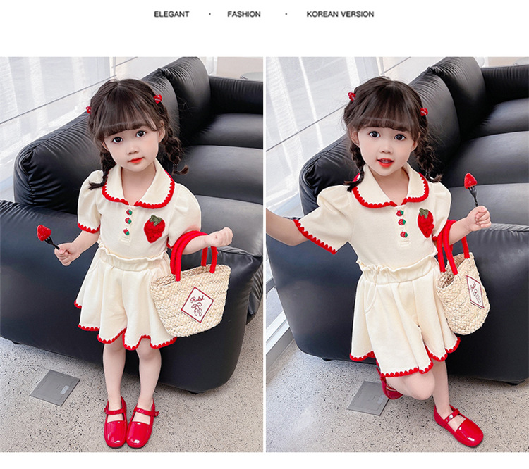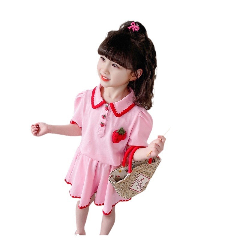 1371 # хлопчатобумажная юбка для девочек летом 2024 новый детский костюм с короткими рукавами летняя модная девушка сокровище