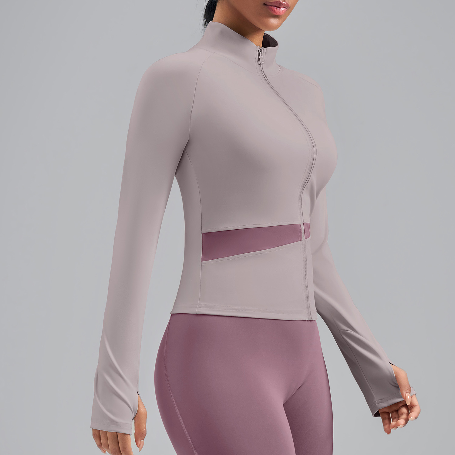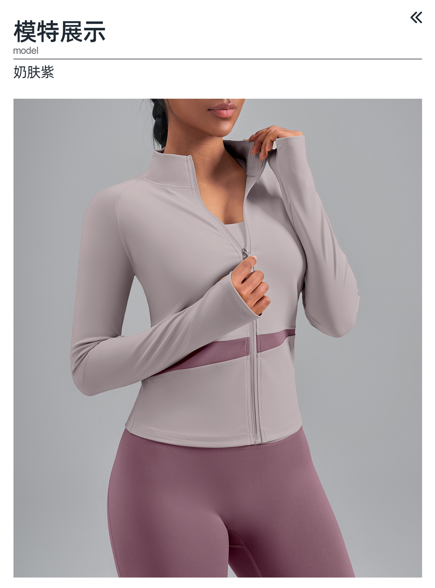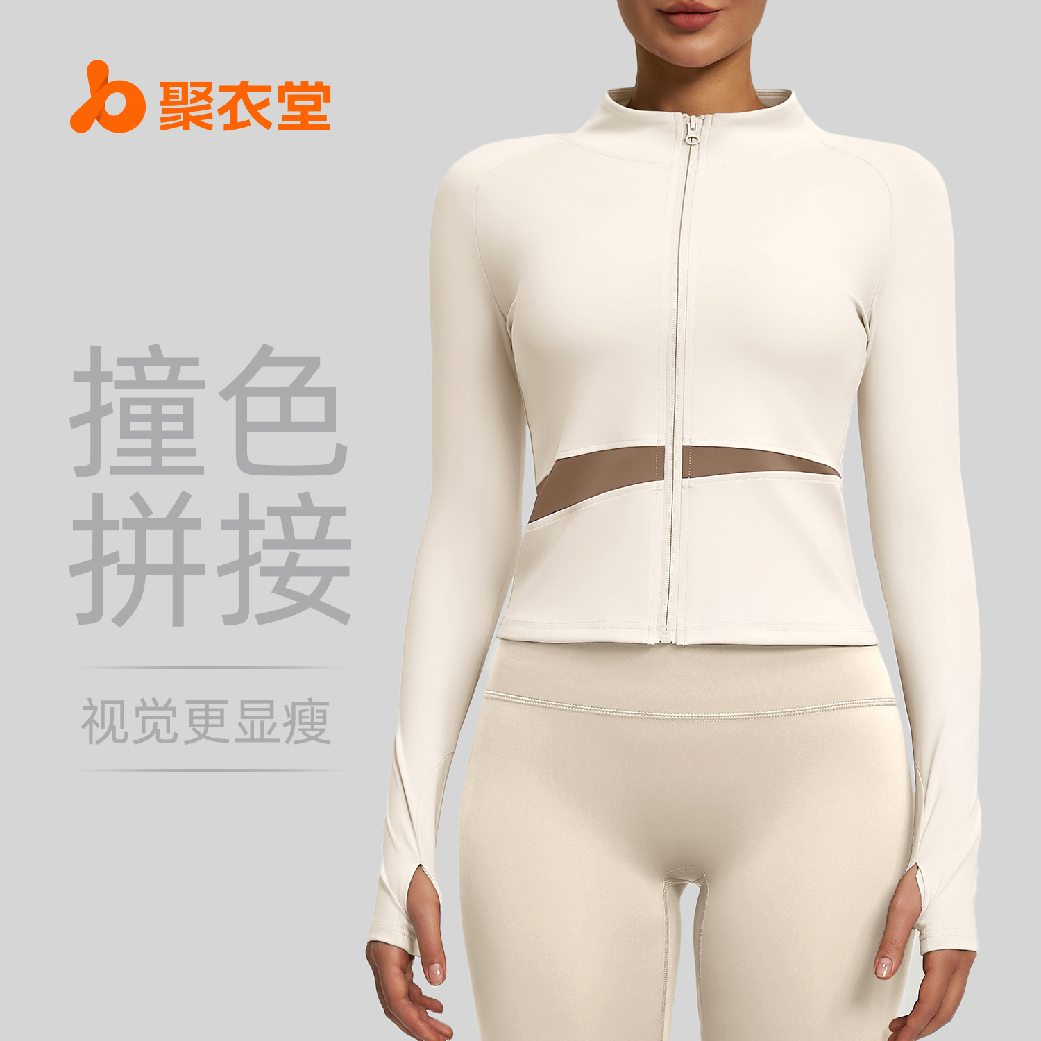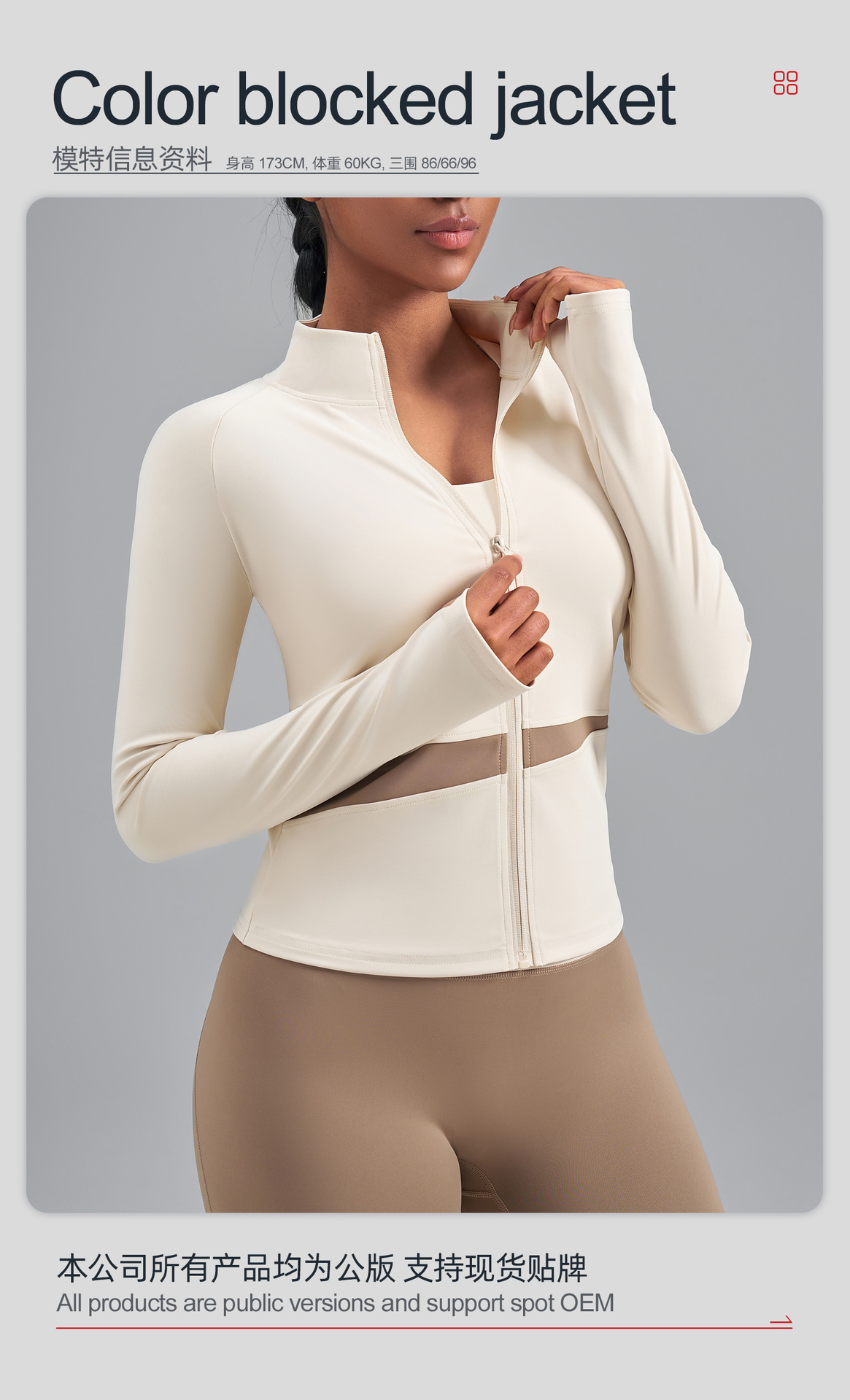 Спортивная кофта для йоги в европейско-американском стиле, персикового цвета, с цветовыми блоками, эффектом «второй кожи», облегающий, дышащий, укороченный топ с высоким воротом для фитнеса