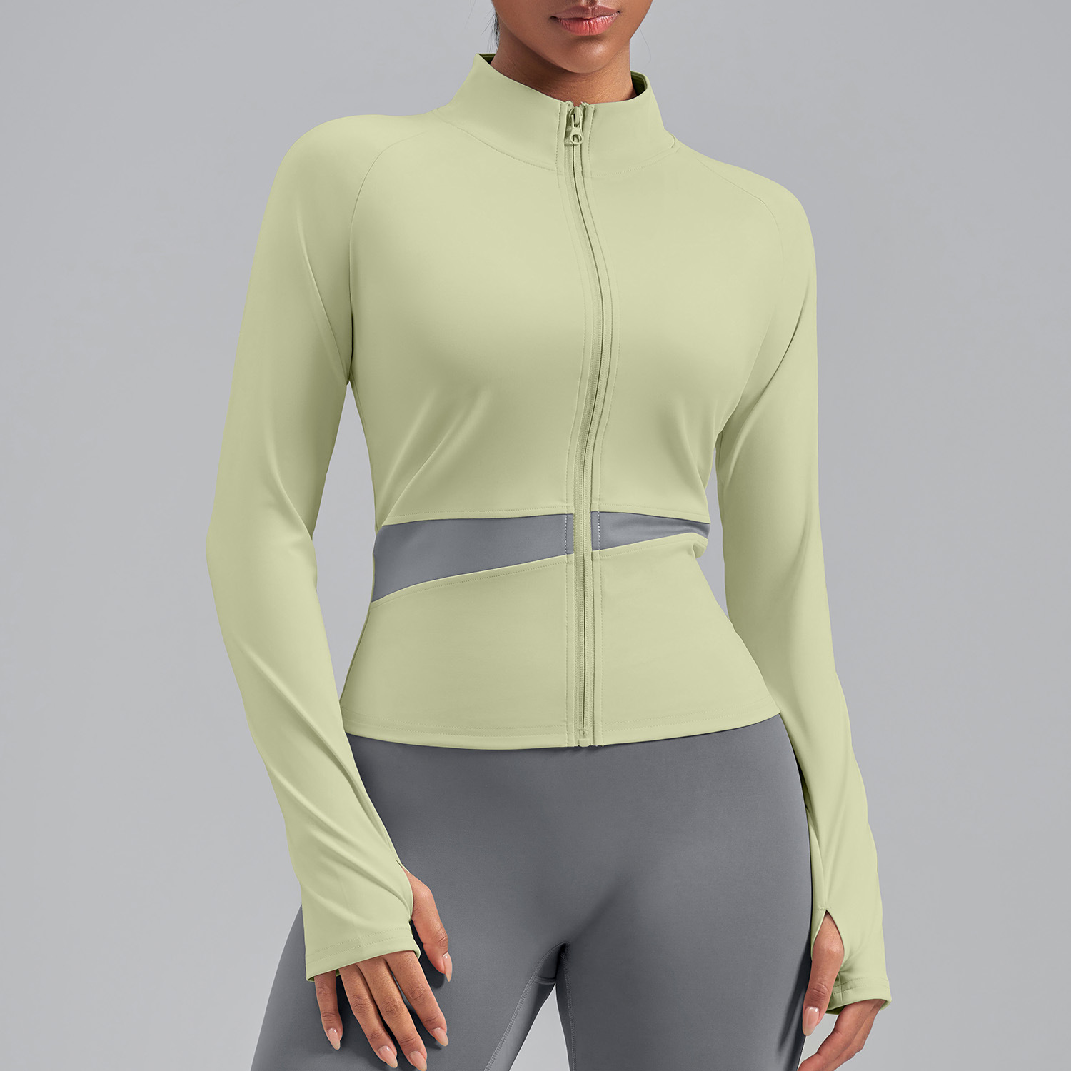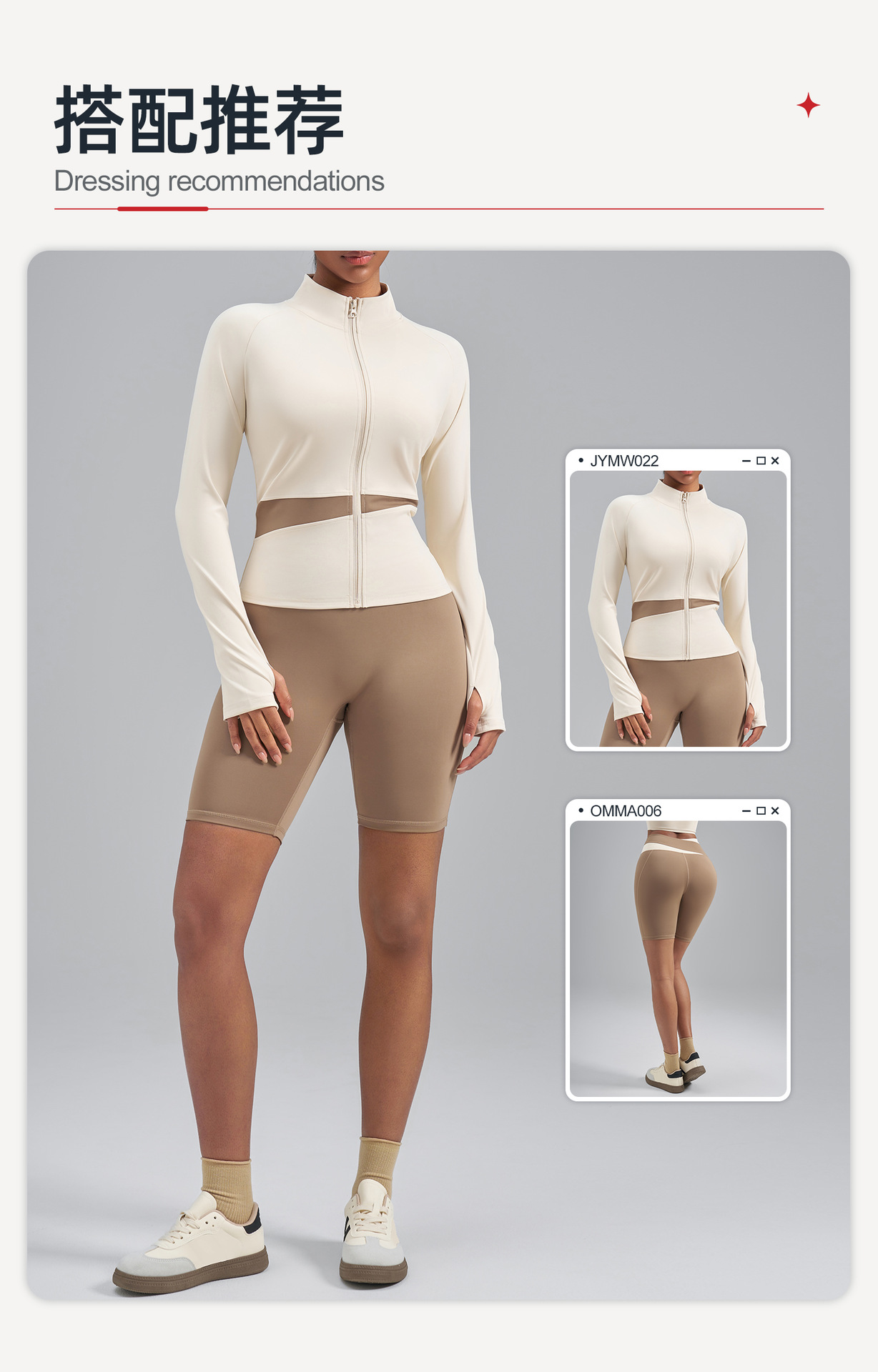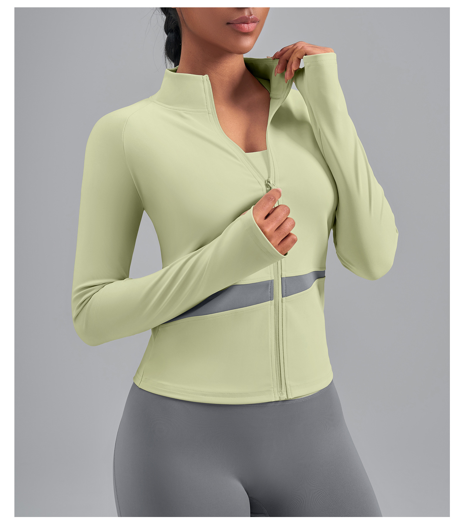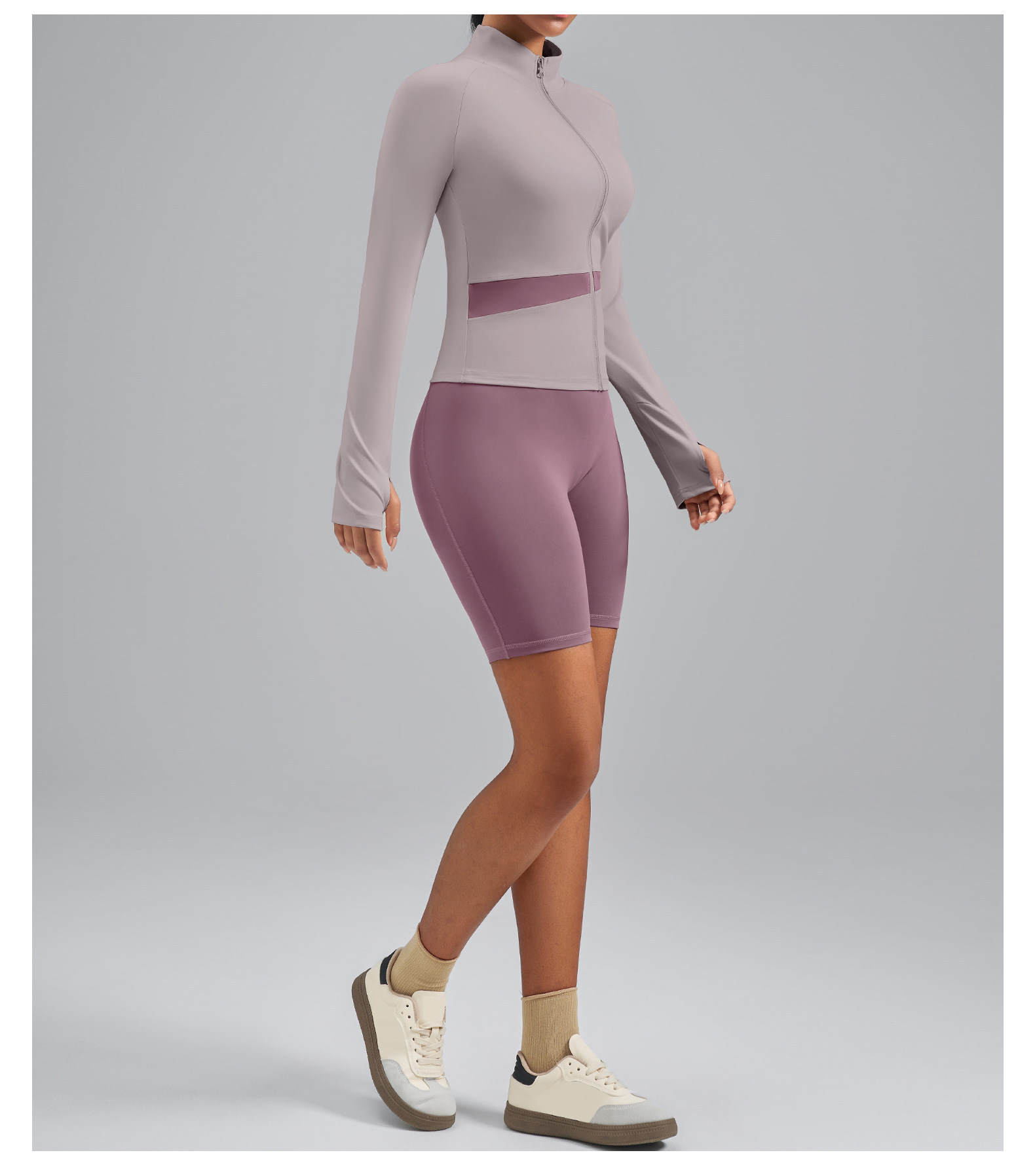 Спортивная кофта для йоги в европейско-американском стиле, персикового цвета, с цветовыми блоками, эффектом «второй кожи», облегающий, дышащий, укороченный топ с высоким воротом для фитнеса
