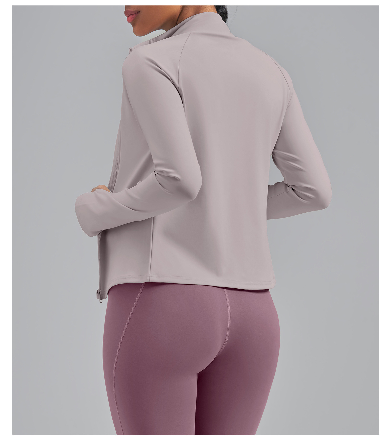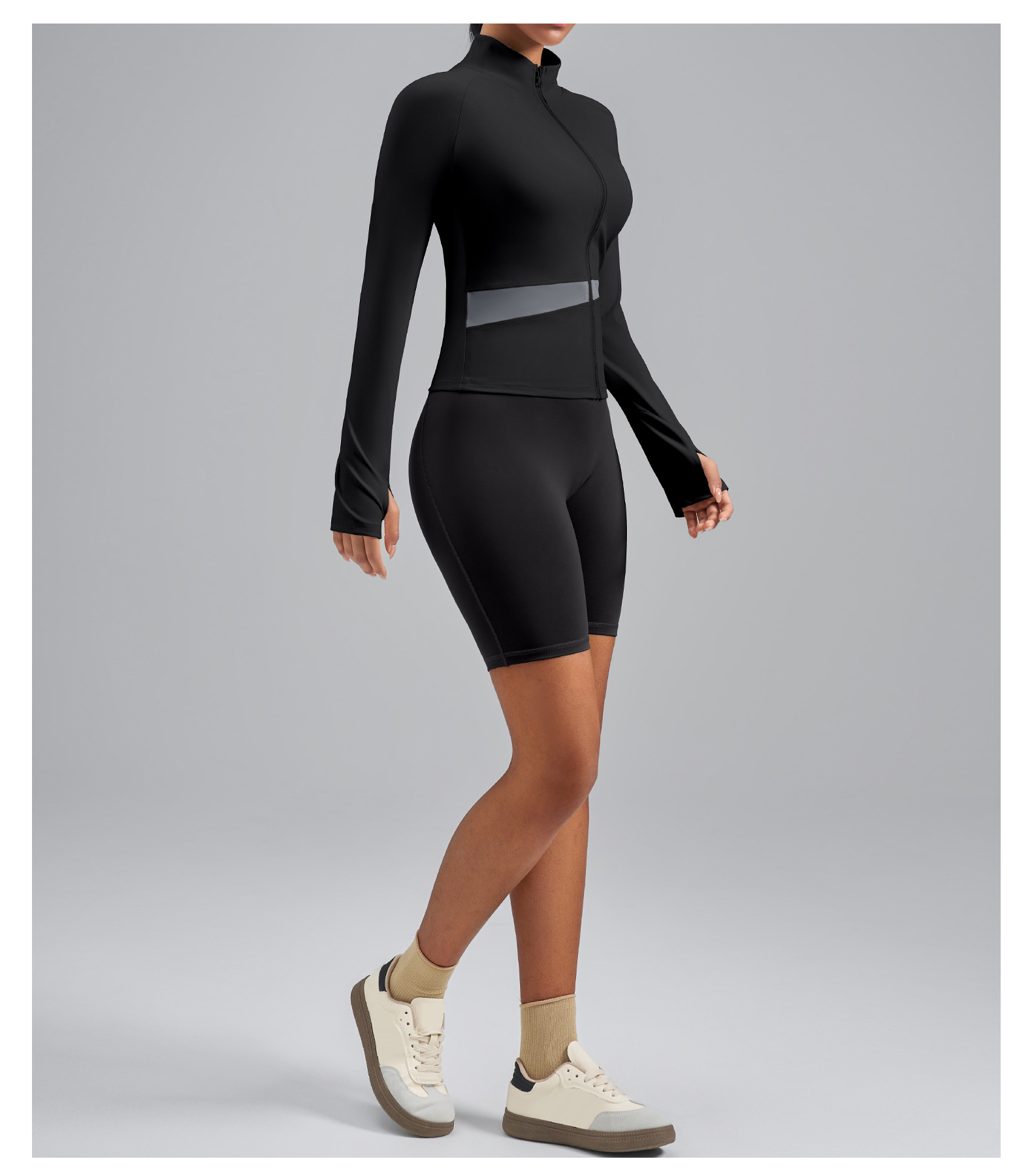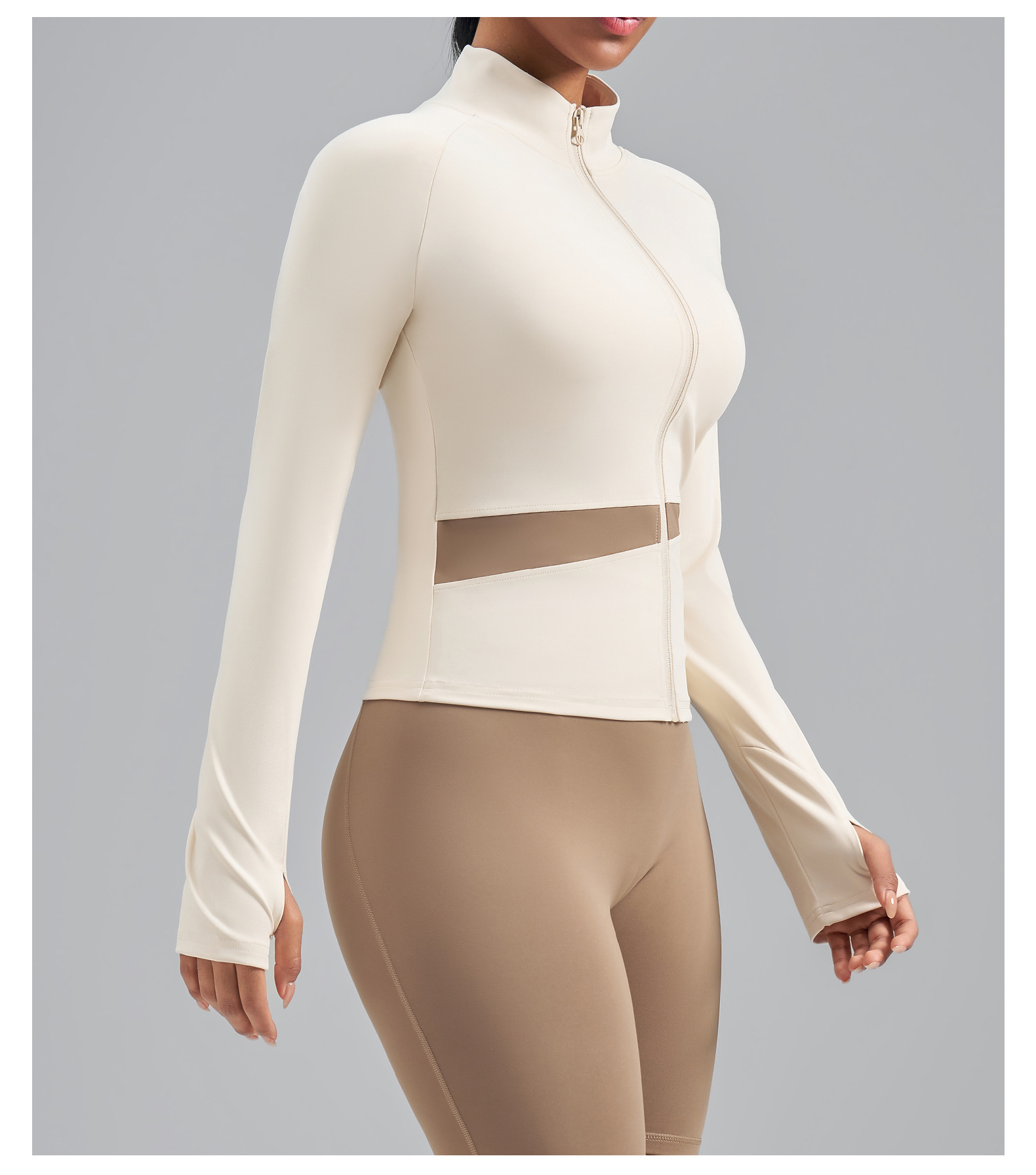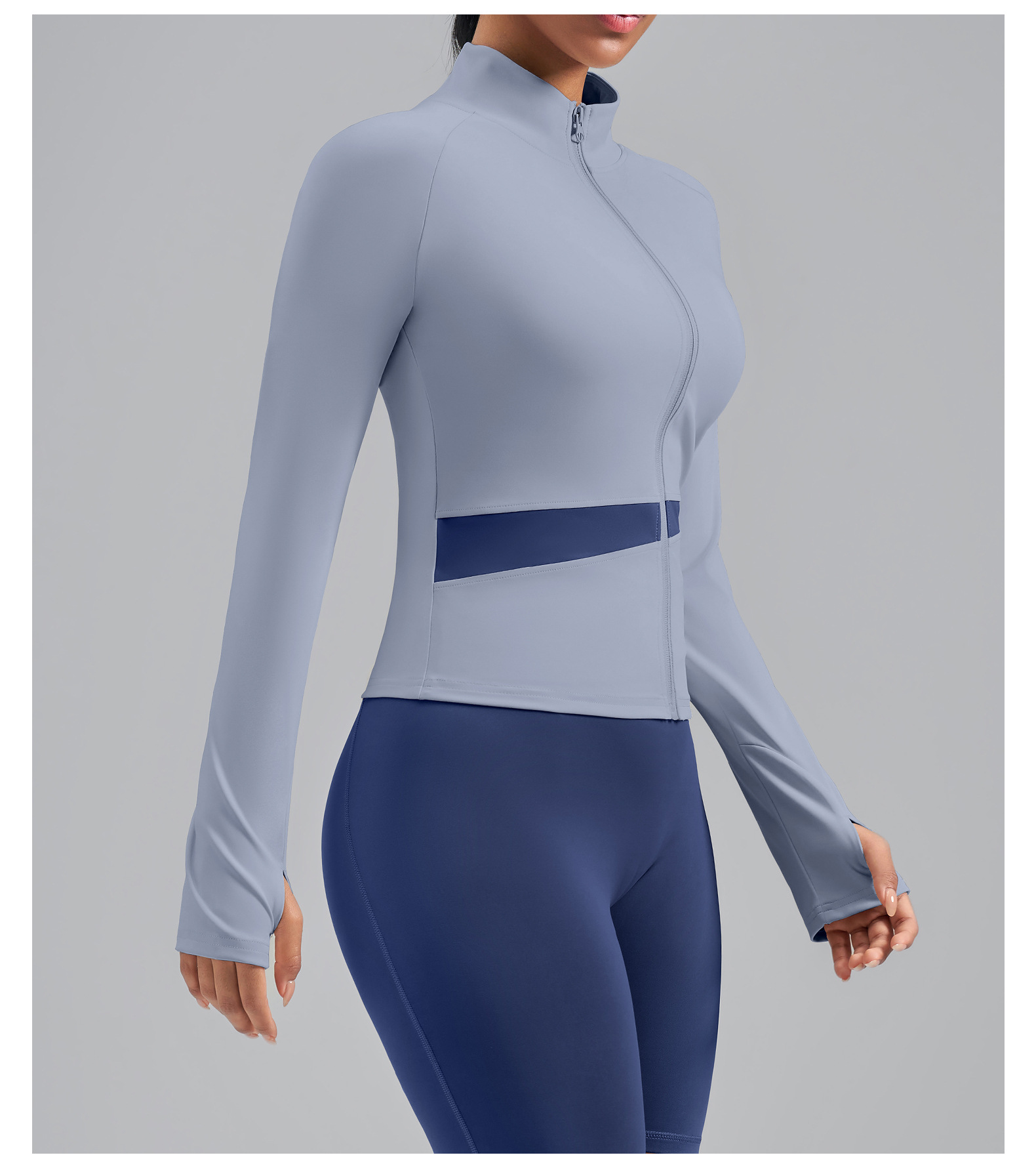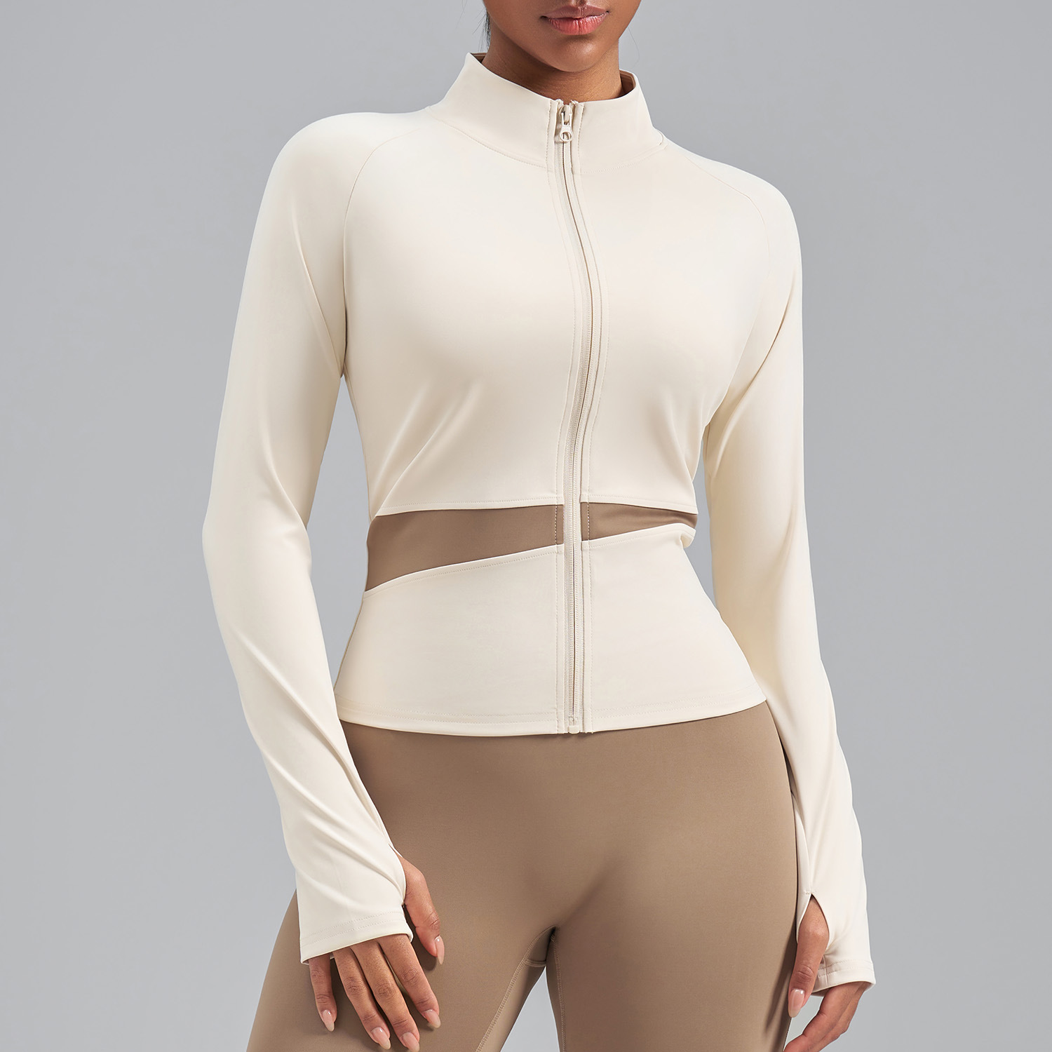 Спортивная кофта для йоги в европейско-американском стиле, персикового цвета, с цветовыми блоками, эффектом «второй кожи», облегающий, дышащий, укороченный топ с высоким воротом для фитнеса