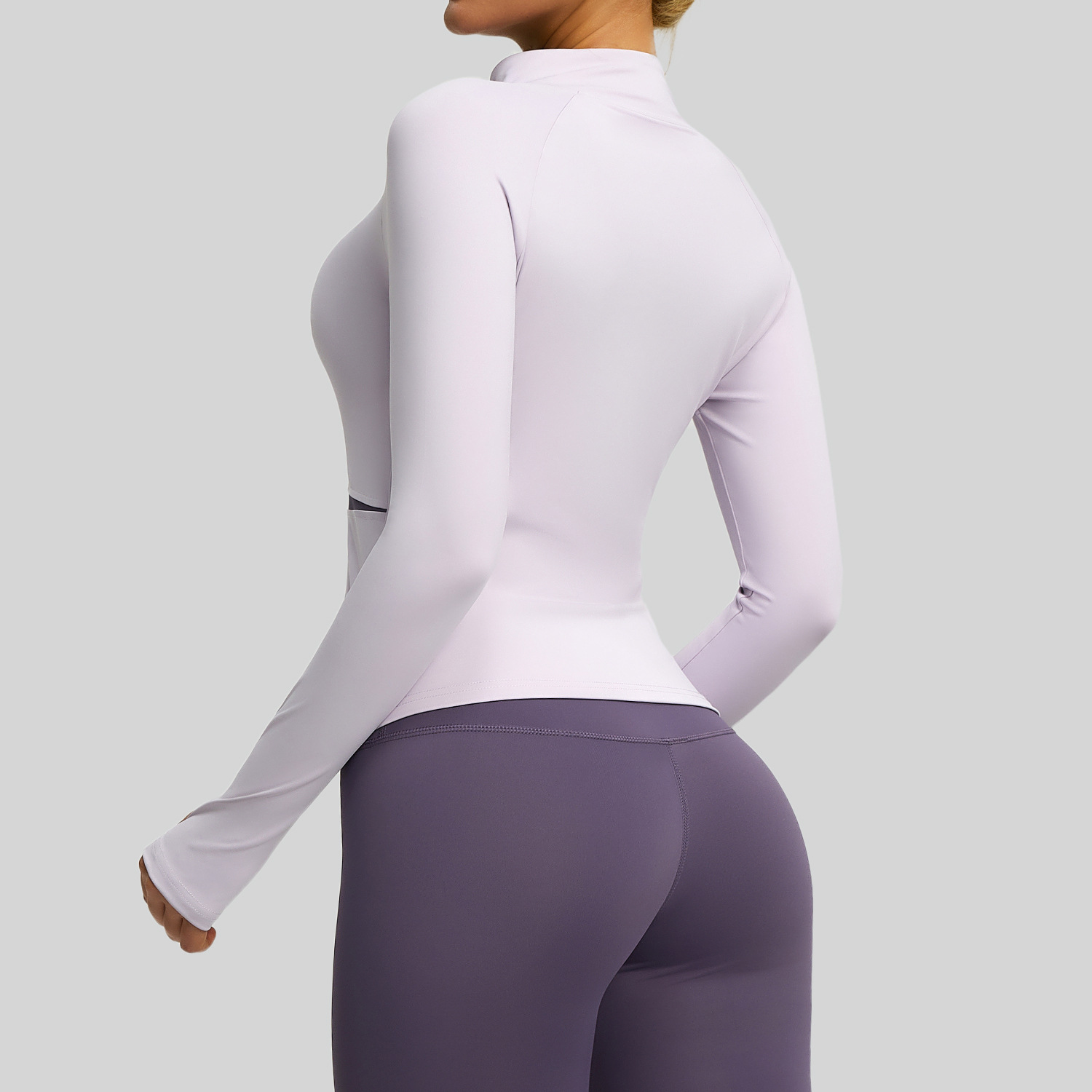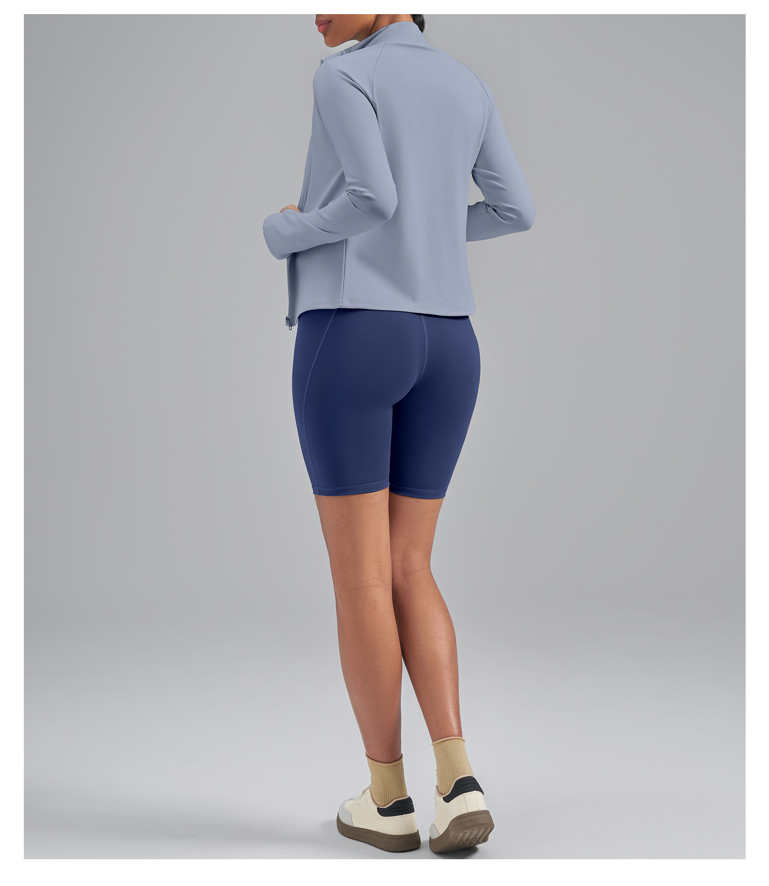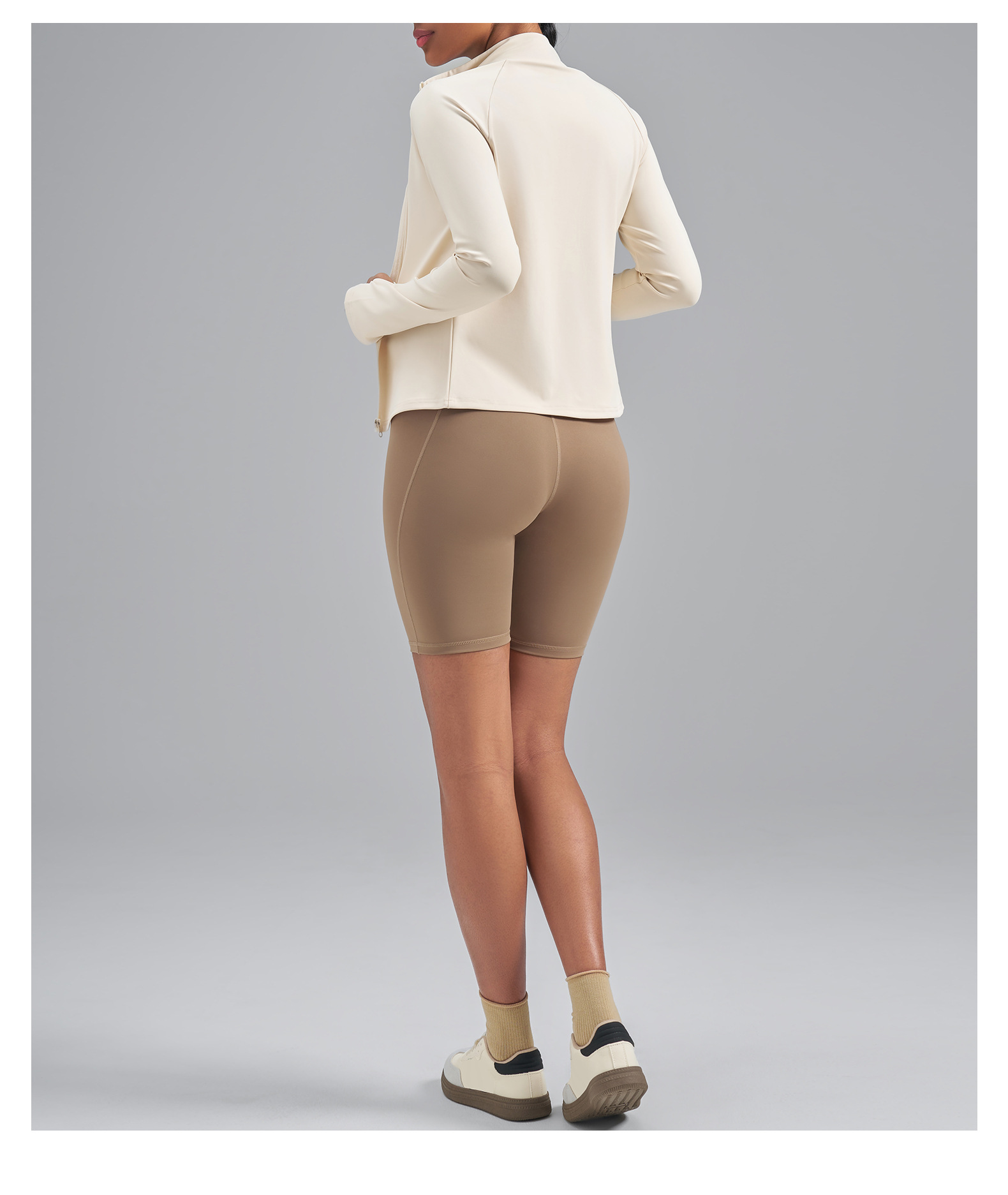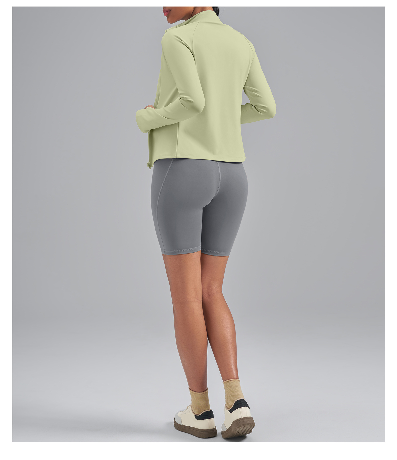 Спортивная кофта для йоги в европейско-американском стиле, персикового цвета, с цветовыми блоками, эффектом «второй кожи», облегающий, дышащий, укороченный топ с высоким воротом для фитнеса