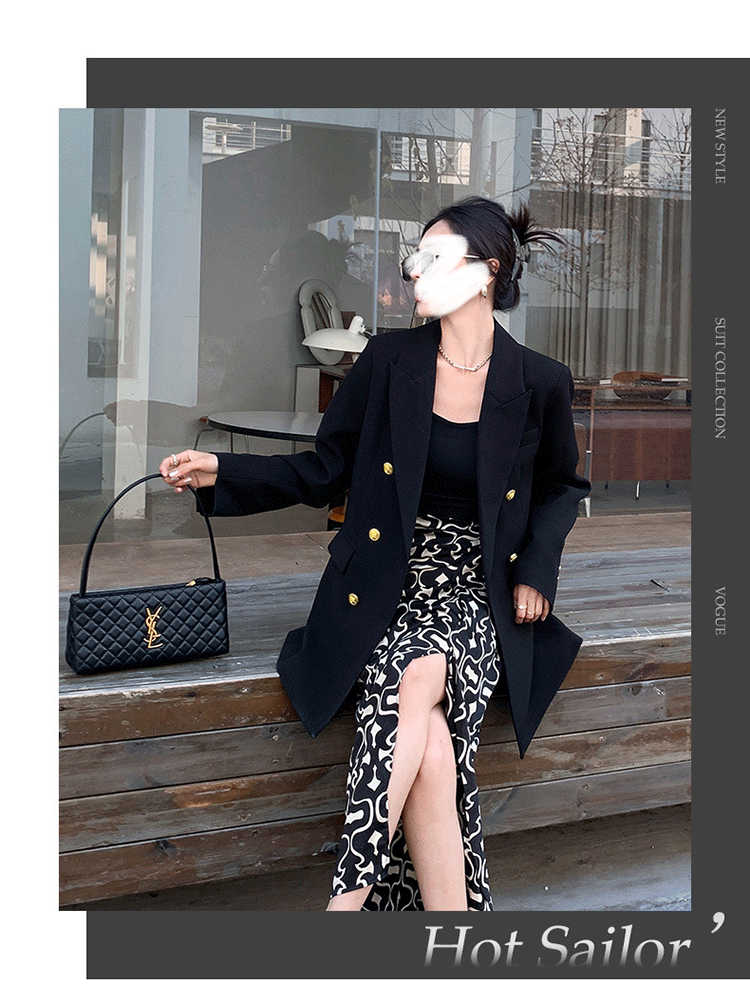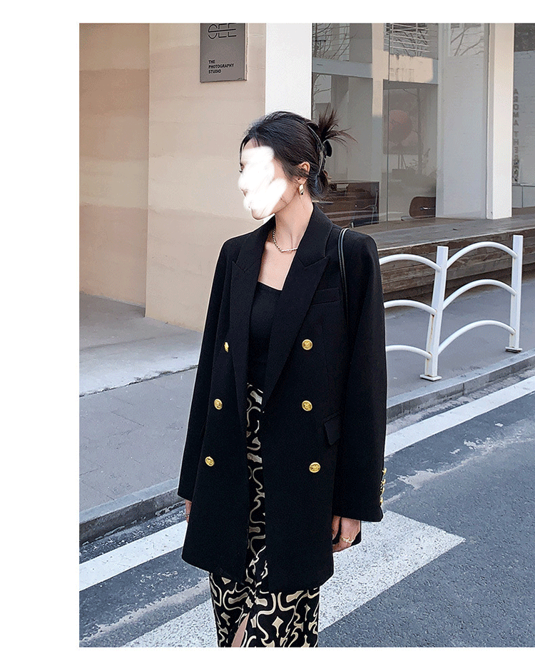 2024 новый большой размер толстый мм металлическая пряжка темперамент маленький пиджак сплошной цвет костюм весна и осень [6617]