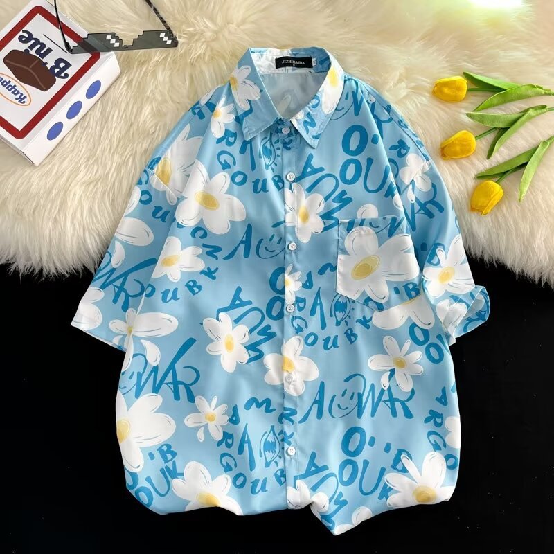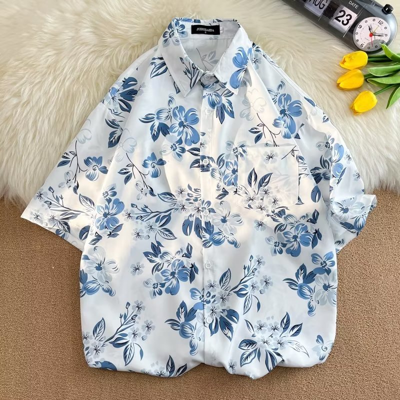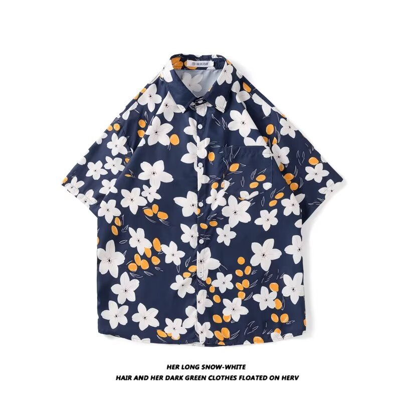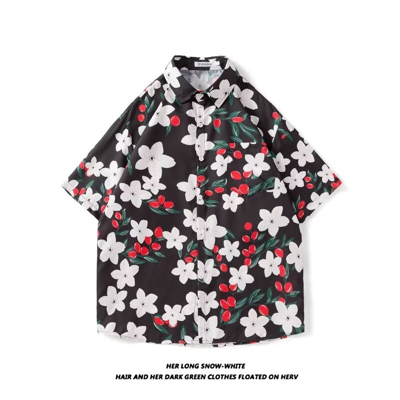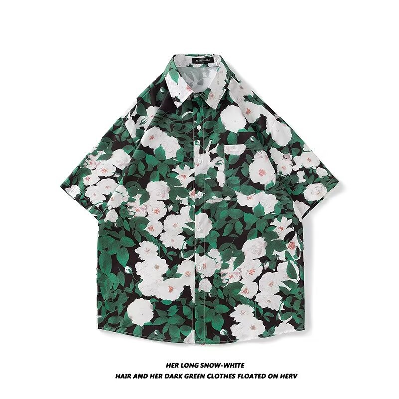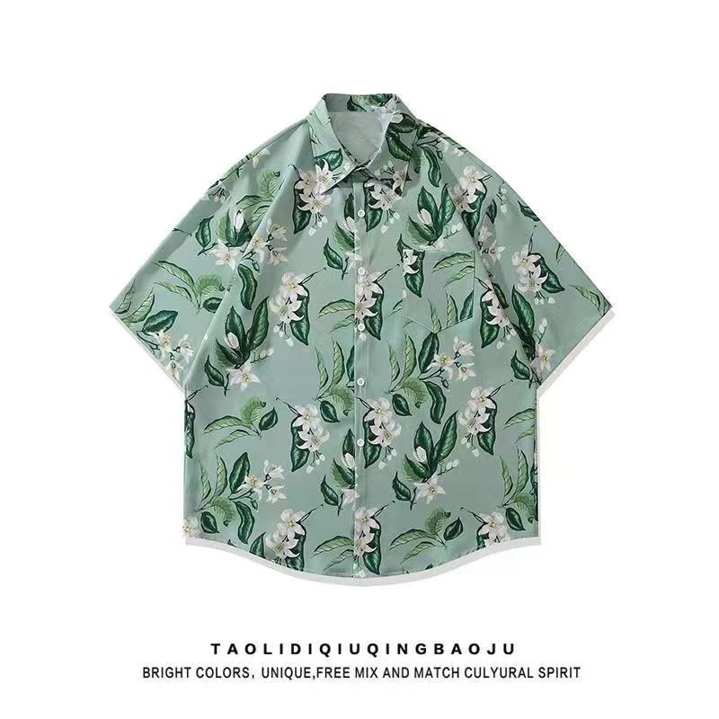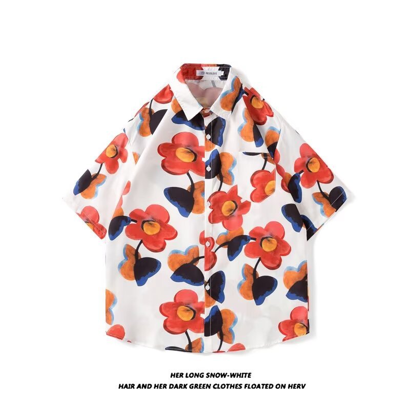 Гавайская цветочная рубашка с короткими рукавами мужская свободная дикая летняя гонконгская рубашка приливная бренд повседневный красивый топ внешняя торговля