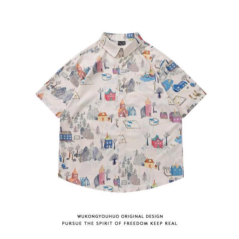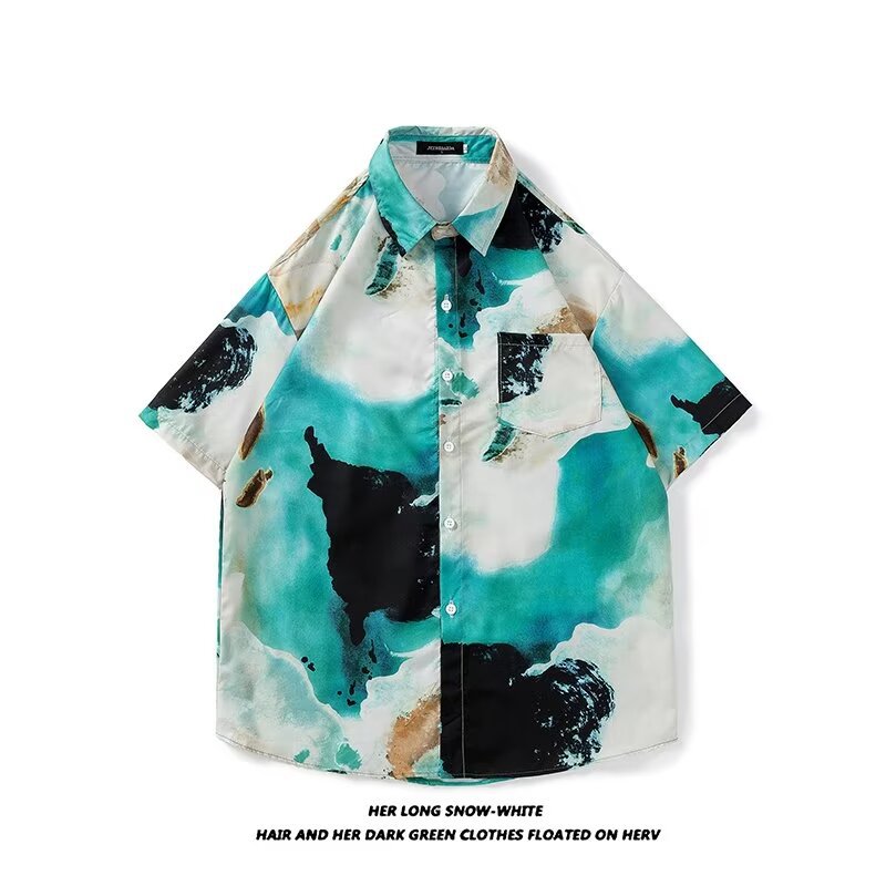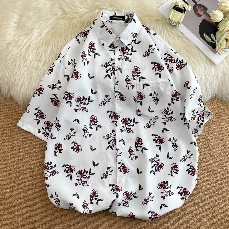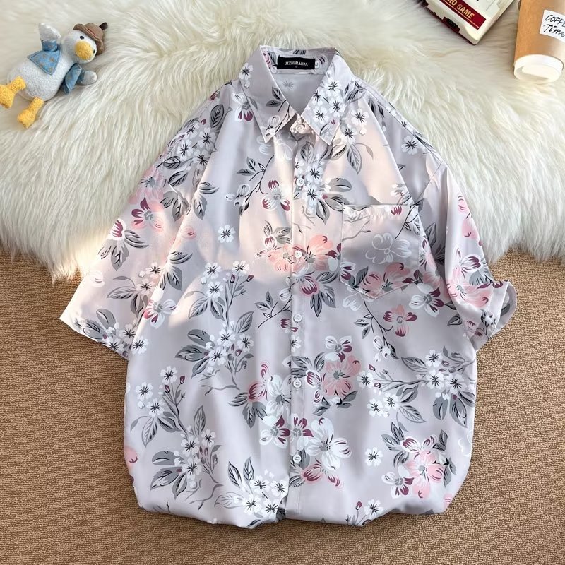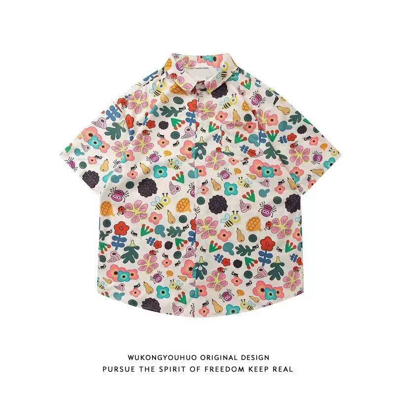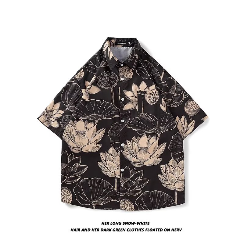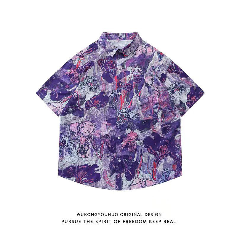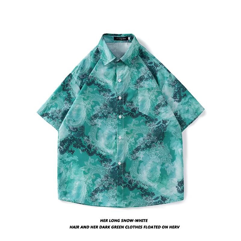 Гавайская цветочная рубашка с короткими рукавами мужская свободная дикая летняя гонконгская рубашка приливная бренд повседневный красивый топ внешняя торговля