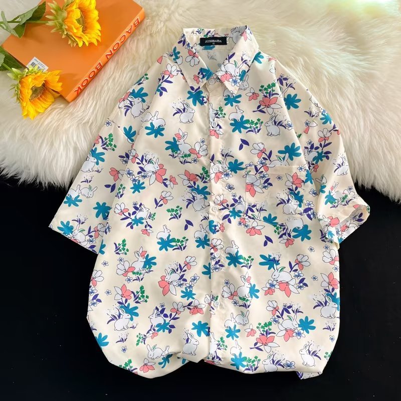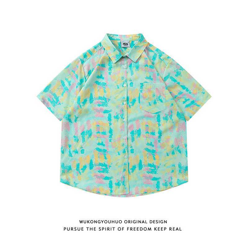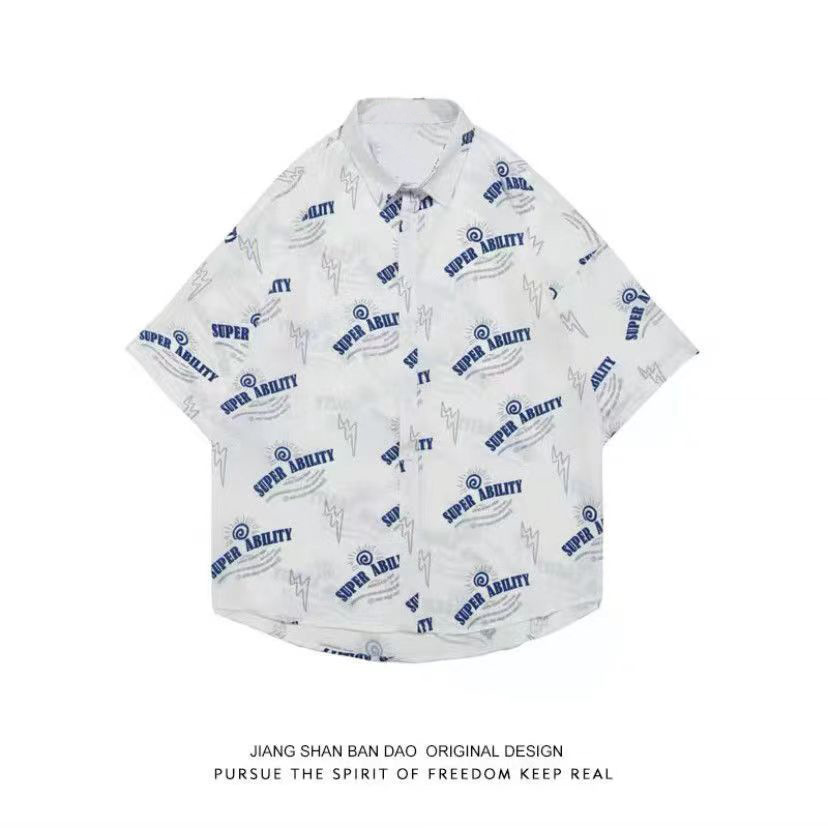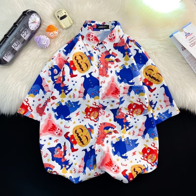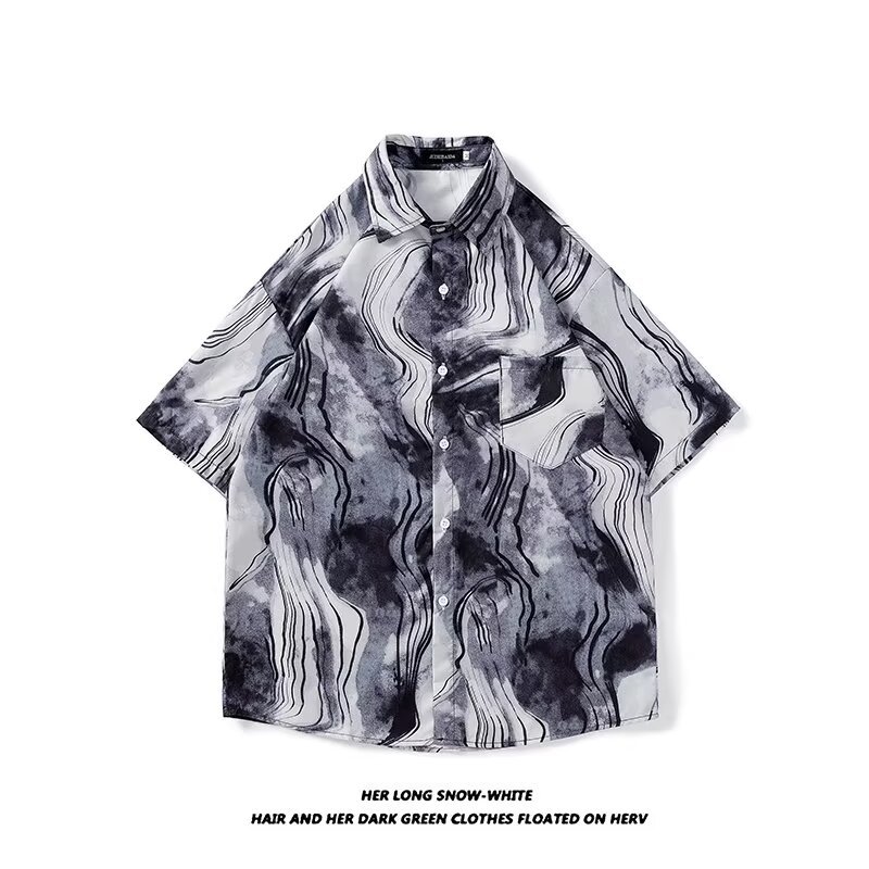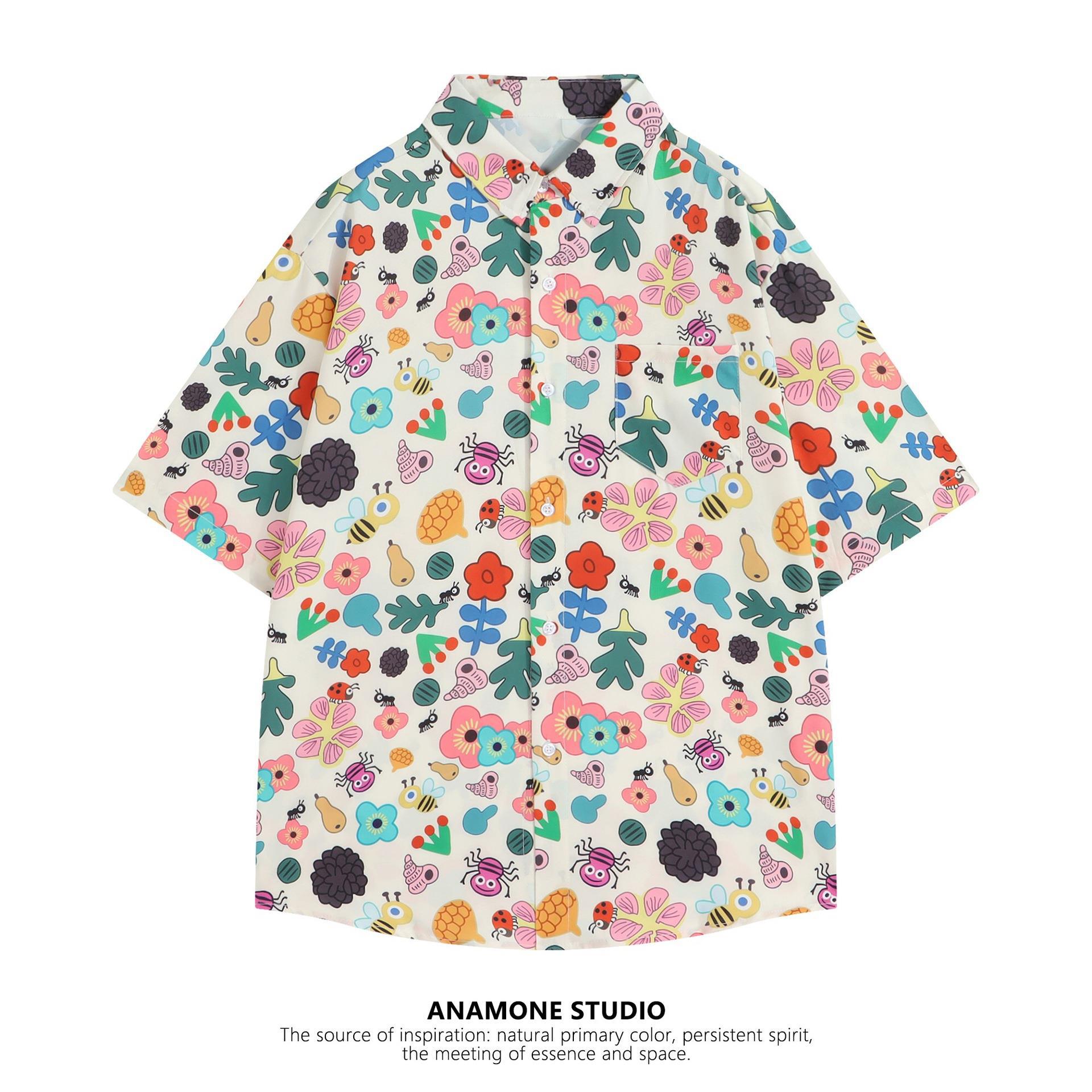Гавайская цветочная рубашка с короткими рукавами мужская свободная дикая летняя гонконгская рубашка приливная бренд повседневный красивый топ внешняя торговля