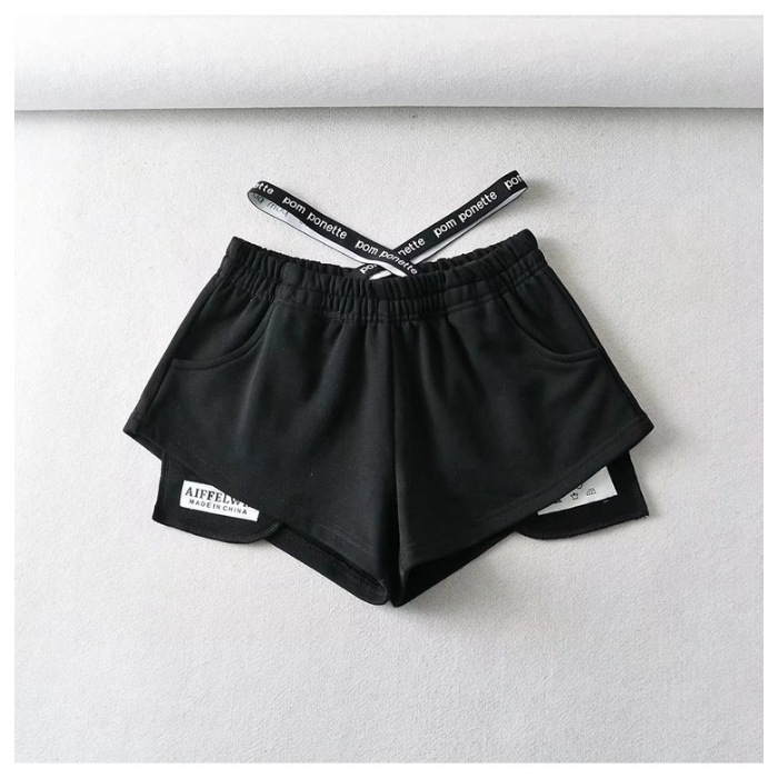 Дизайнерские нишевые шорты с высокой талией женская летняя горячая девушка ветер эласткая талия наклейка, чтобы получить свободную талию, широкие ноги повседневные шорты