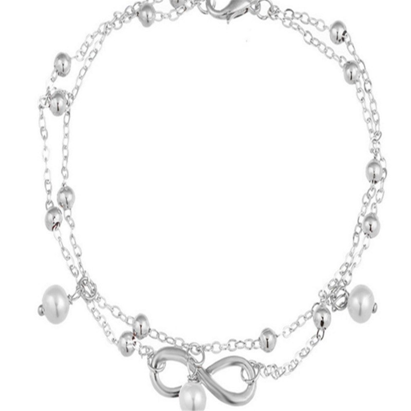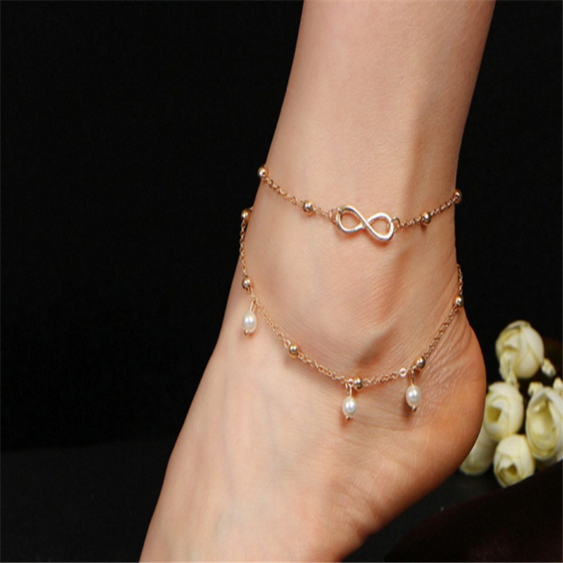Трансграничные ins ветер 8 слов имитация жемчуга подвеска с двойным слоем кисточки женские ножные цепи золотые серебряные модные украшения оптом